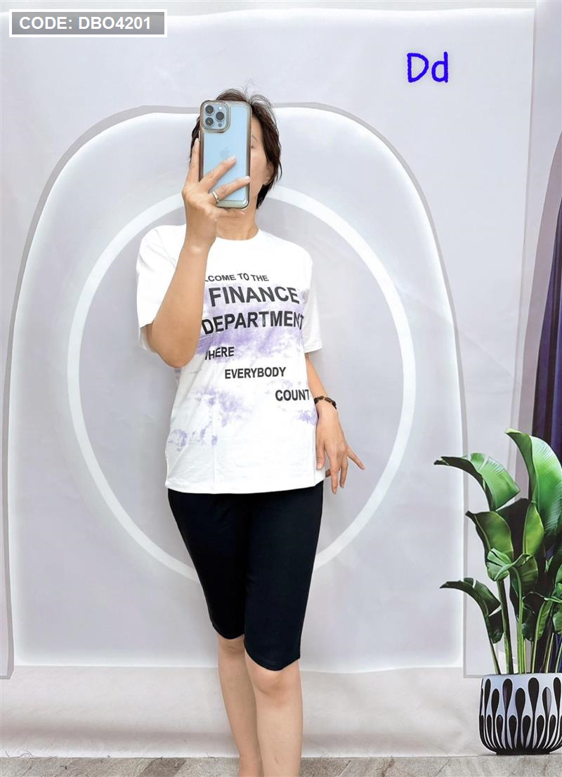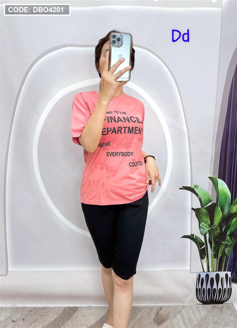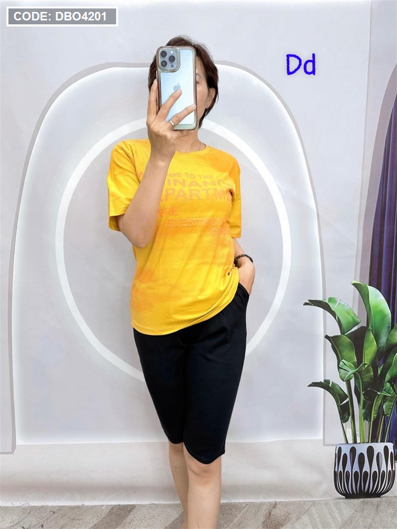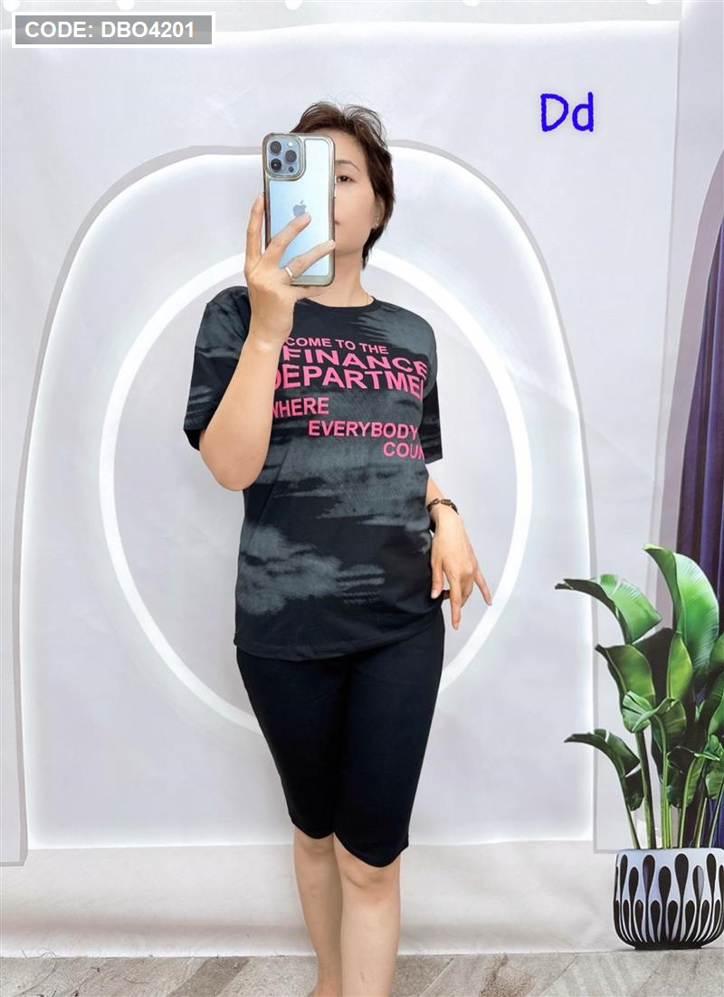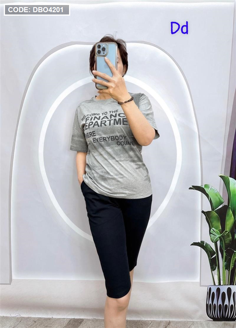 Đồ bộ quần ngố đen áo tay ngắn in nhiều chữ