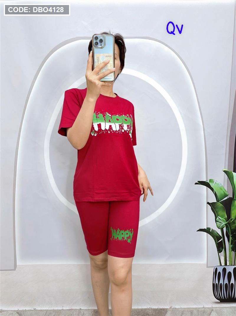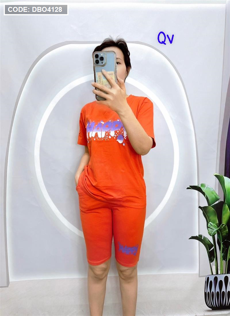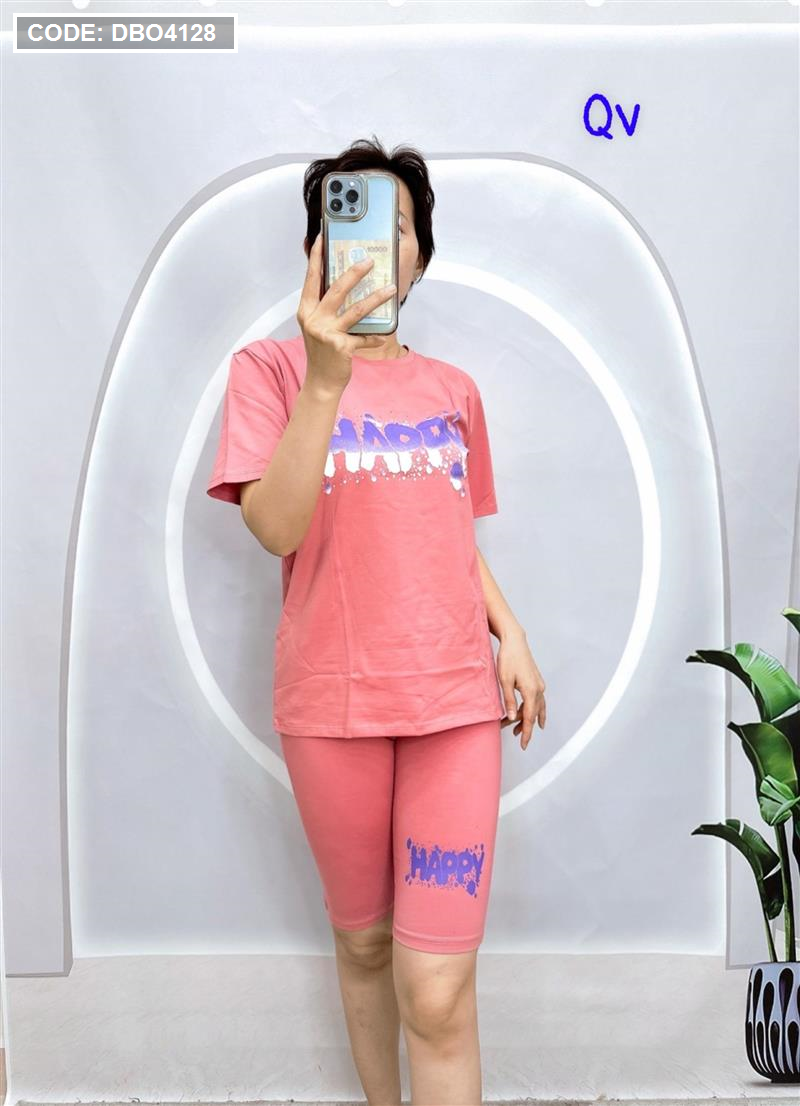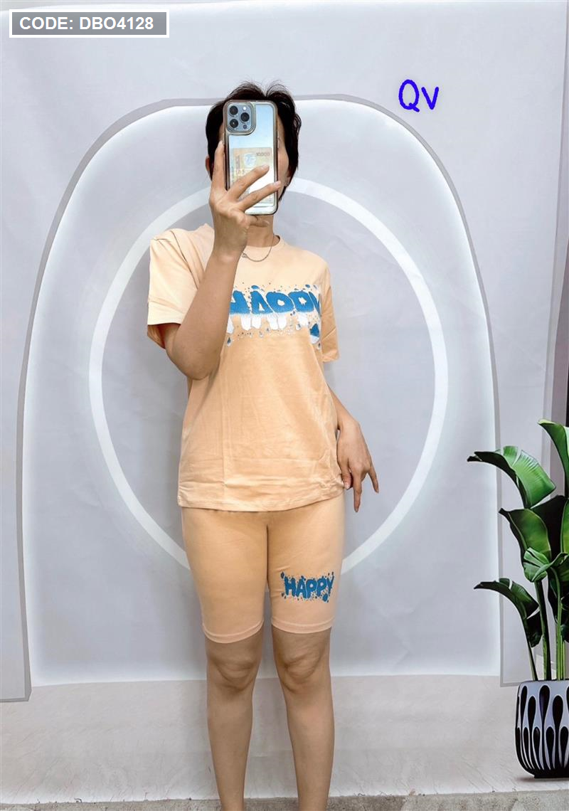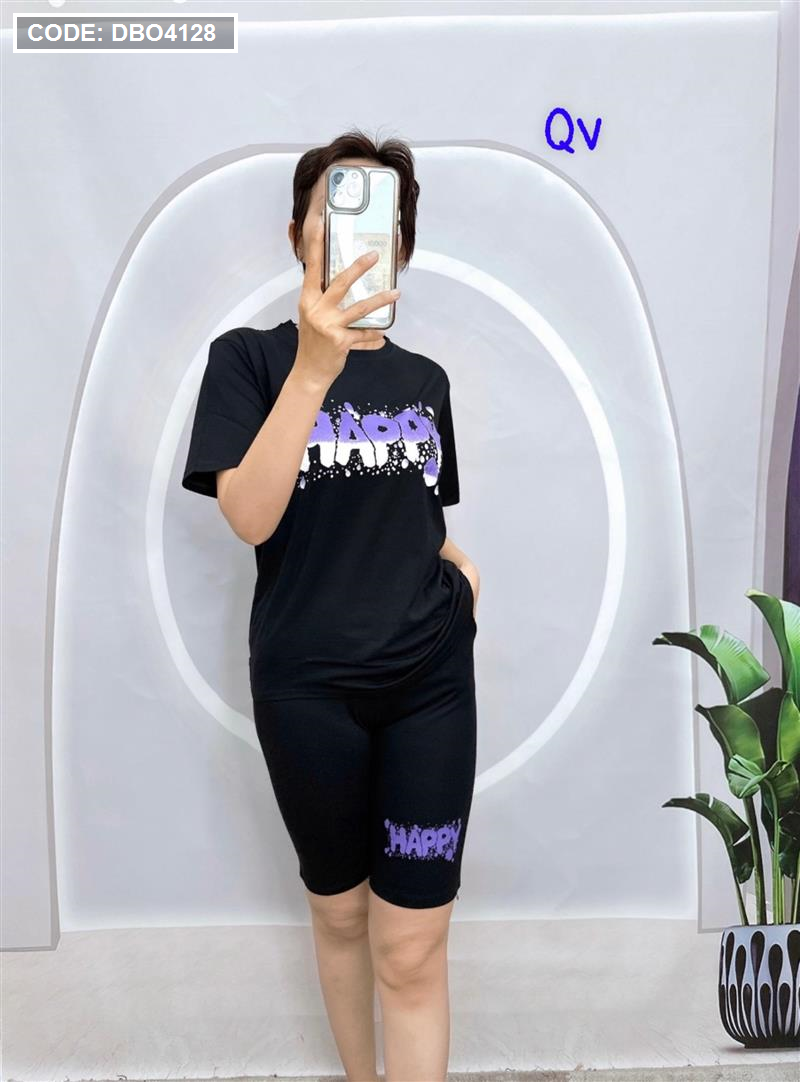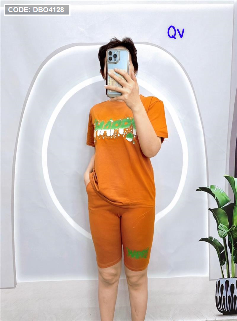 Đồ bộ quần ngố màu áo tay ngắn in chữ