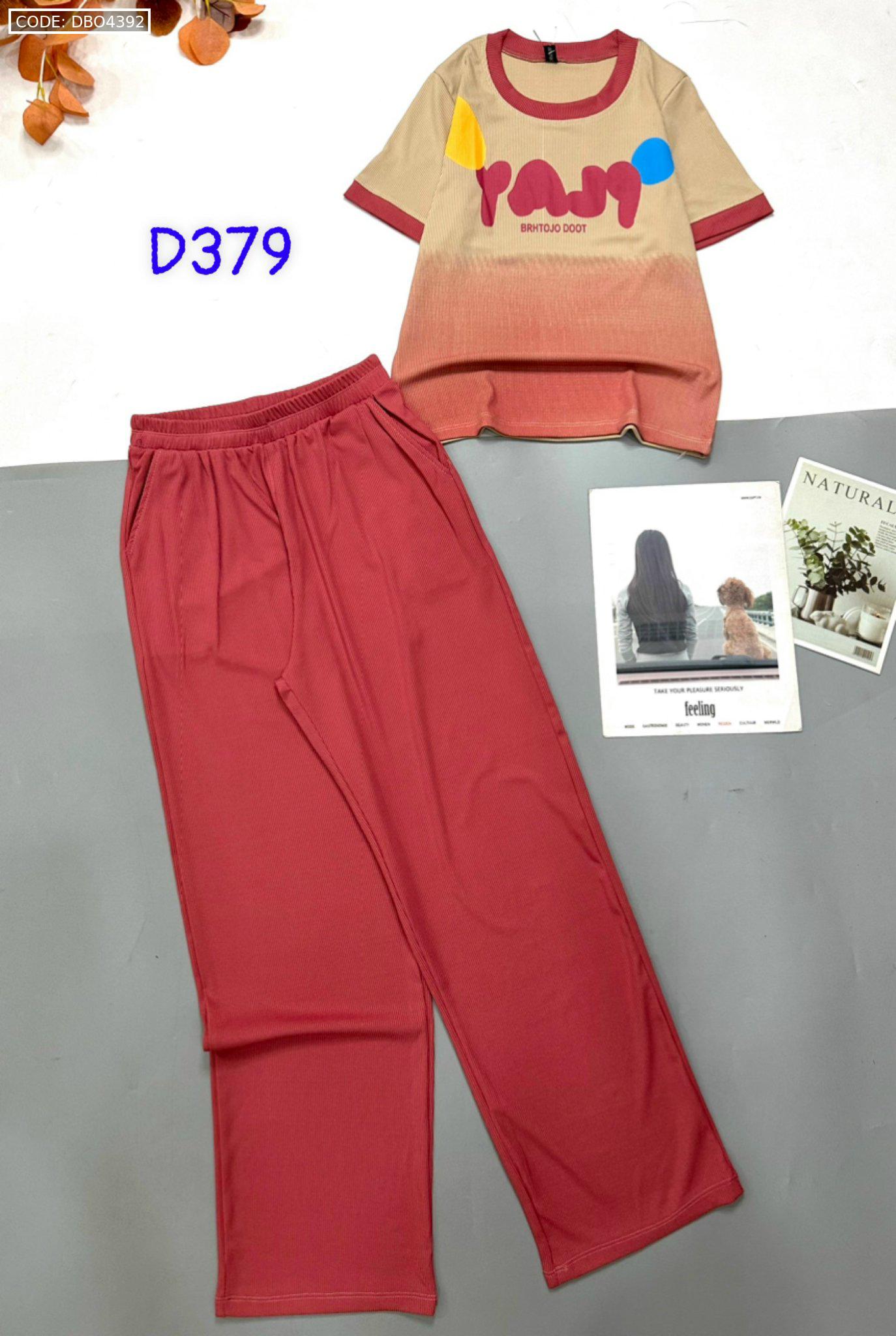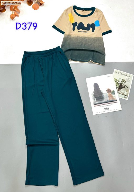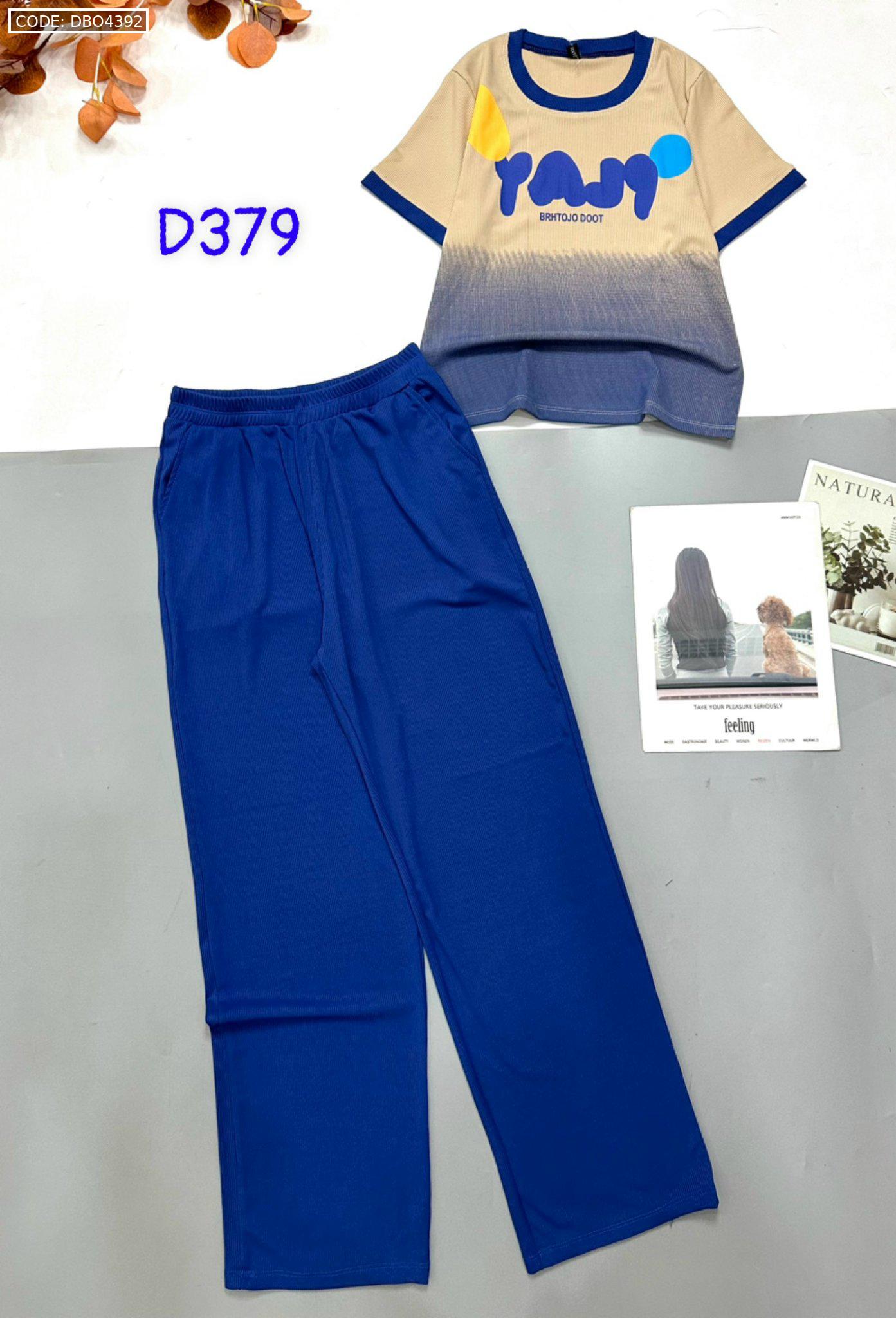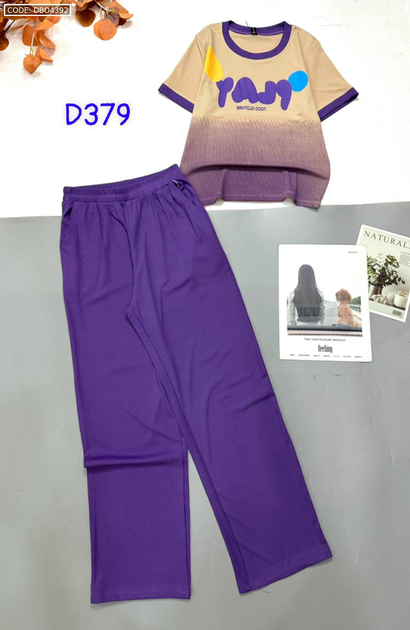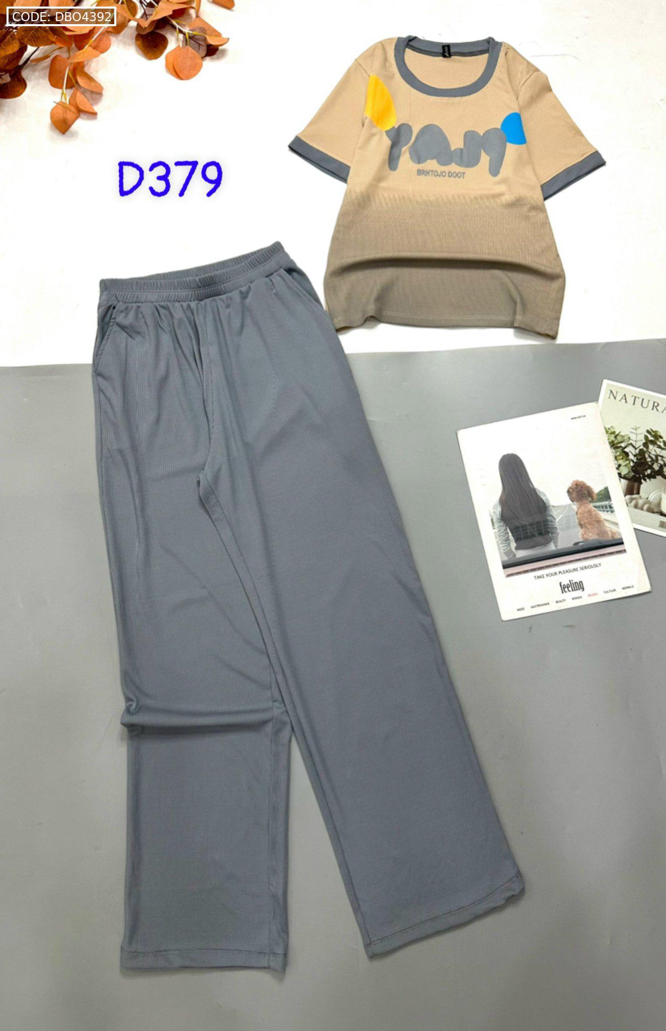 Đồ bộ tăm lạnh quần dài áo cổ tròn tay ngắn in chữ YAJ9