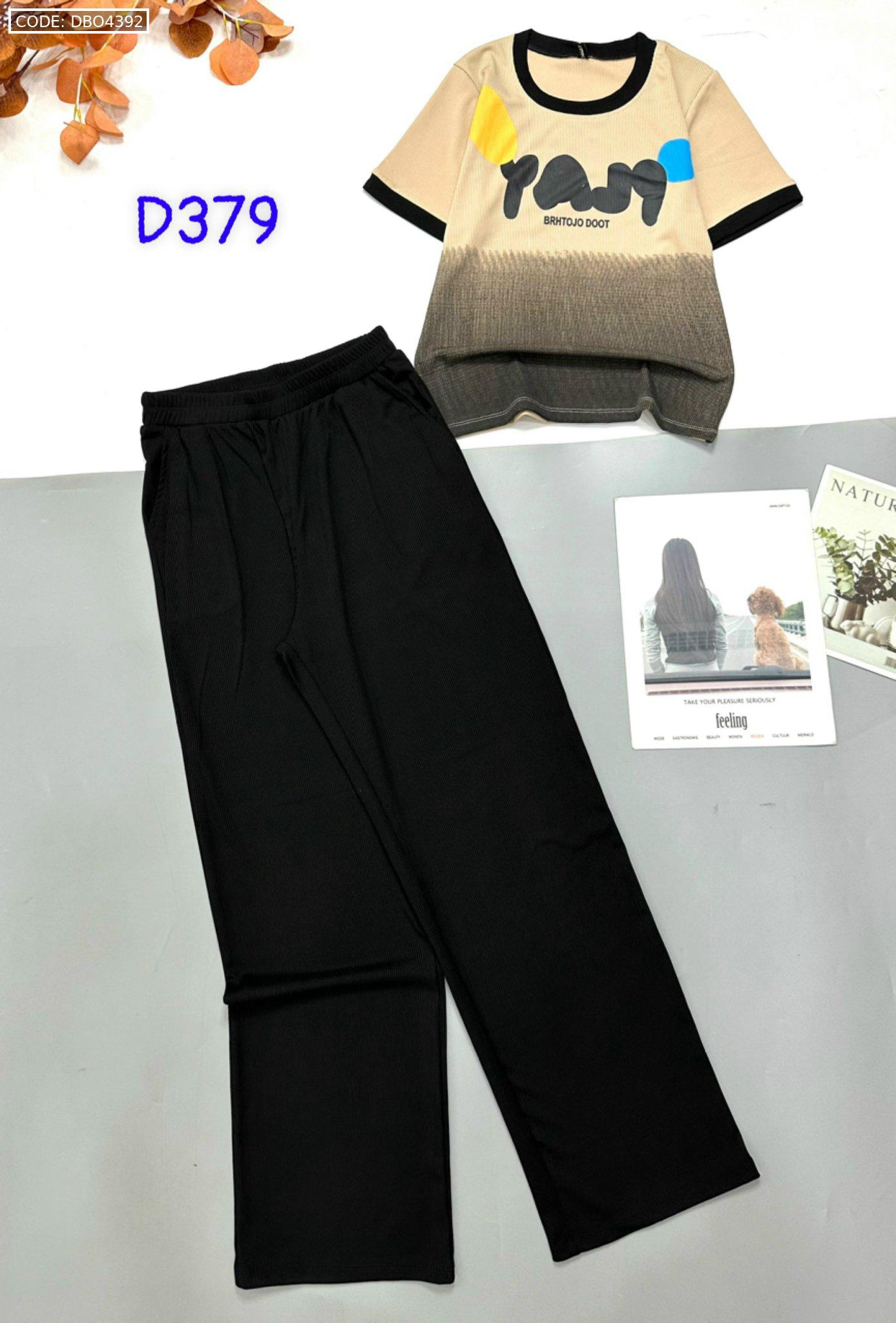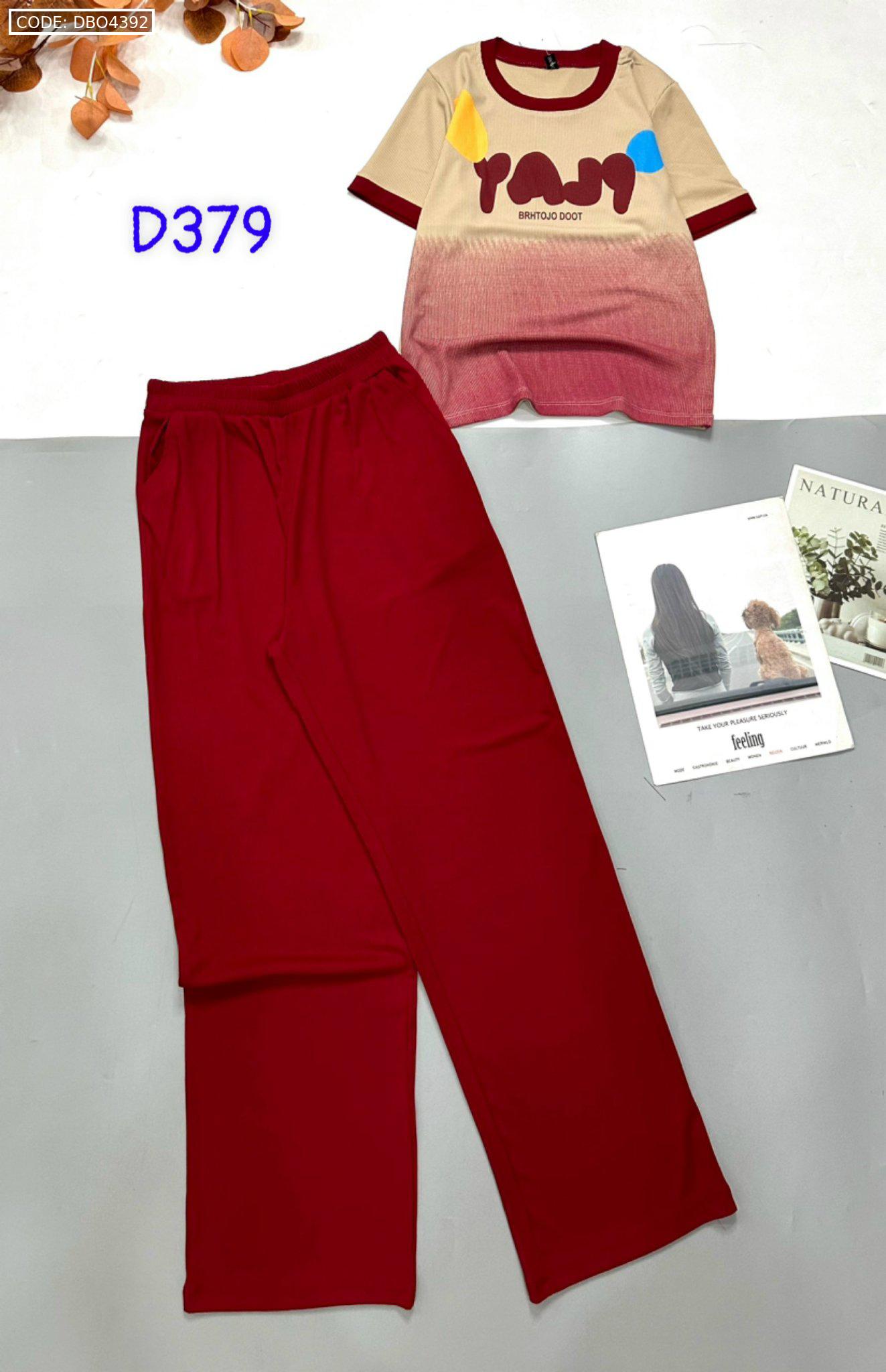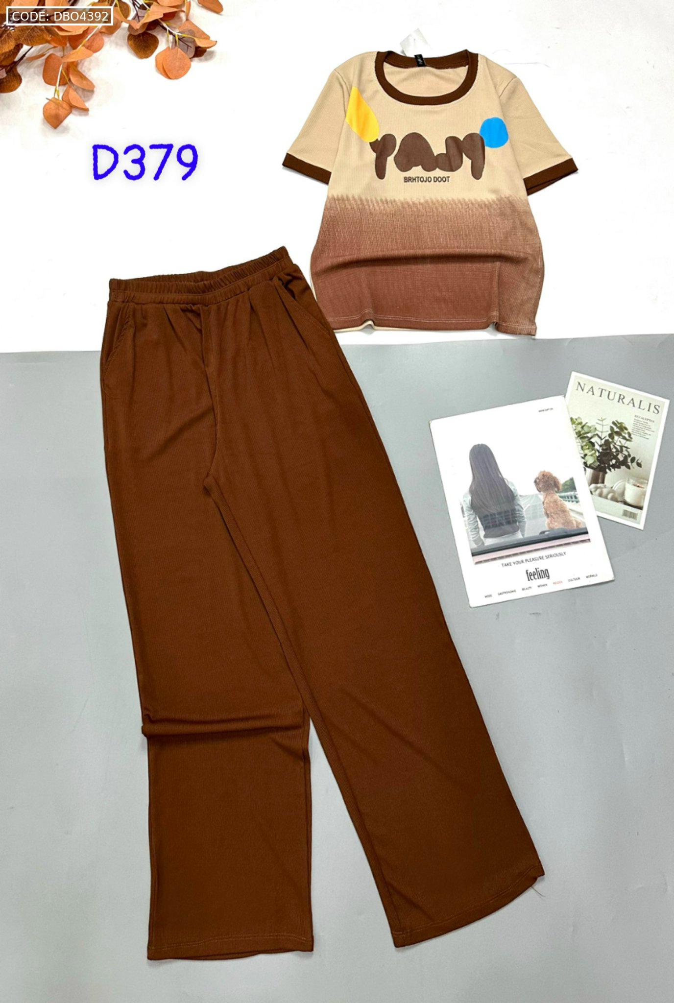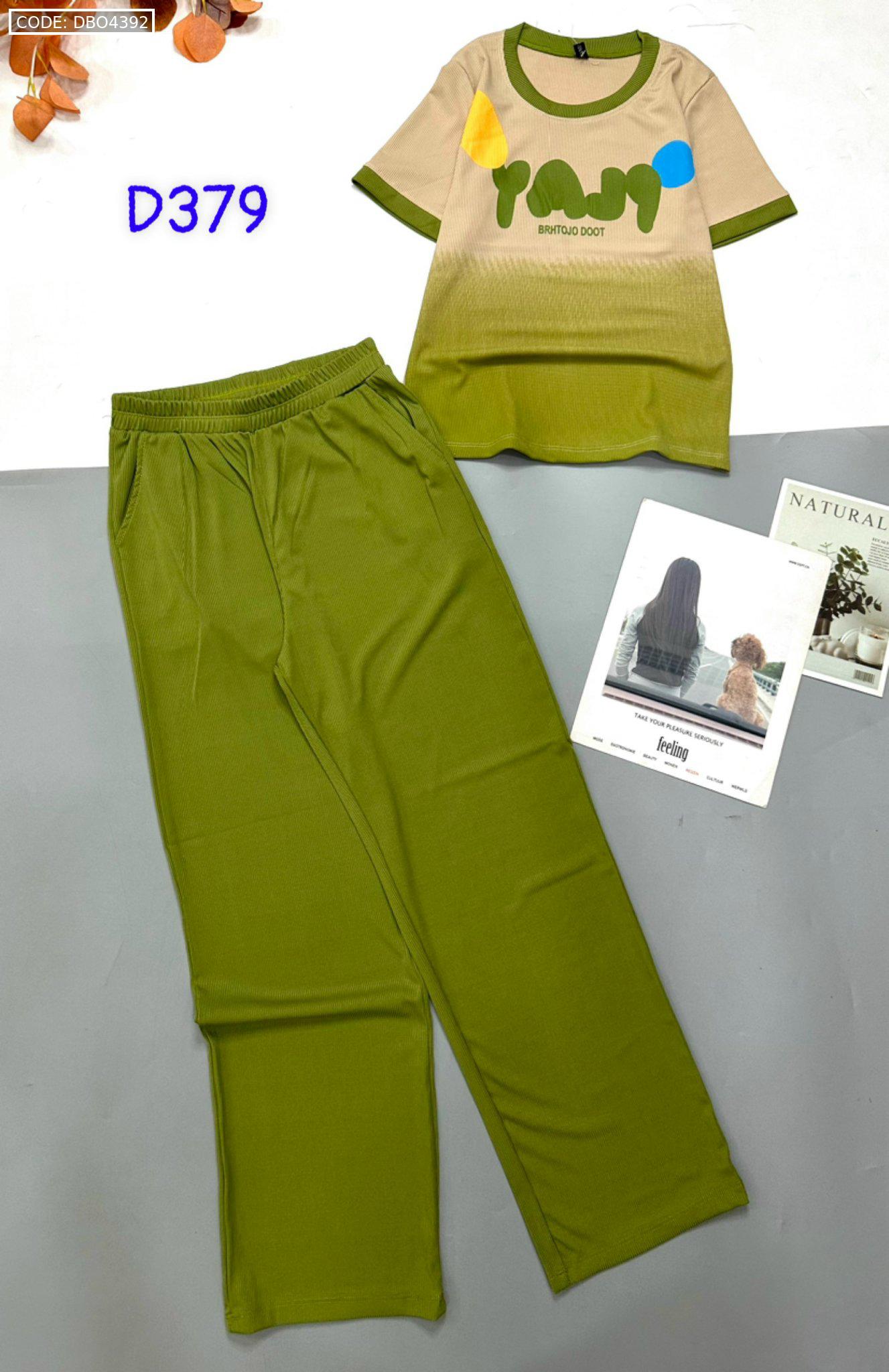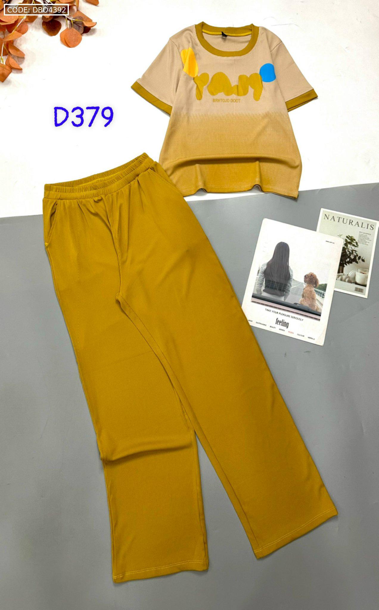 Đồ bộ tăm lạnh quần dài áo cổ tròn tay ngắn in chữ YAJ9