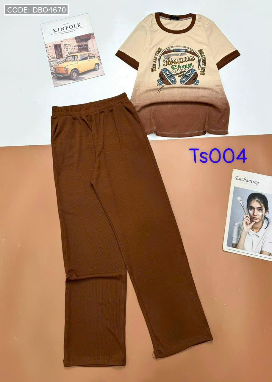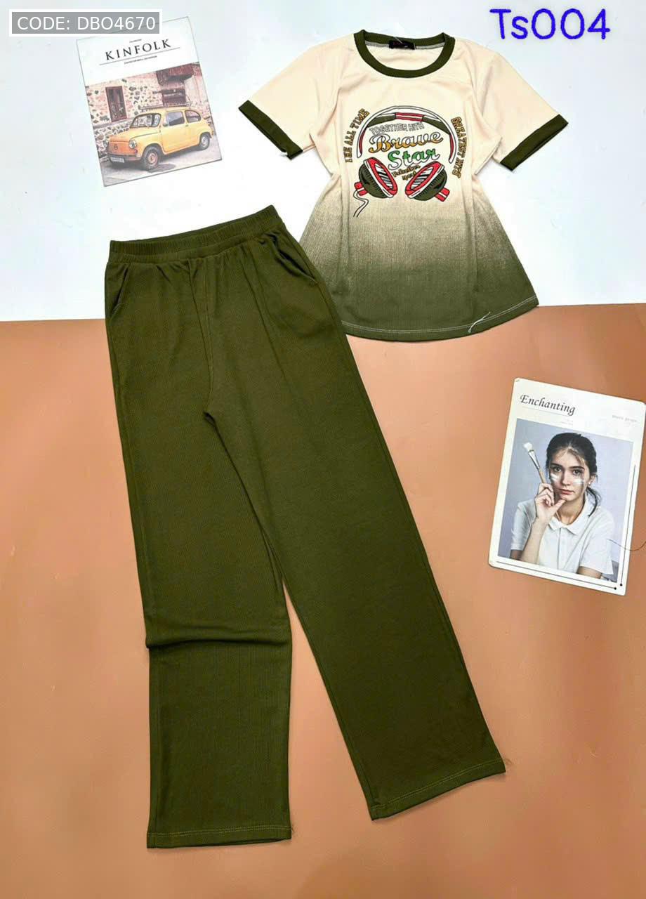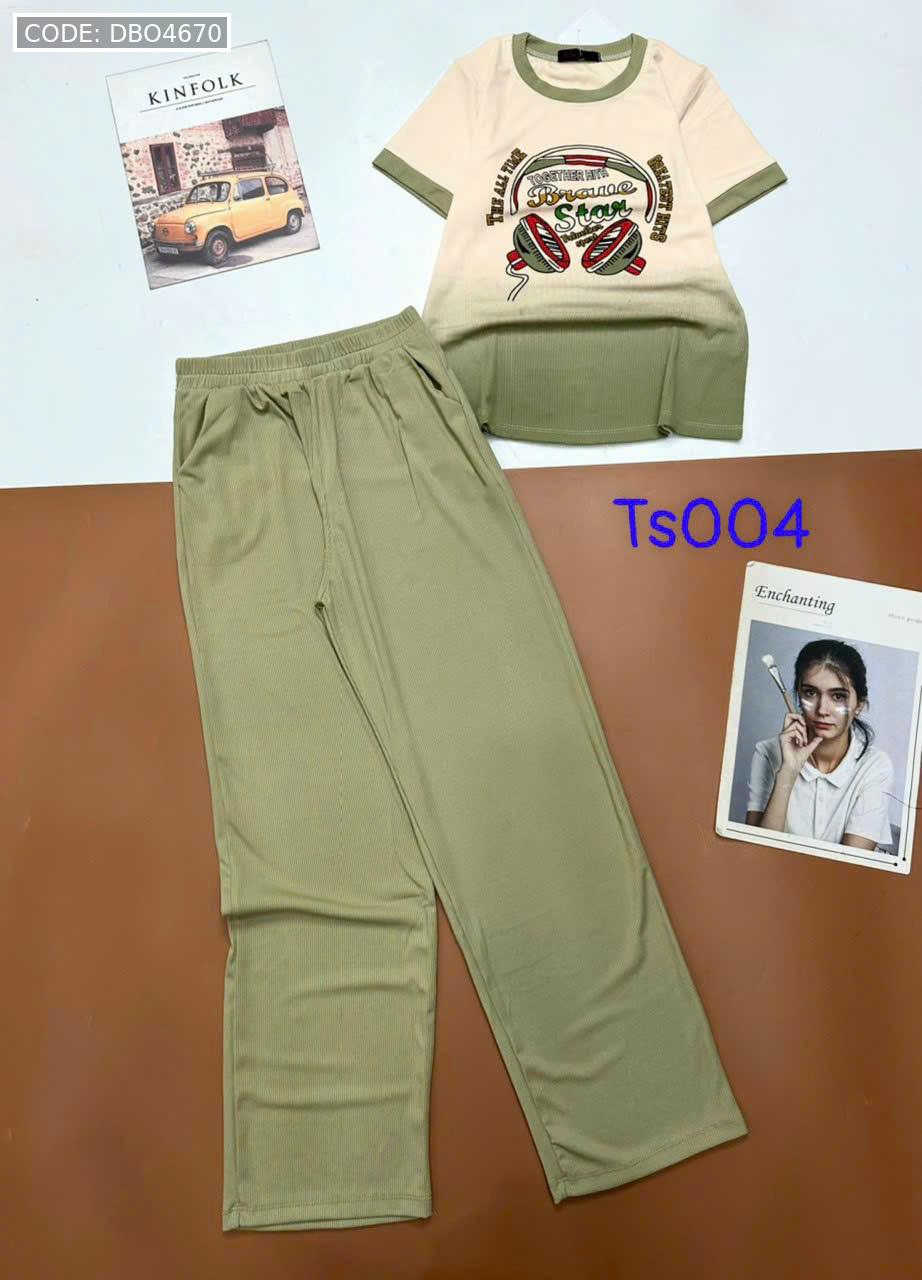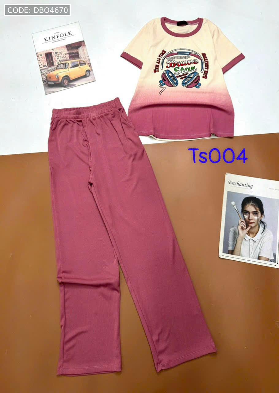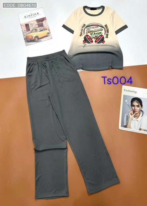 Đồ bộ tăm lạnh quần dài áo cổ tròn tay ngắn in hình máy nghe nhạc