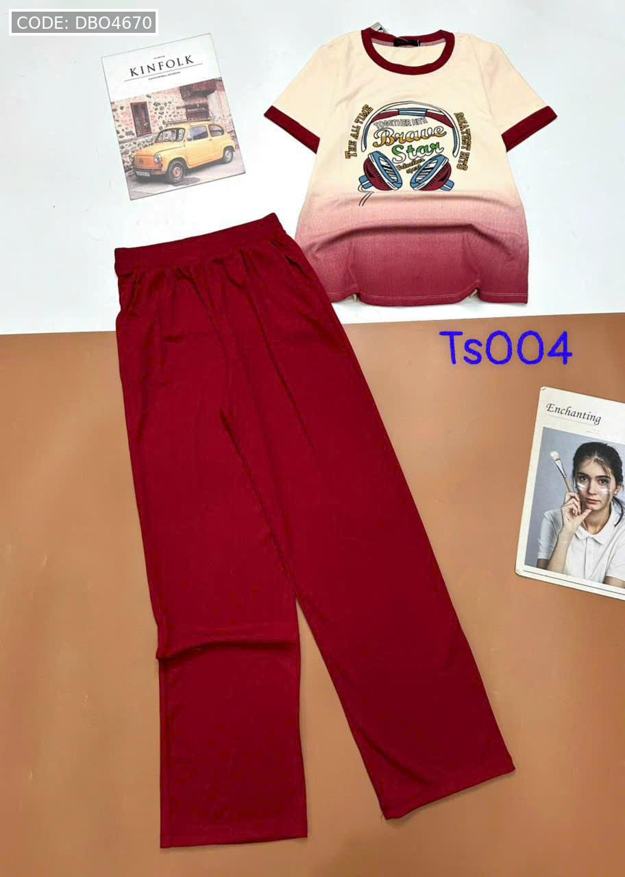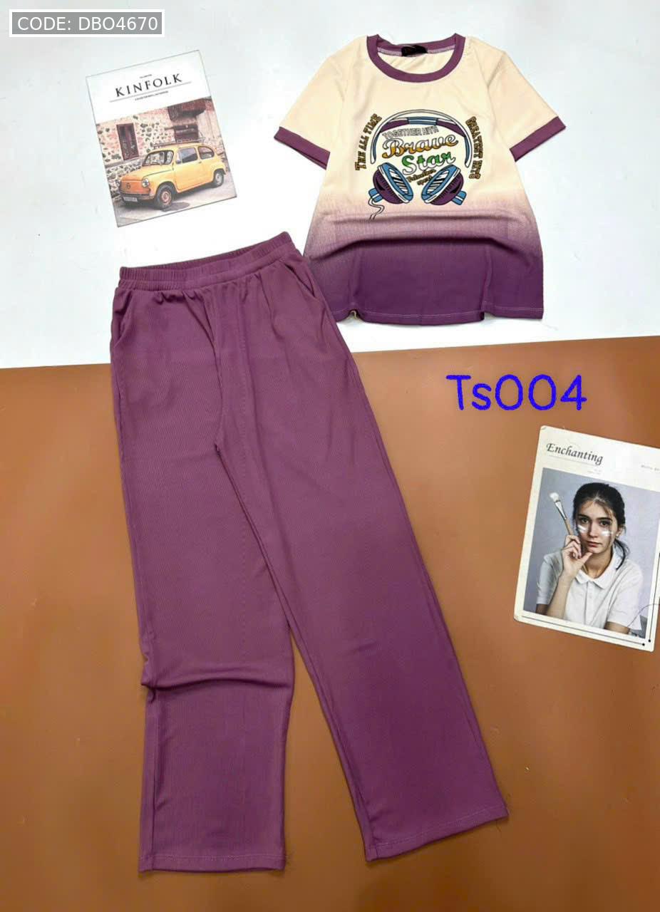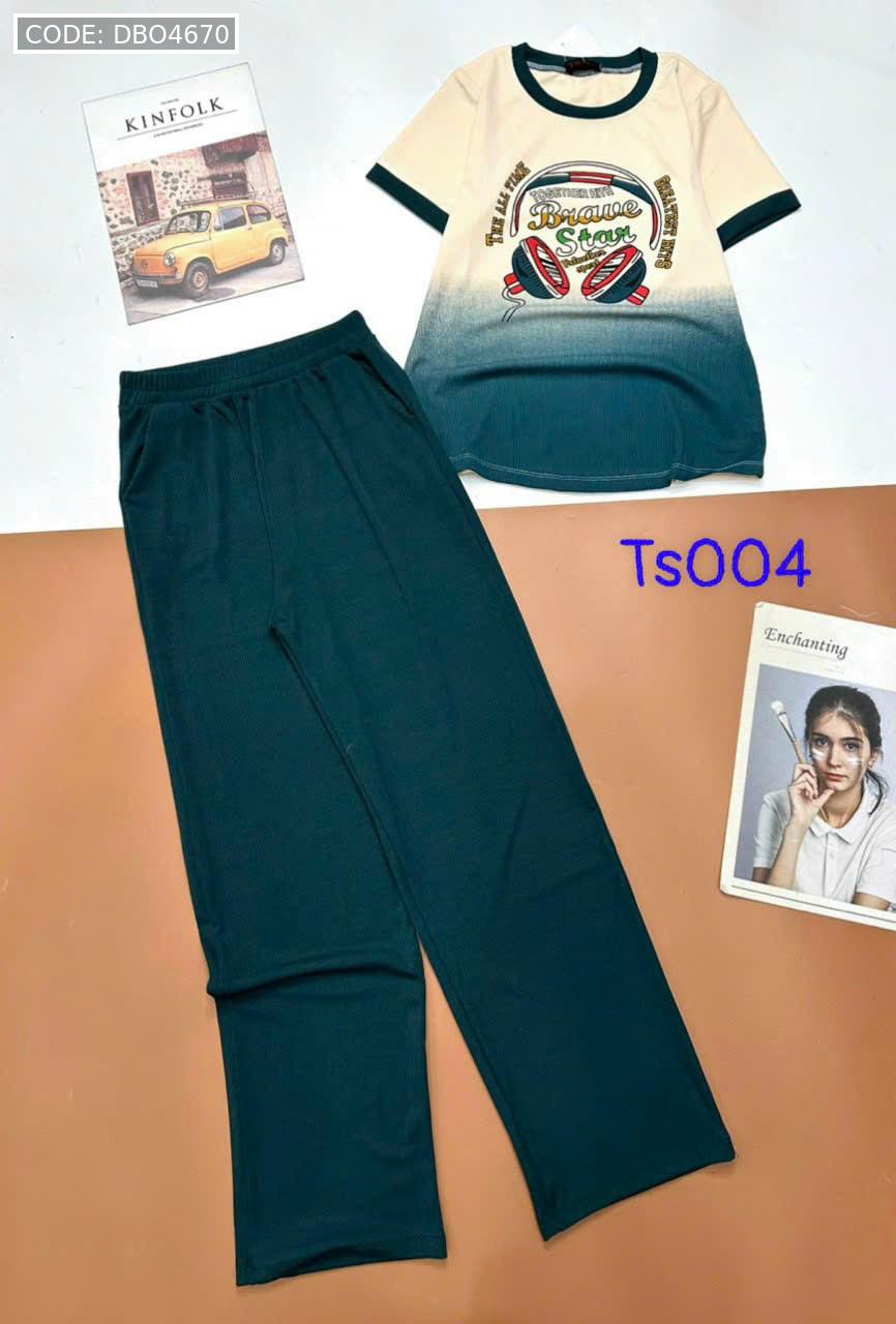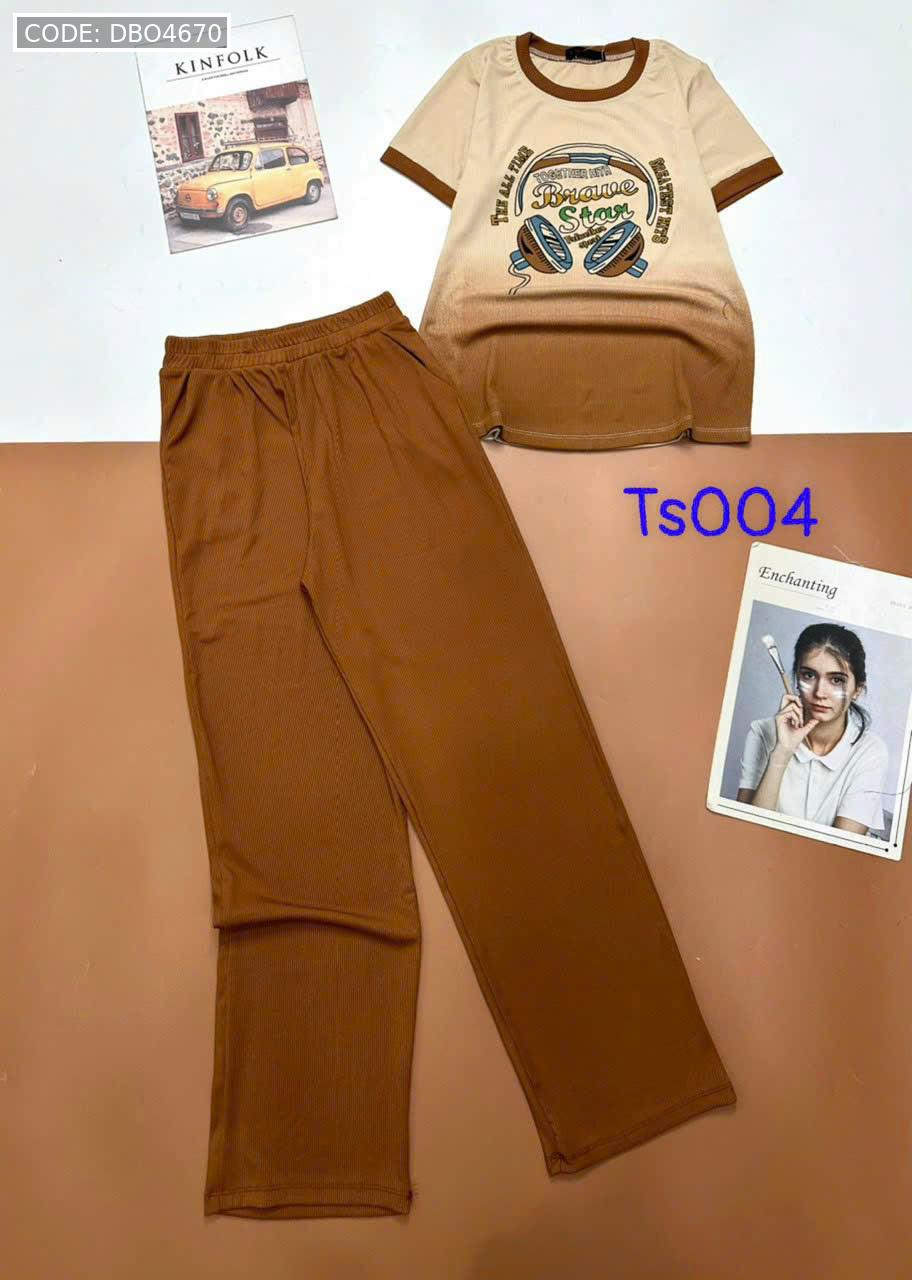 Đồ bộ tăm lạnh quần dài áo cổ tròn tay ngắn in hình máy nghe nhạc