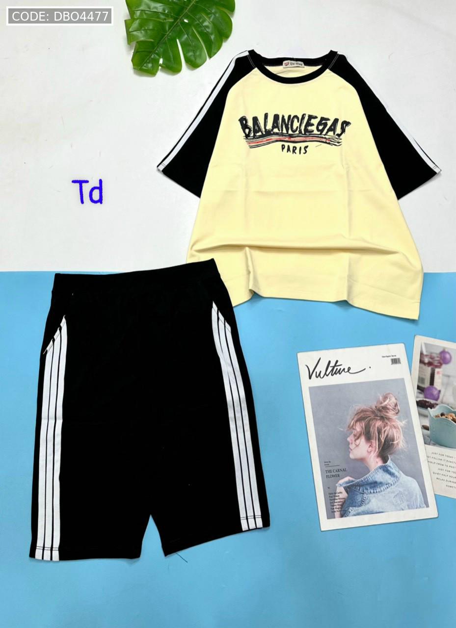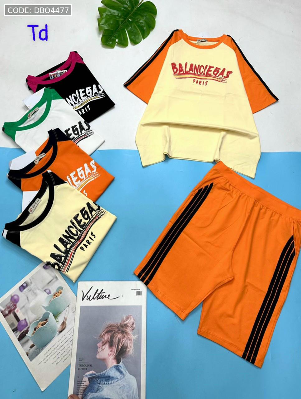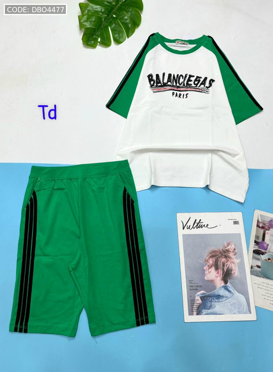 Đồ bộ thun cotton quần lửng áo tay ngắn in chữ paris