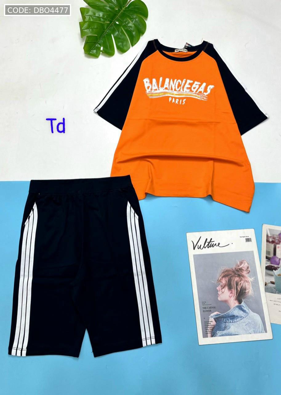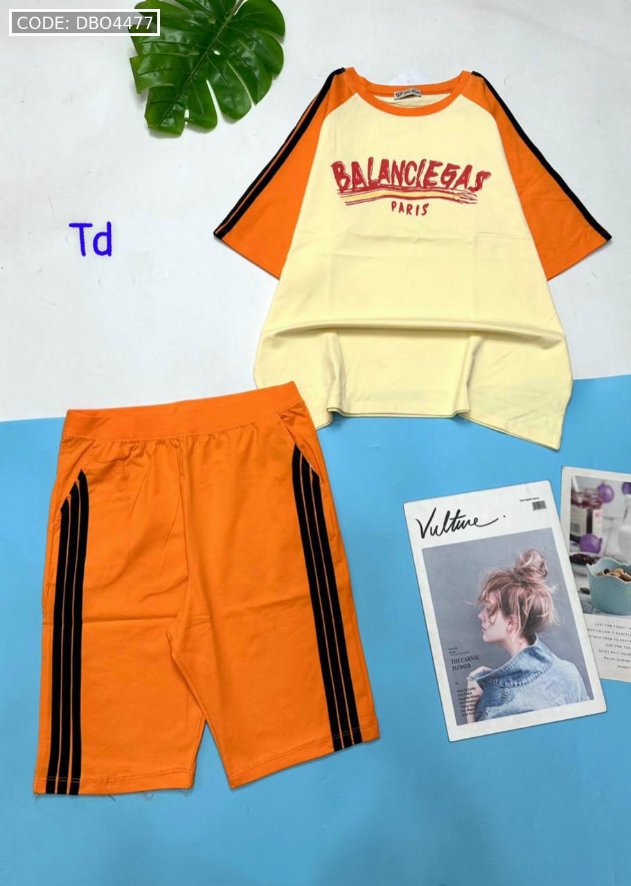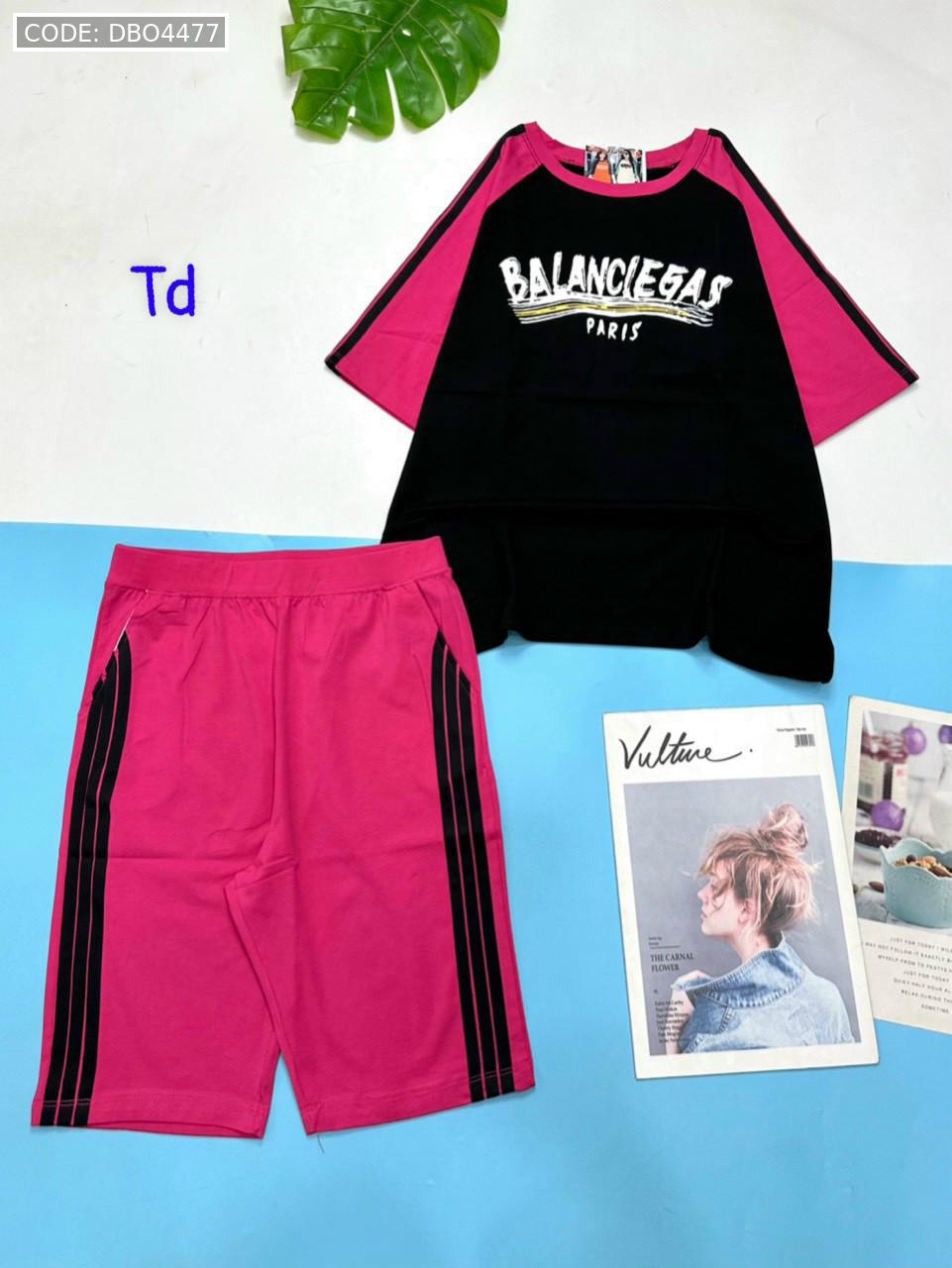 Đồ bộ thun cotton quần lửng áo tay ngắn in chữ paris