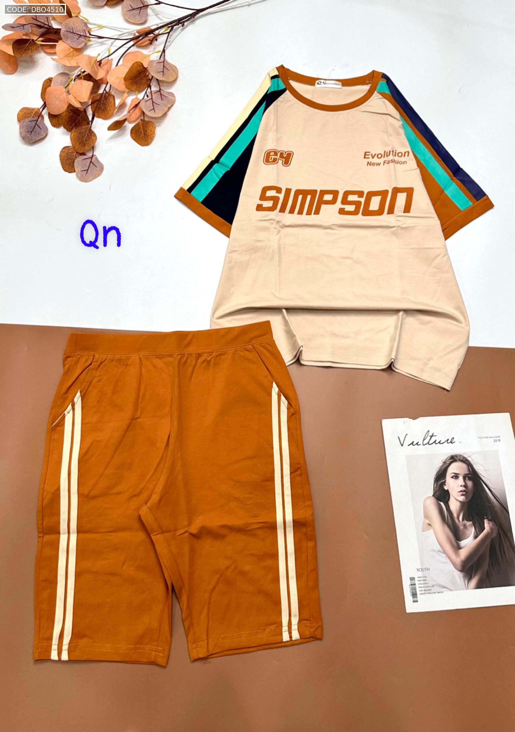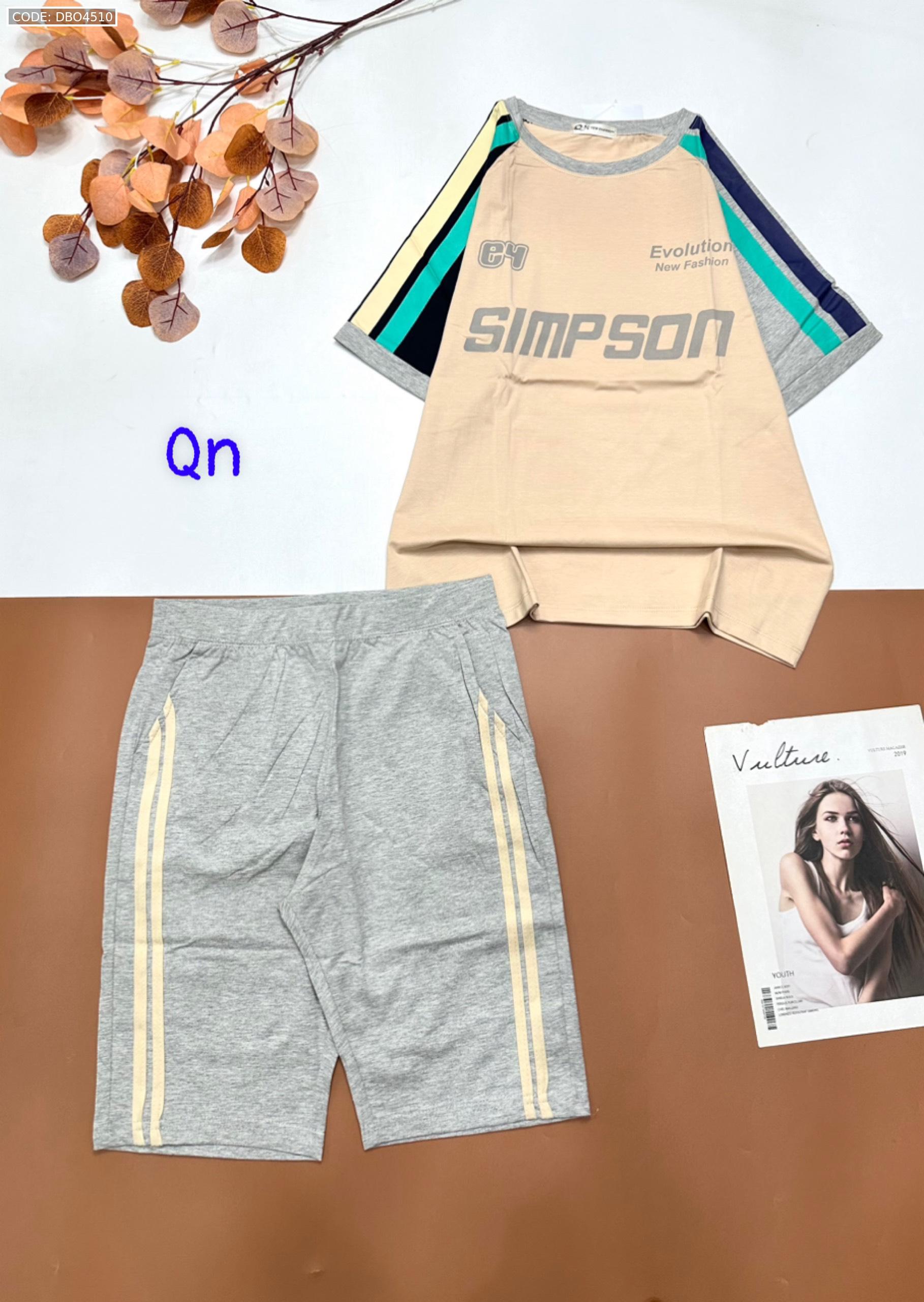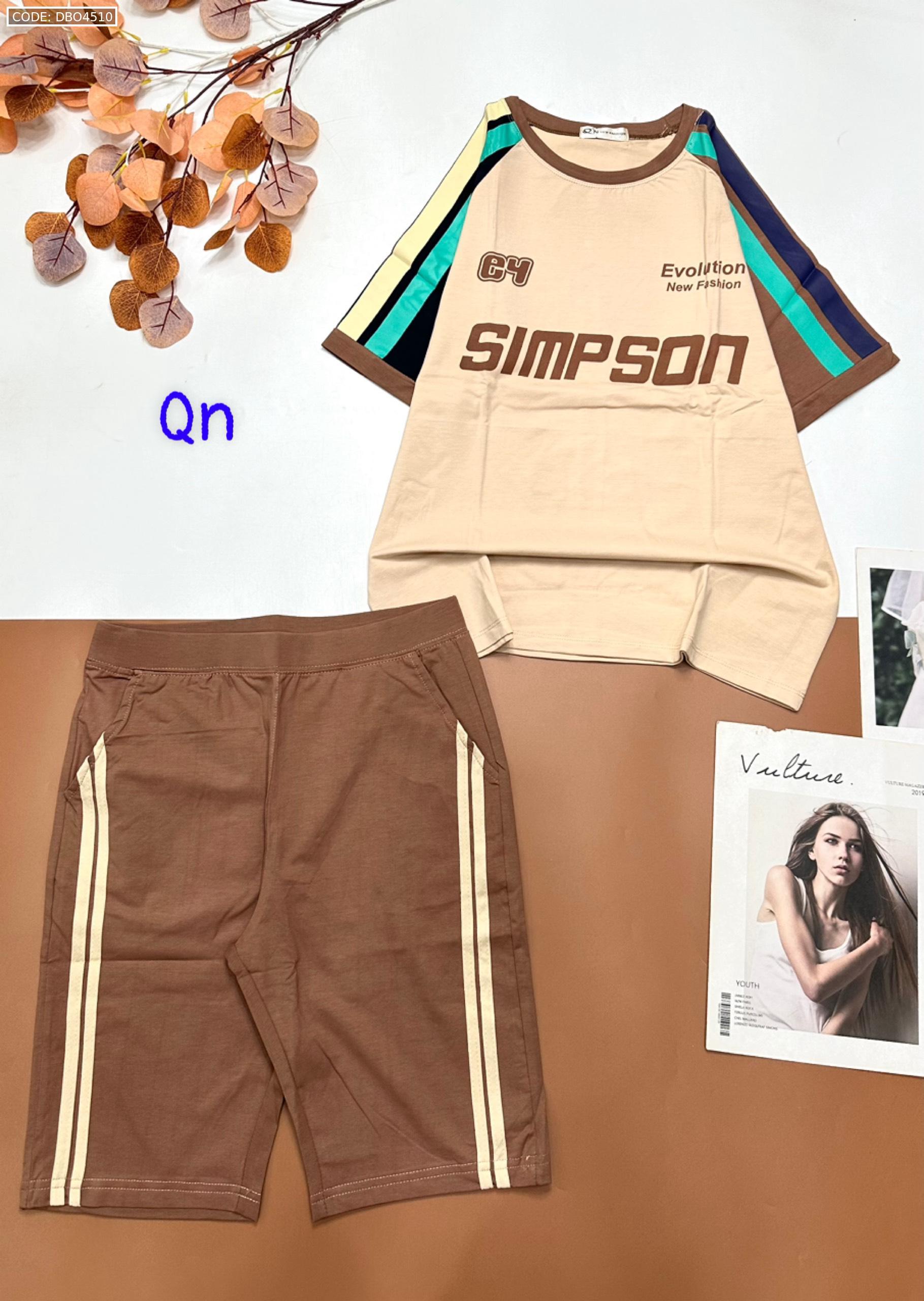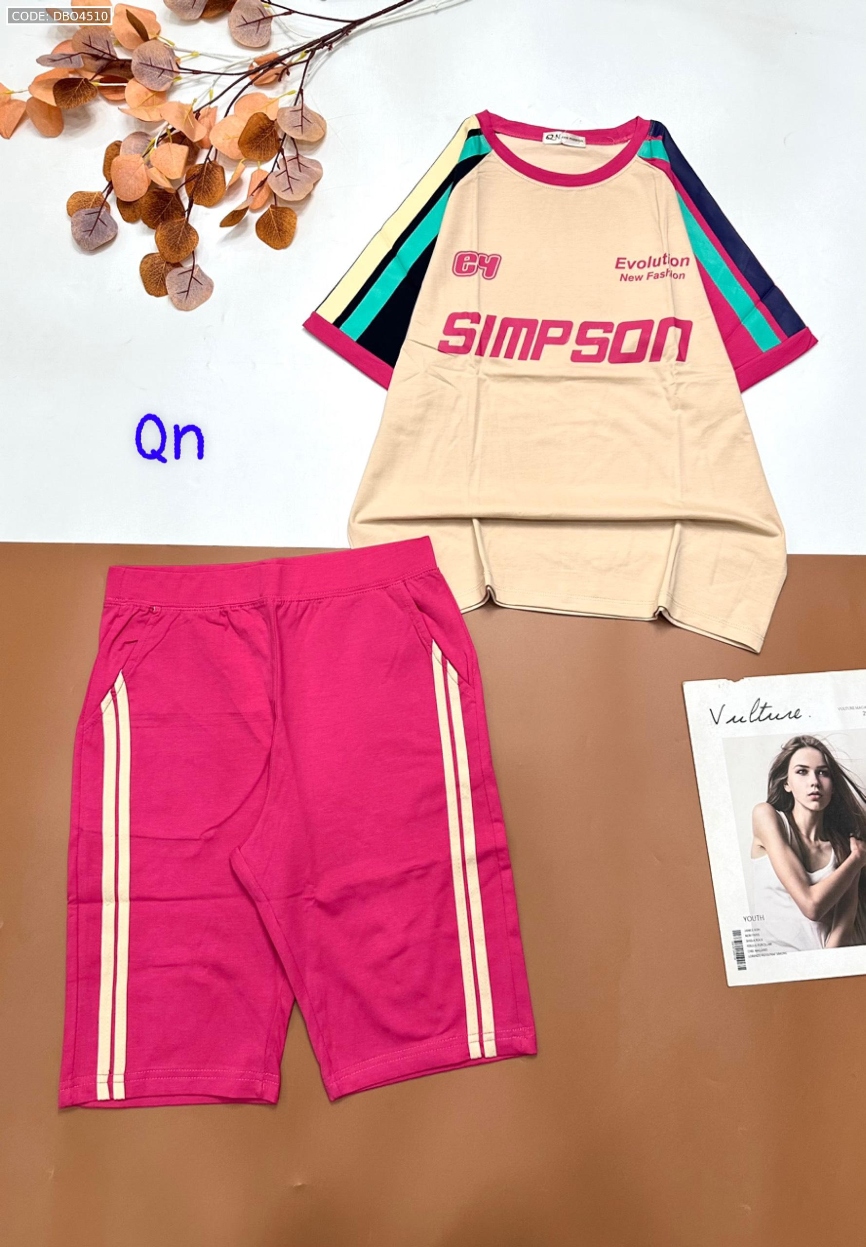 Đồ bộ thun cotton quần lửng áo tay ngắn in chữ SIMPSON