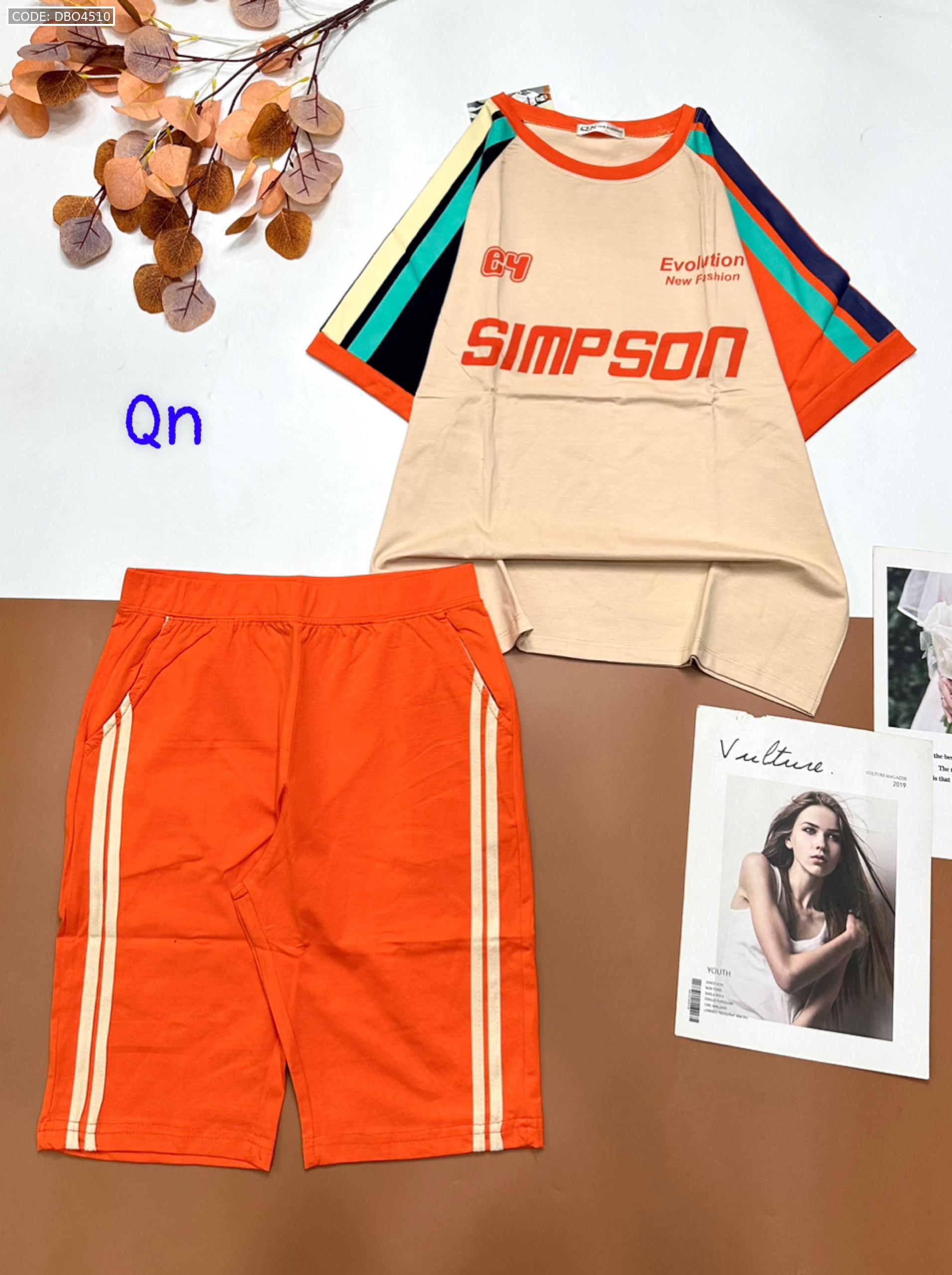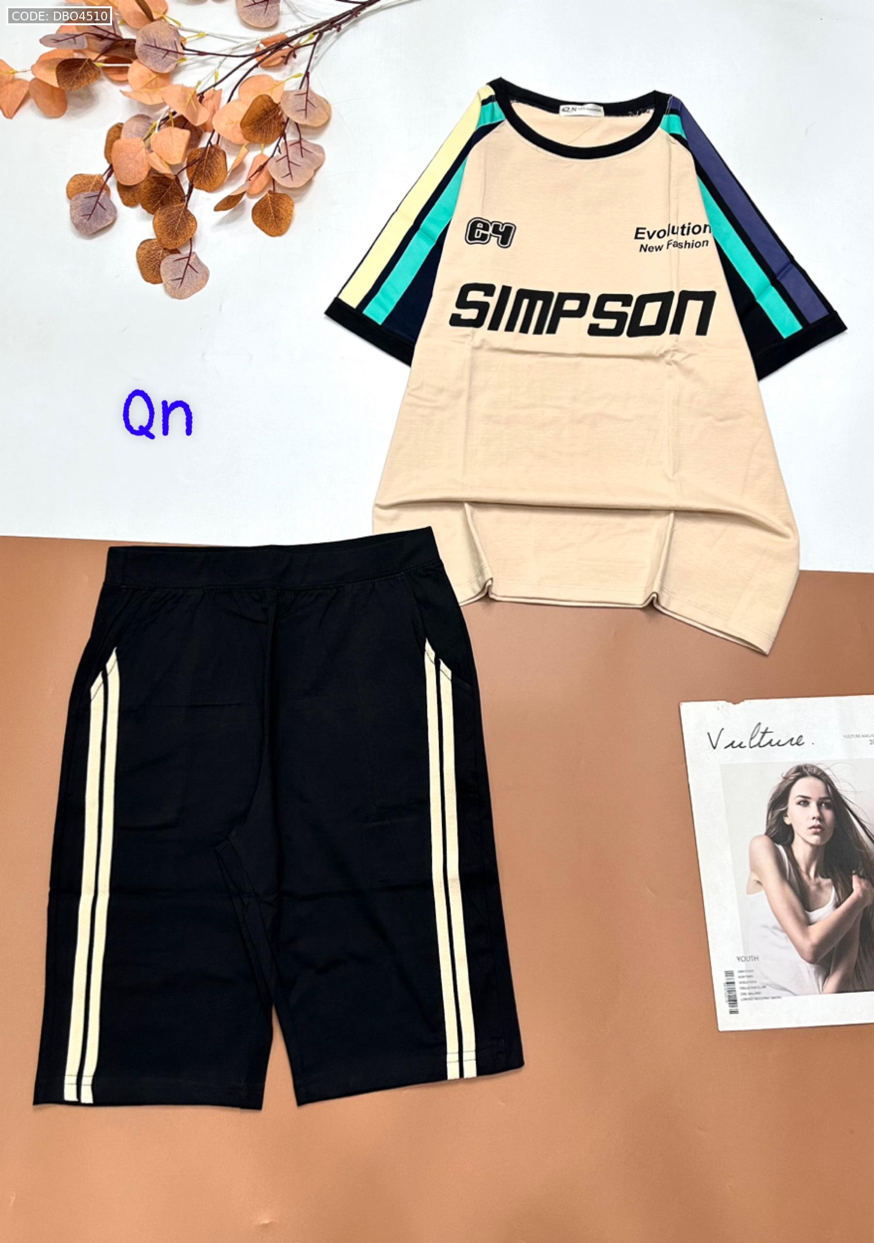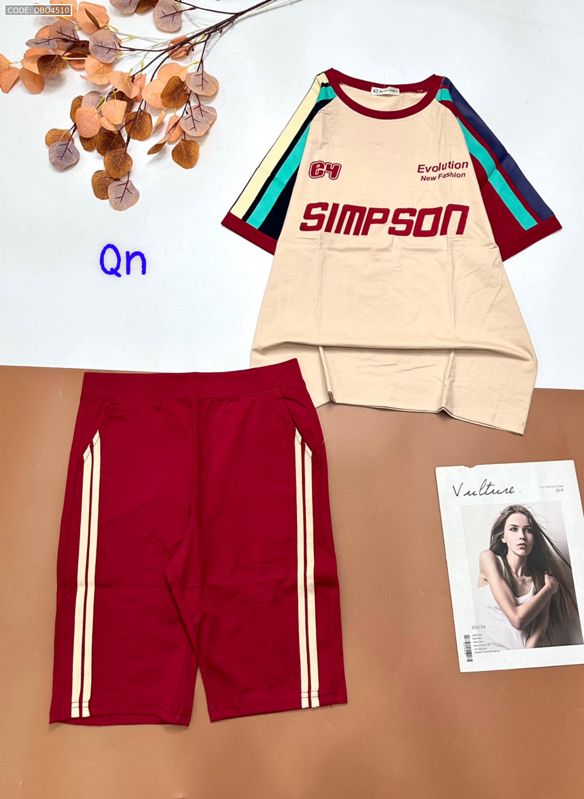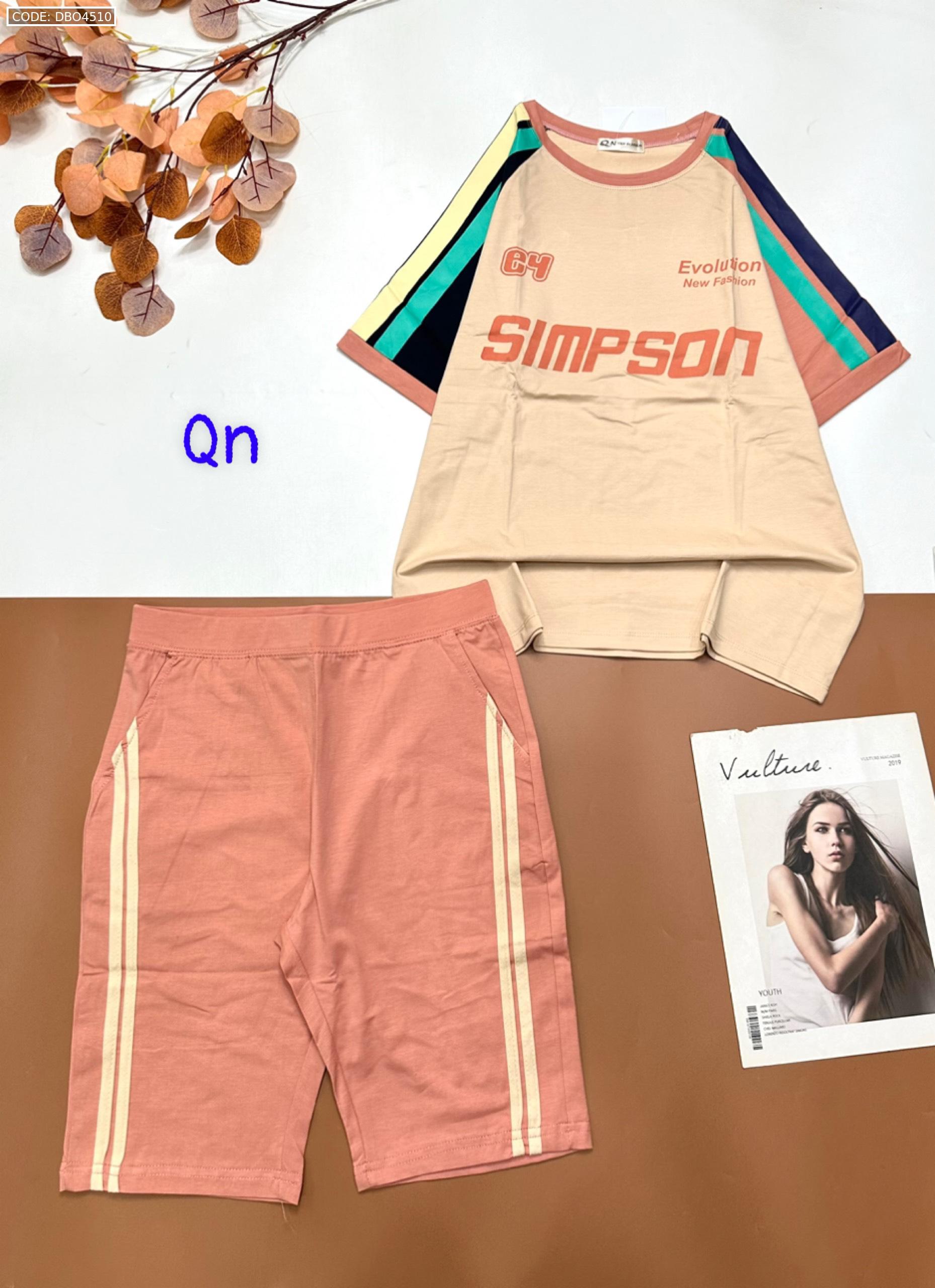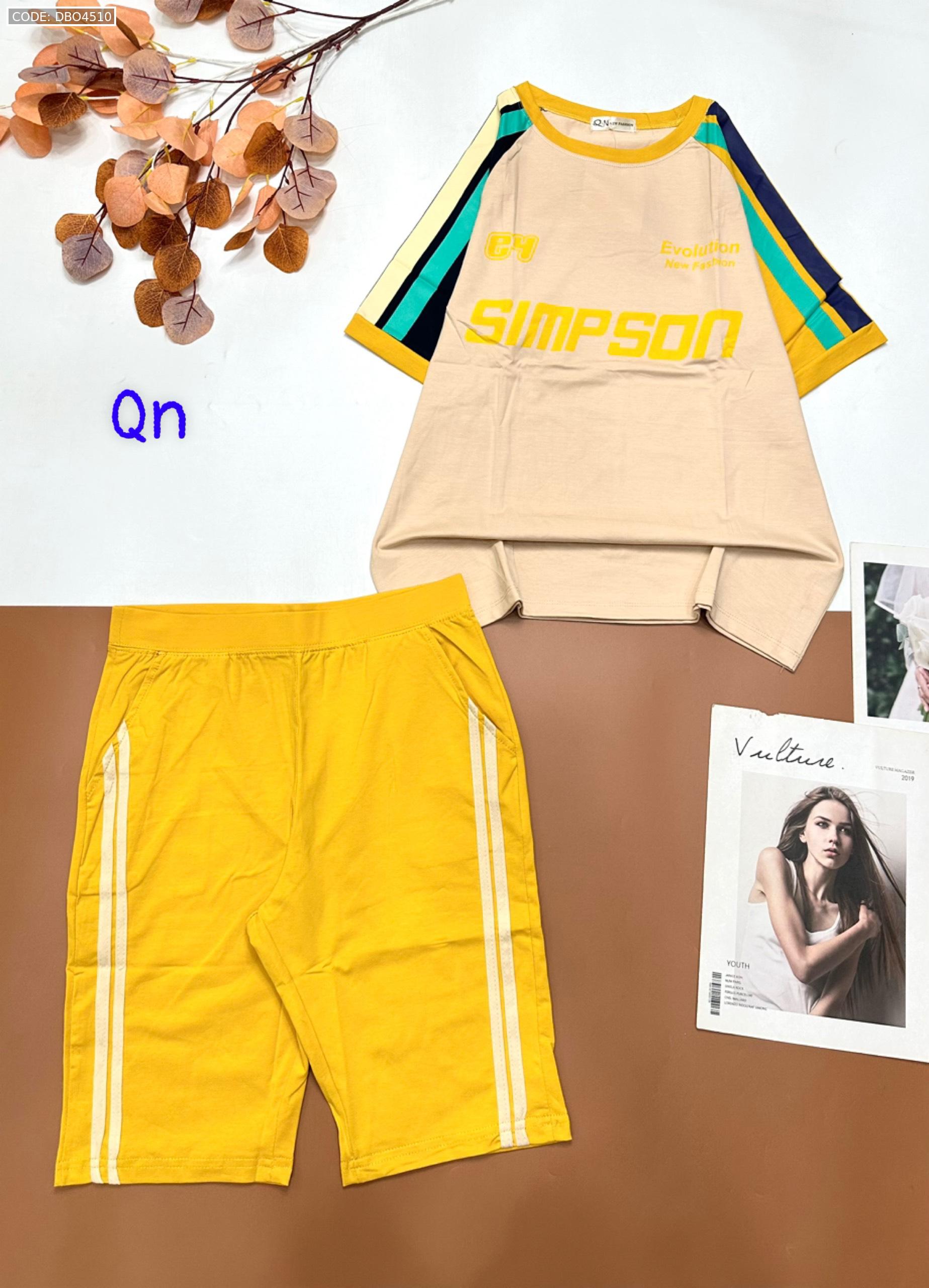 Đồ bộ thun cotton quần lửng áo tay ngắn in chữ SIMPSON