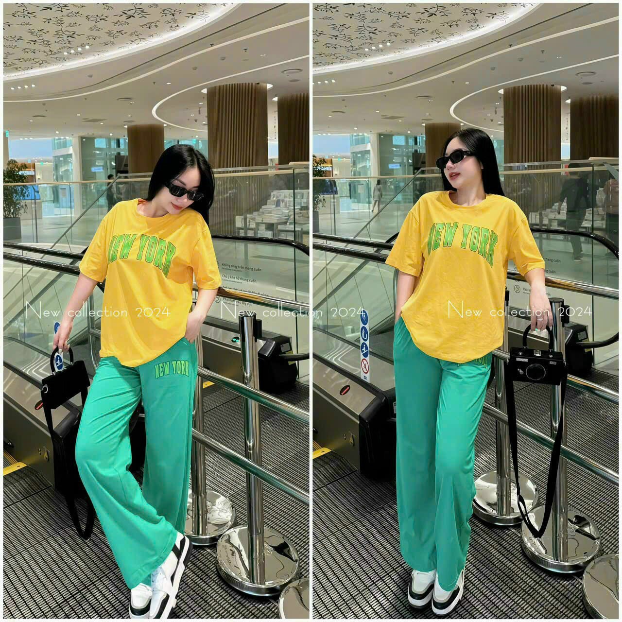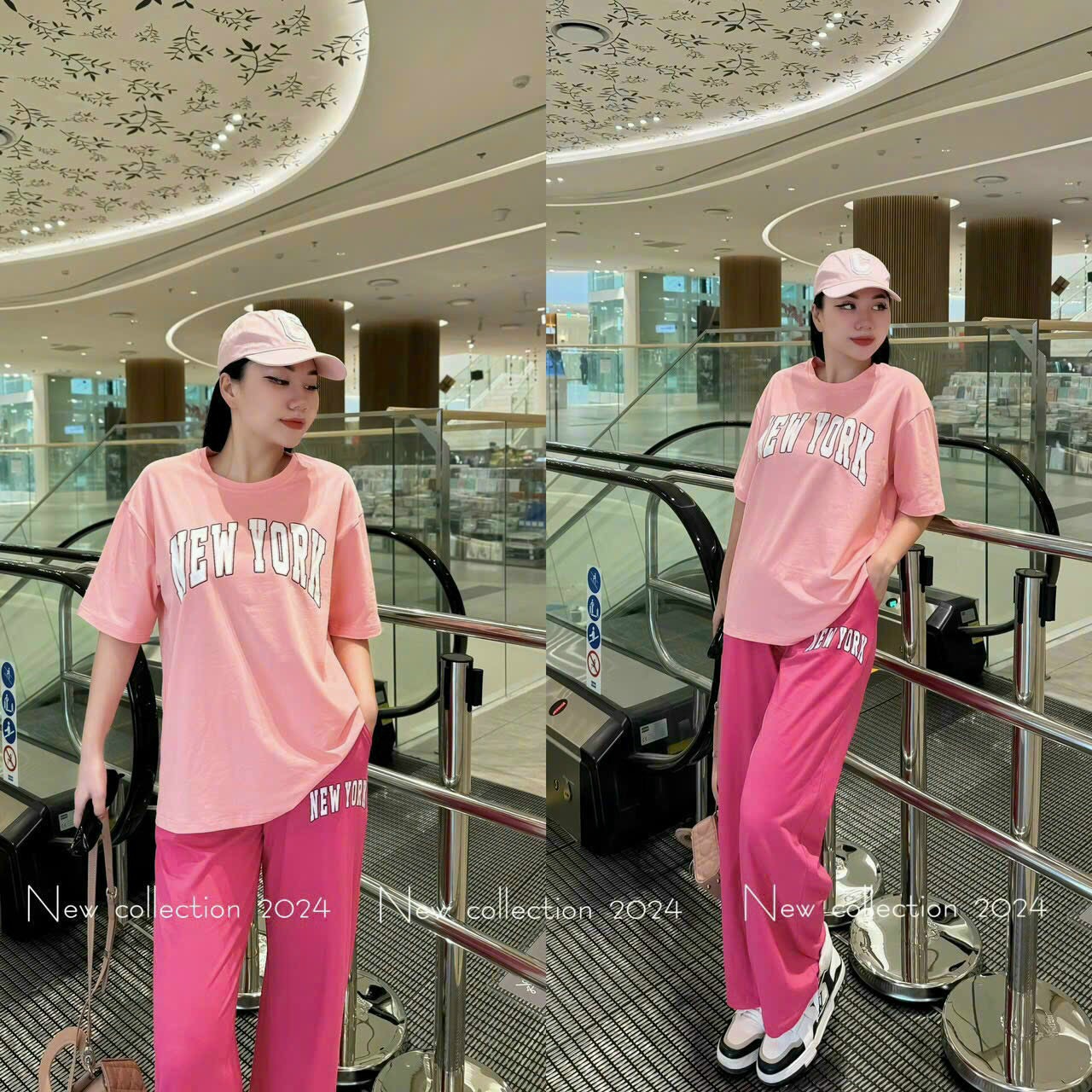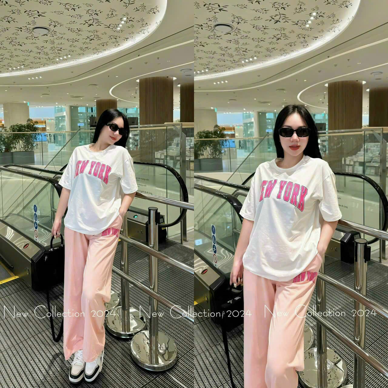 Đồ Bộ Thun Nữ Quần Dài In Chữ New York Áo Form Dưới 70kg