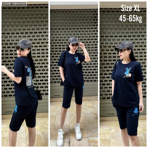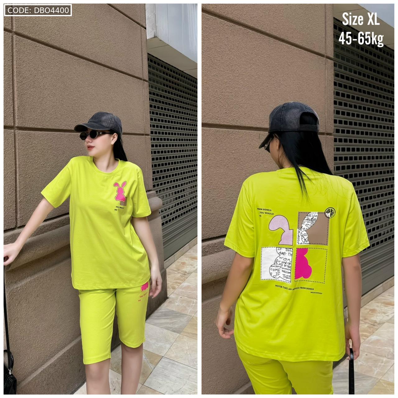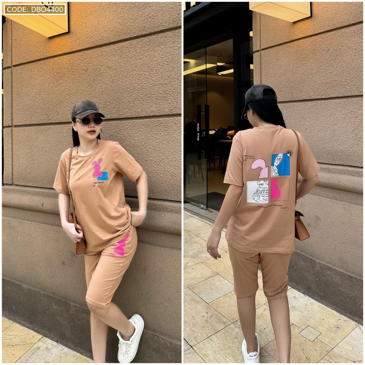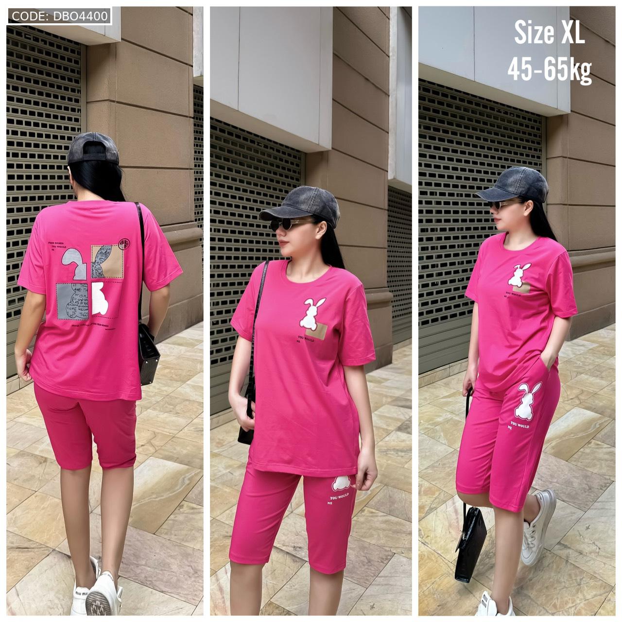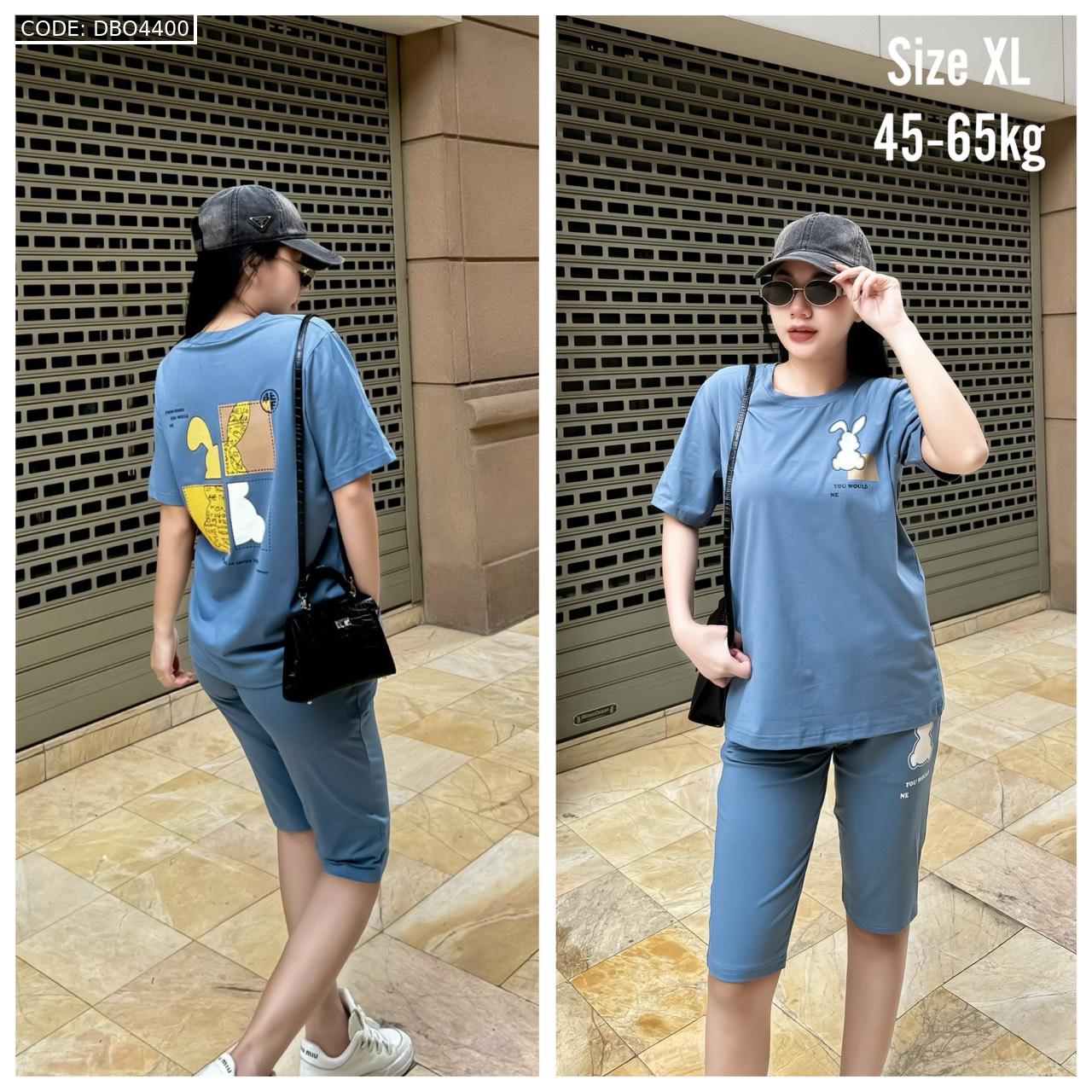Đồ bộ thun nữ quần lững in con thỏ bên trái form rộng 65kg