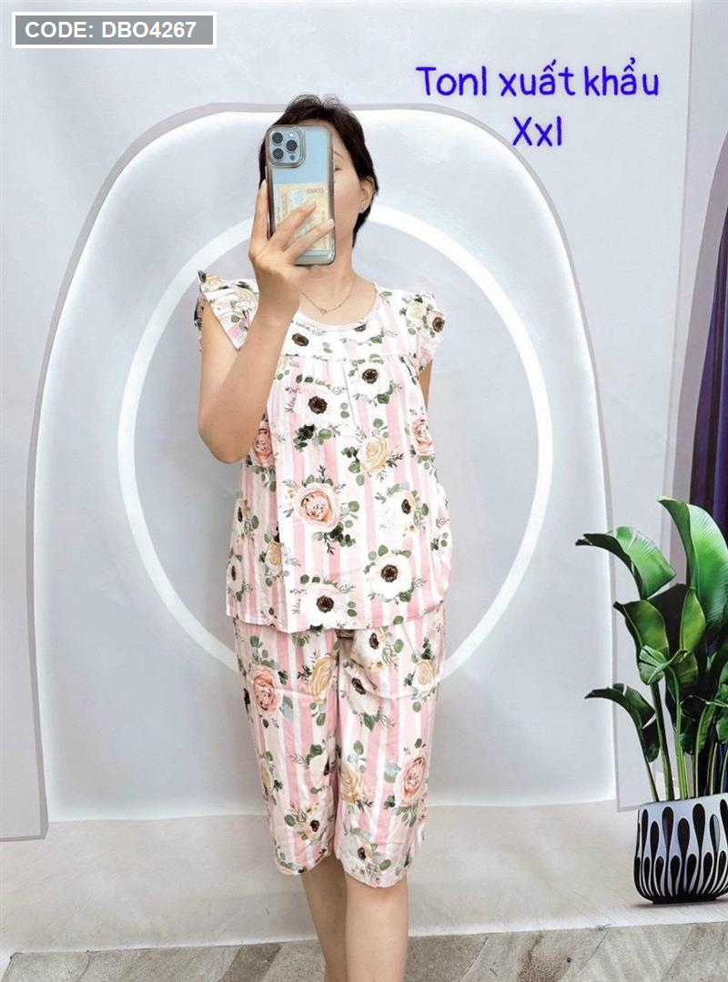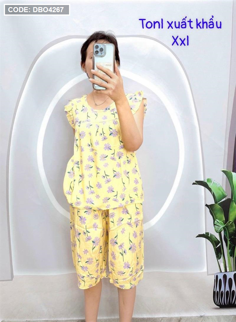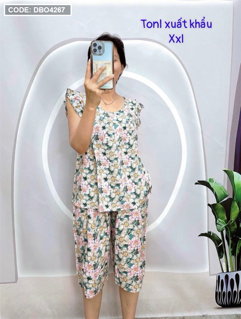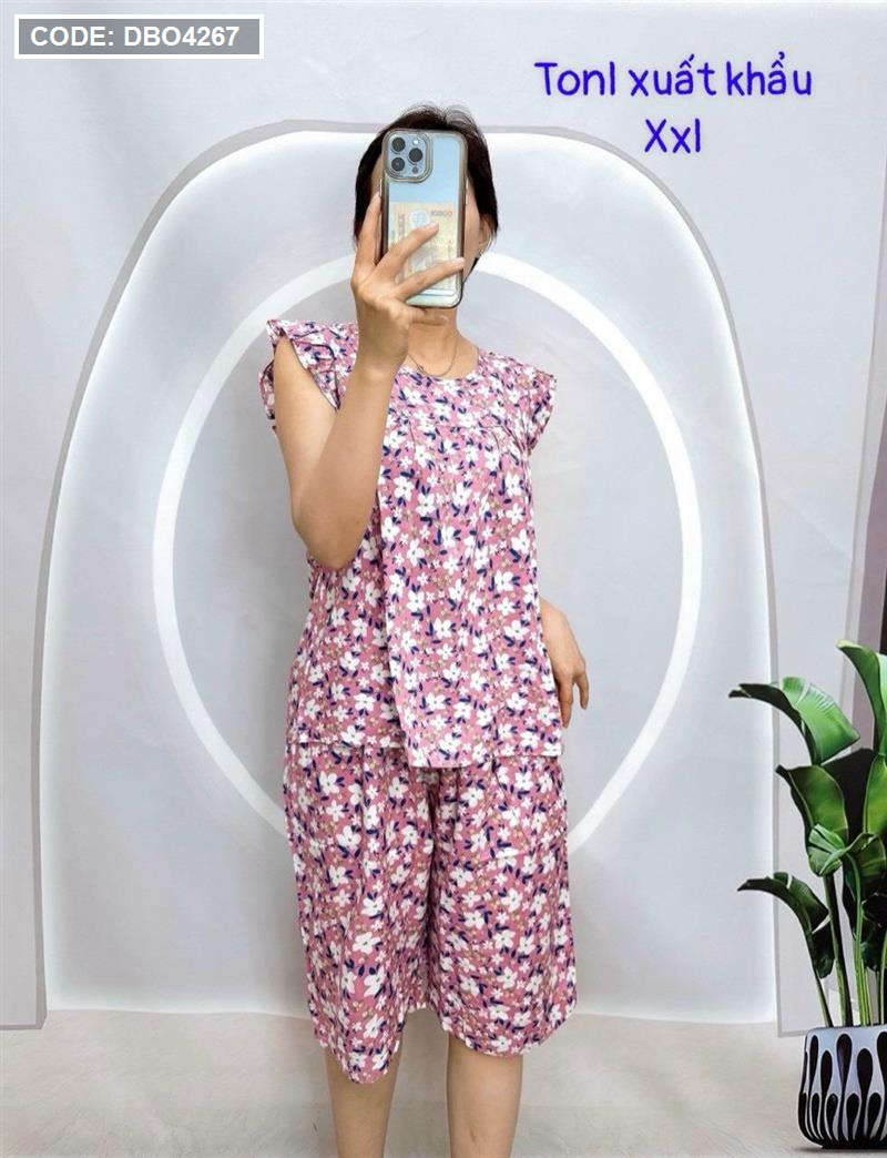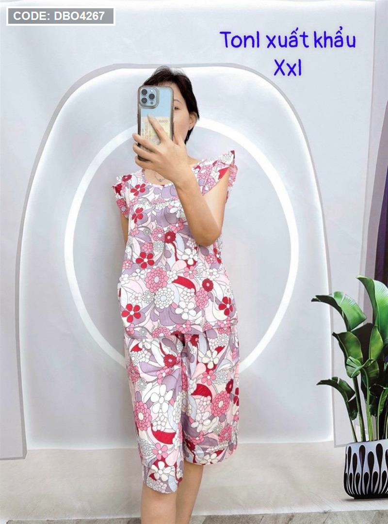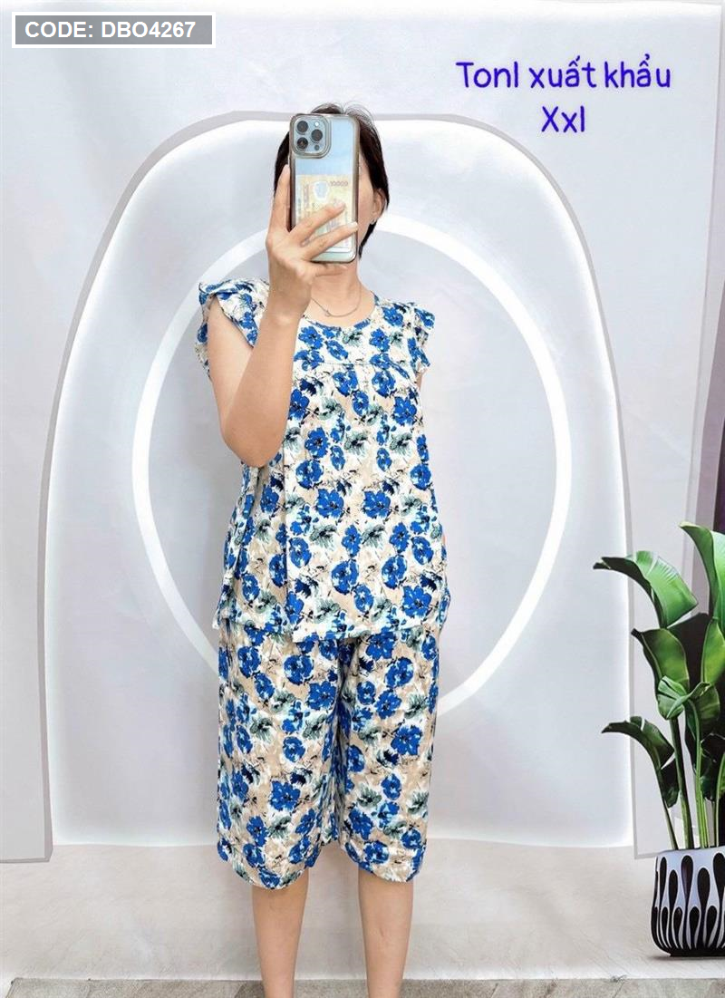 Đồ bộ tonl form lớn quần lửng áo sát nách bèo họa tiết