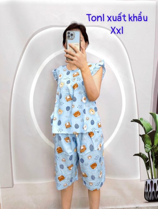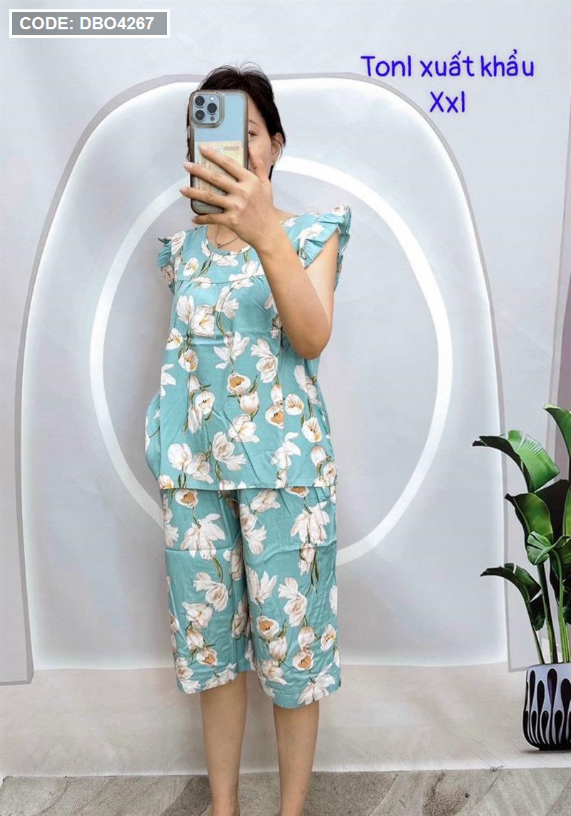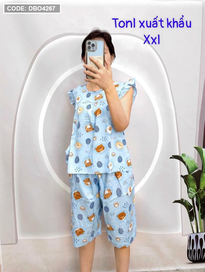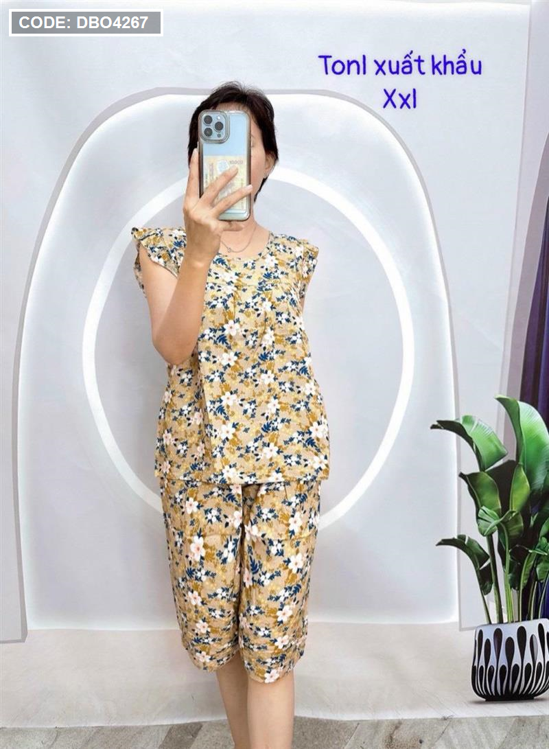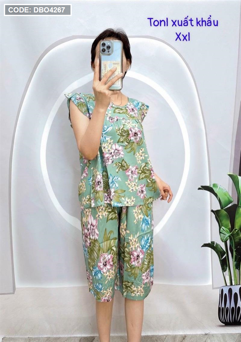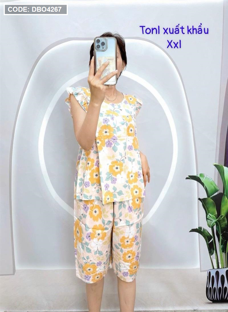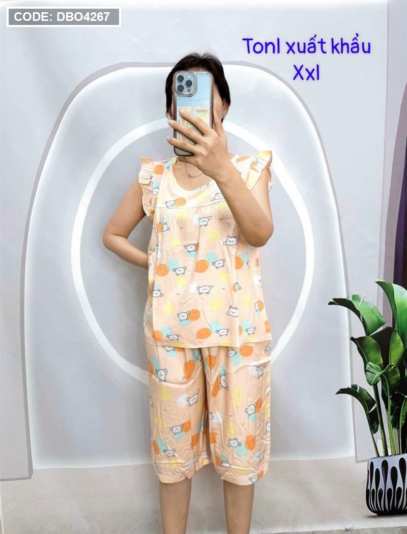 Đồ bộ tonl form lớn quần lửng áo sát nách bèo họa tiết
