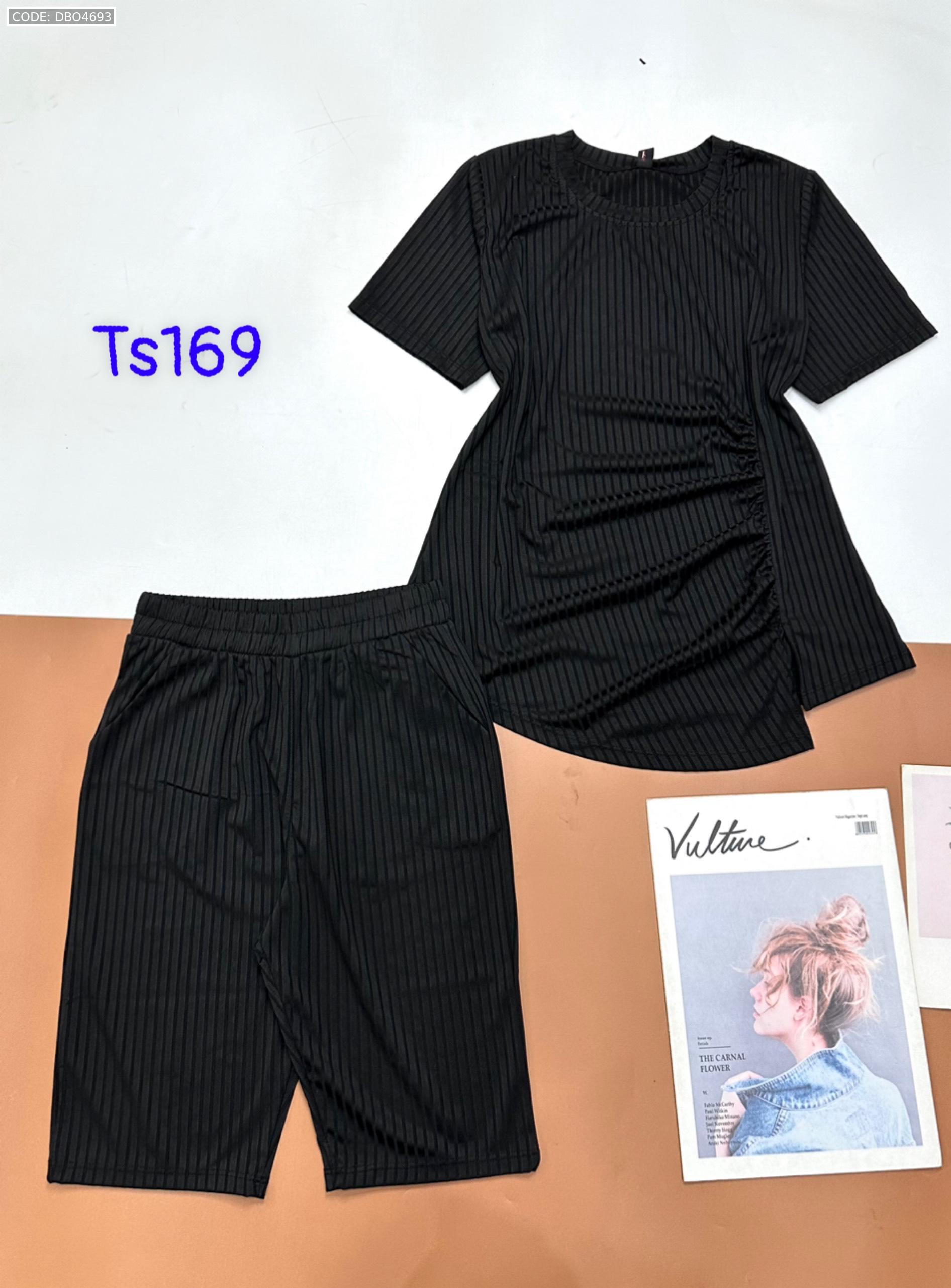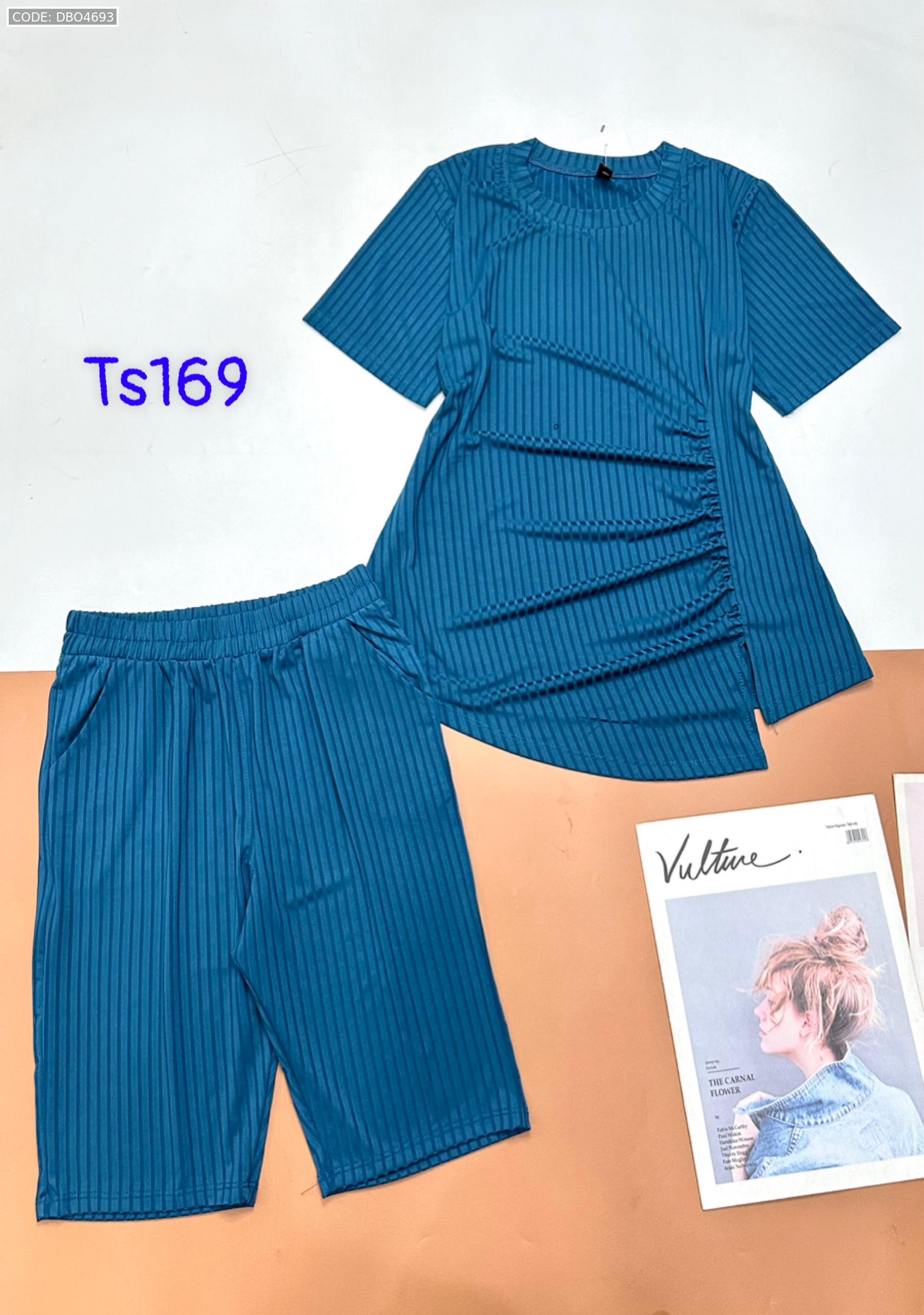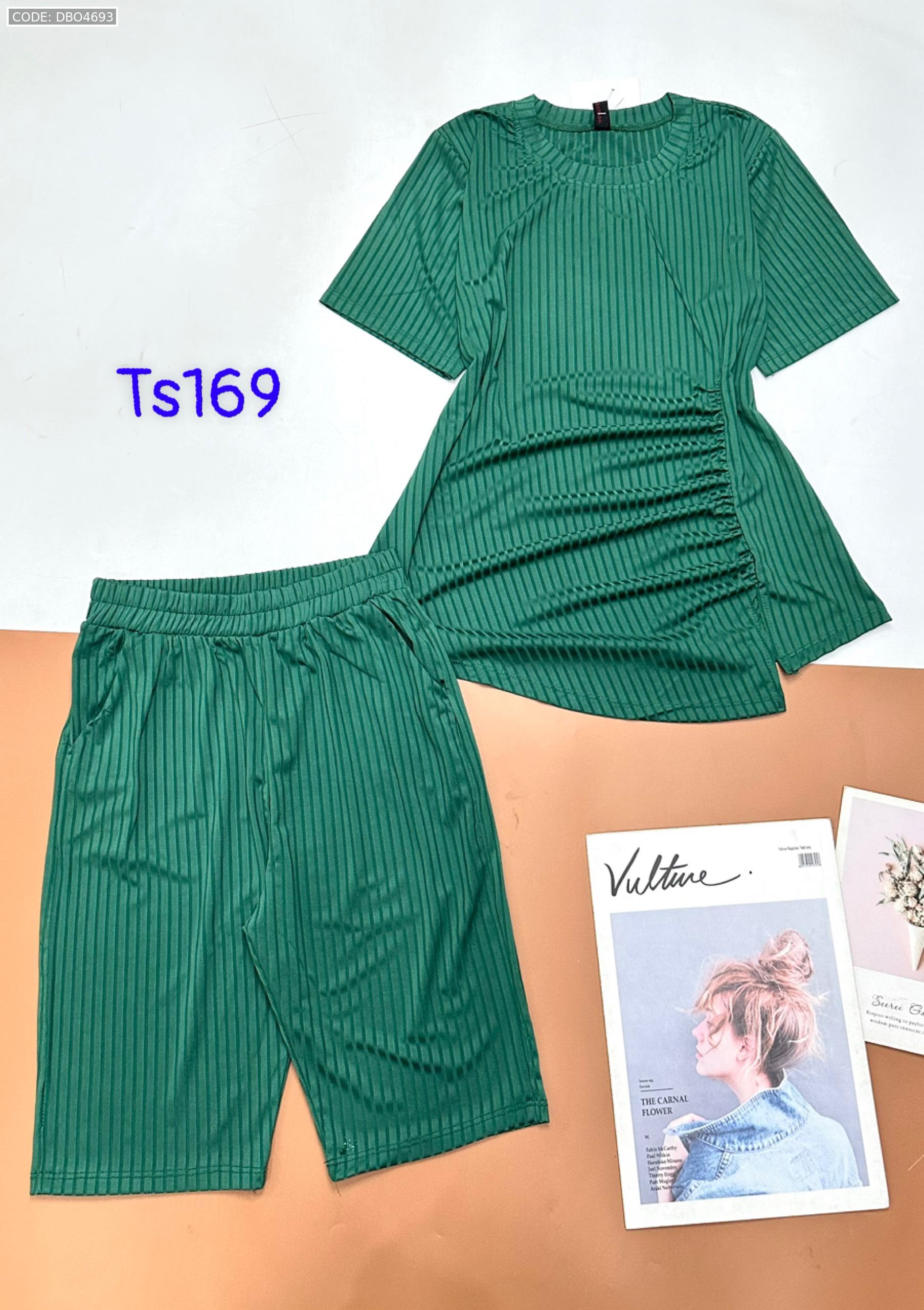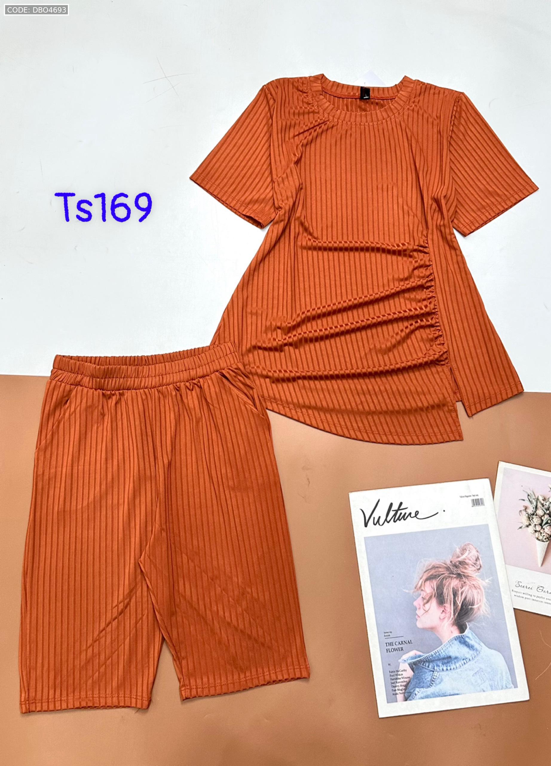 Đồ bộ vải tăm đũa quần ngố áo tay ngắn trơn nhún bên hông xẻ tà áo