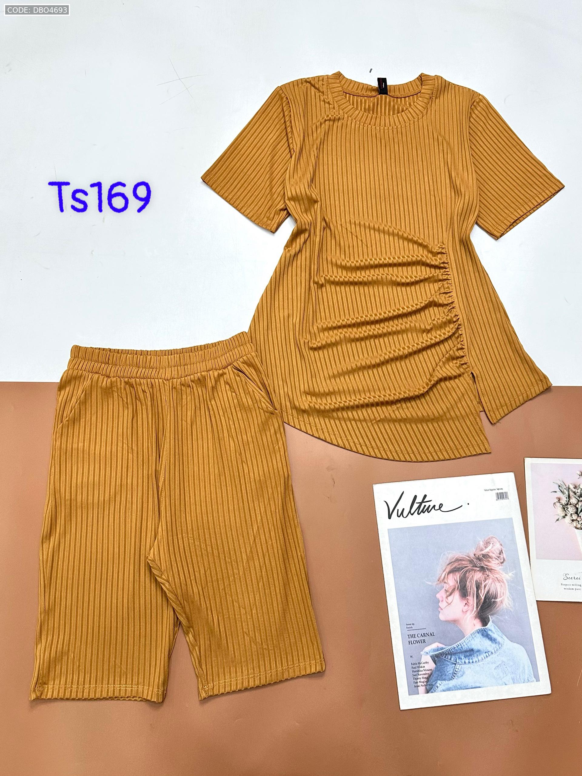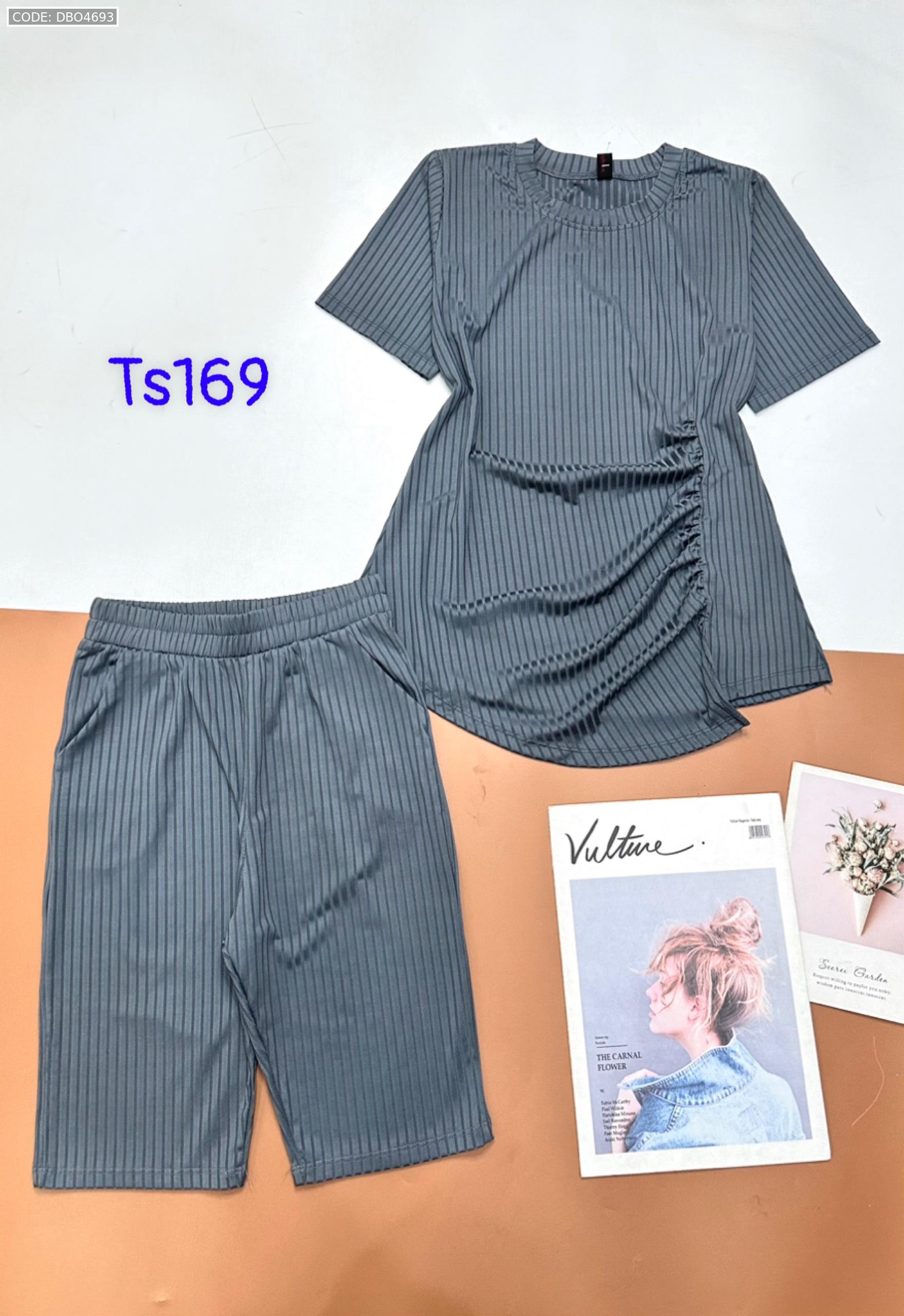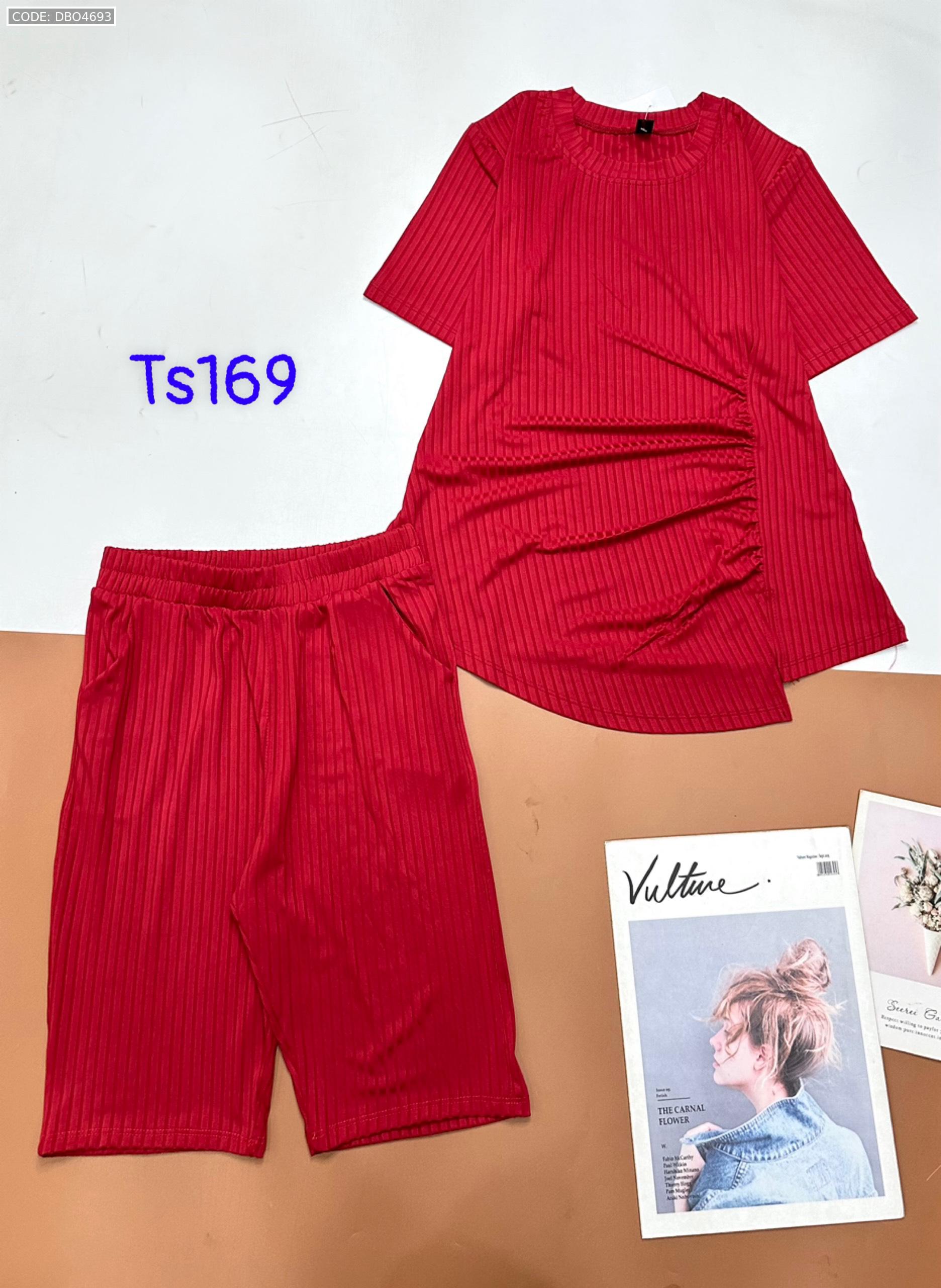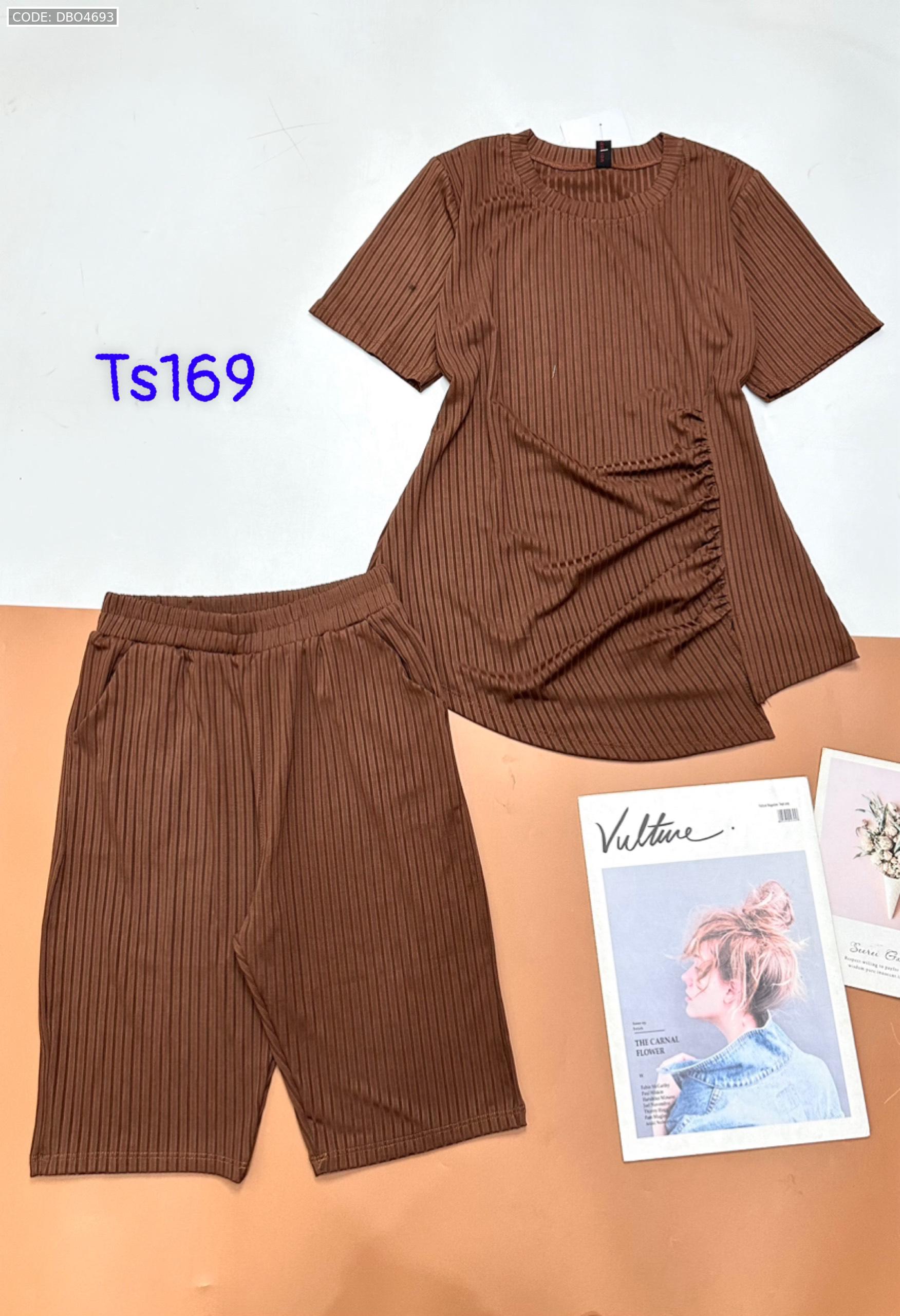 Đồ bộ vải tăm đũa quần ngố áo tay ngắn trơn nhún bên hông xẻ tà áo