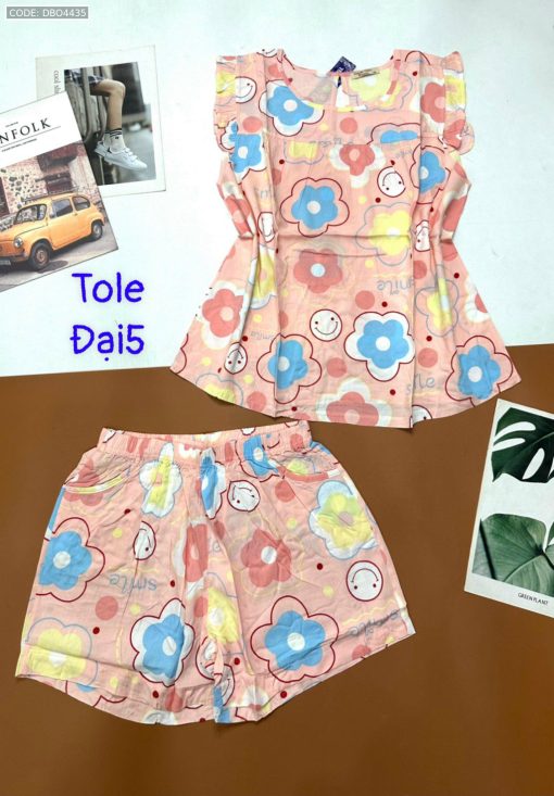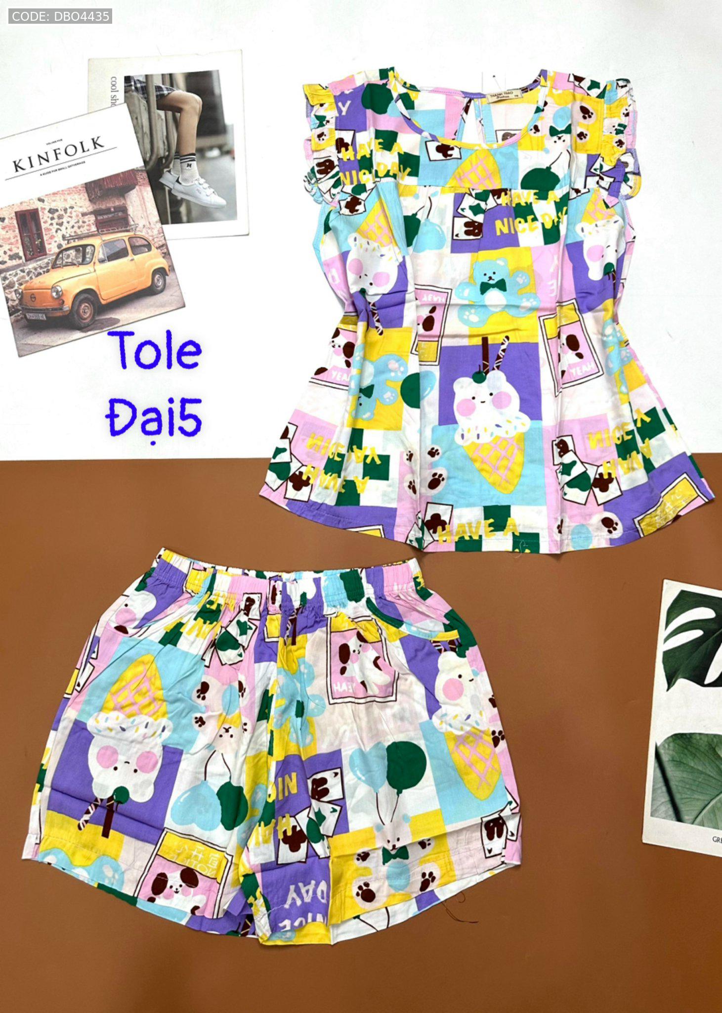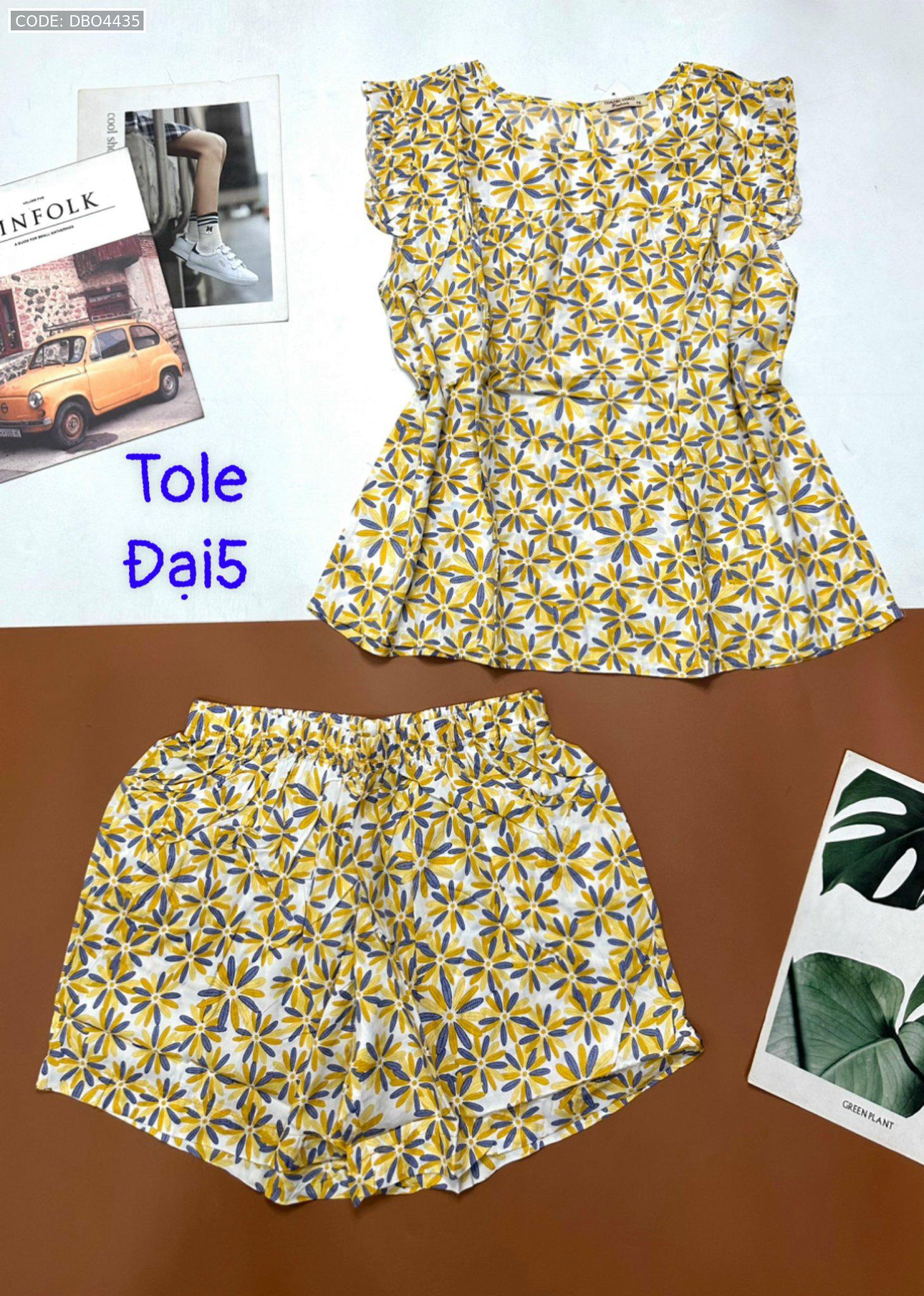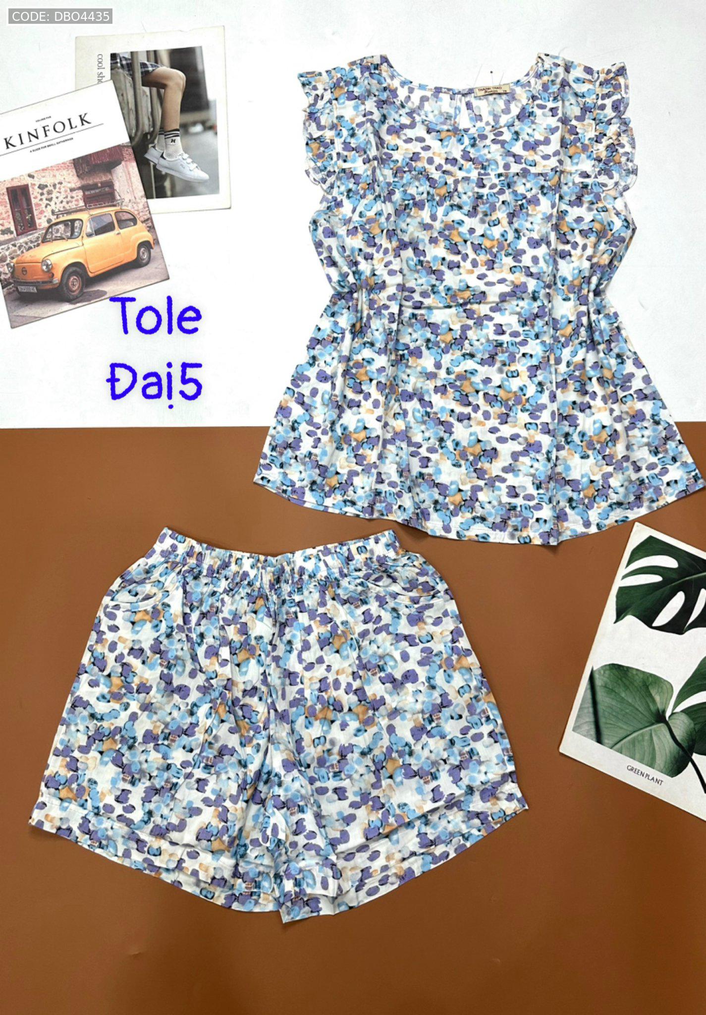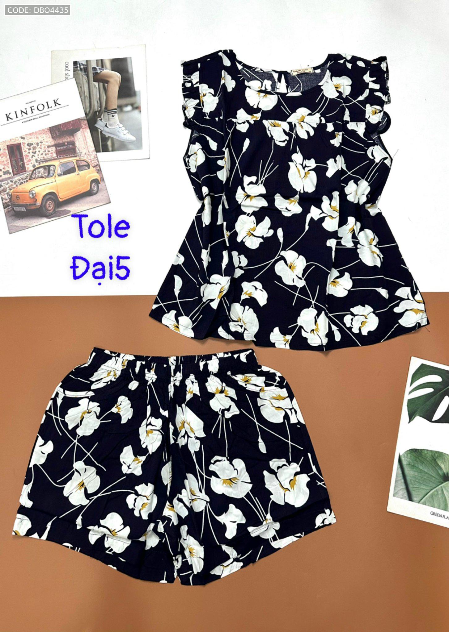 Đồ bộ vải tonl form lớn quần đùi áo sát nách bèo in hoạ tiết