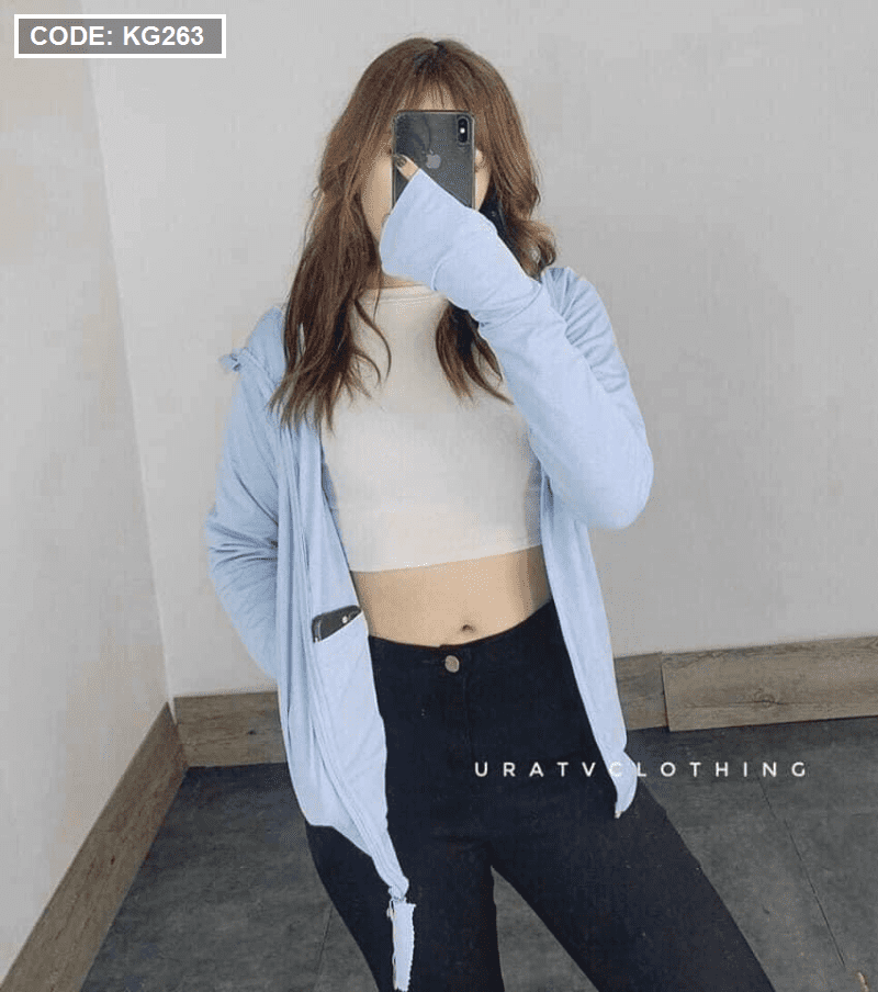 Thiết kế tay dài xỏ ngón, túi trong, túi ngoài, cổ kéo cao, chất mỏng ko dày nên chị nào tìm chống nắng mã dày bỏ qua em này nhé