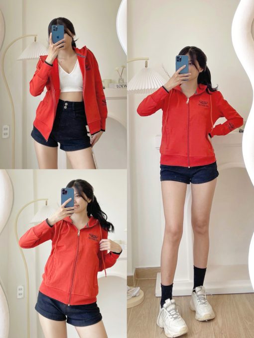 Áo Khoác Thun Nữ Có Nón Thêu Logo Chữ