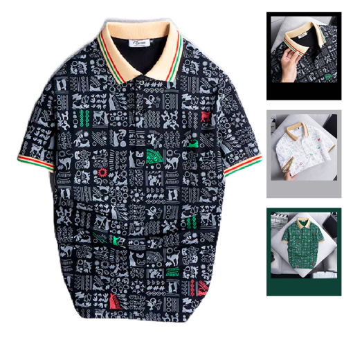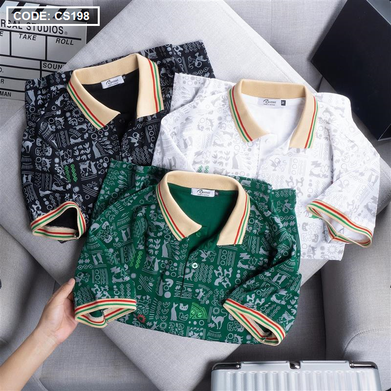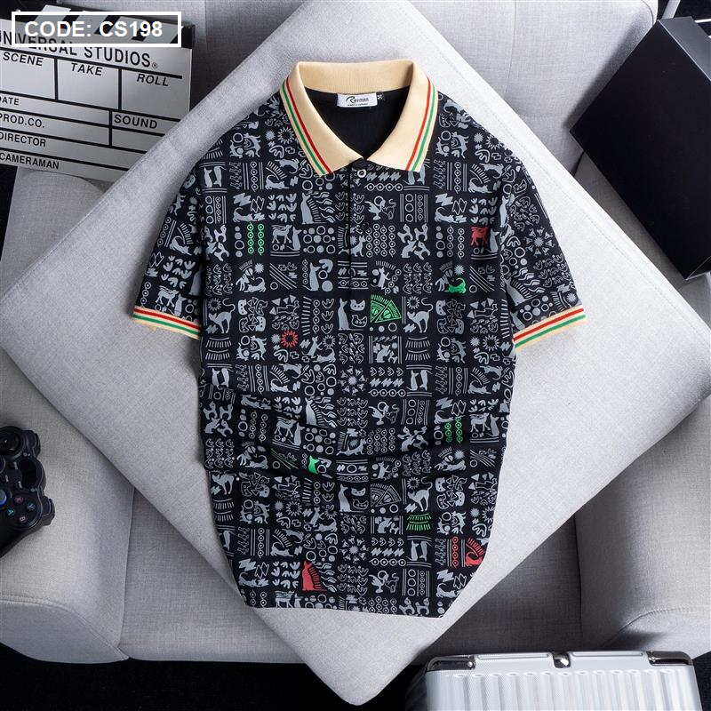 Giá sỉ áo Thun Nam Cổ Bẻ In Hoạ Tiết Viền Bo Màu (Có size 3x)