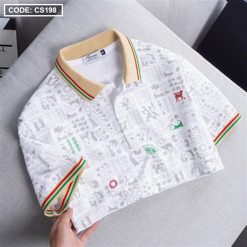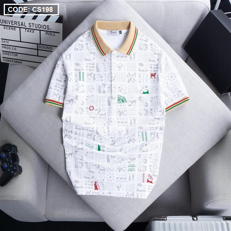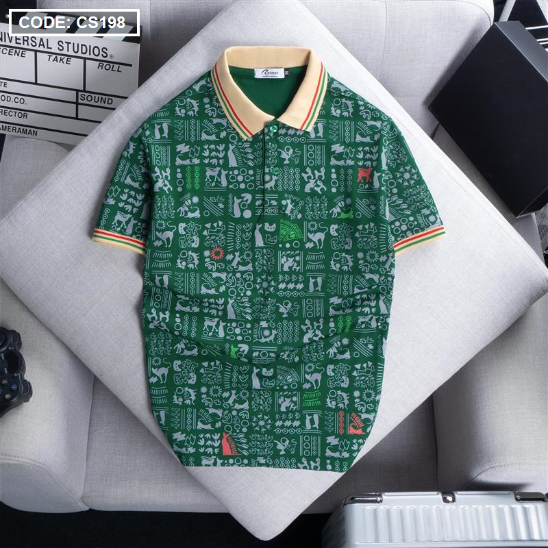 Áo Thun Nam Cổ Bẻ In Hoạ Tiết Viền Bo Màu (Có size 3x)