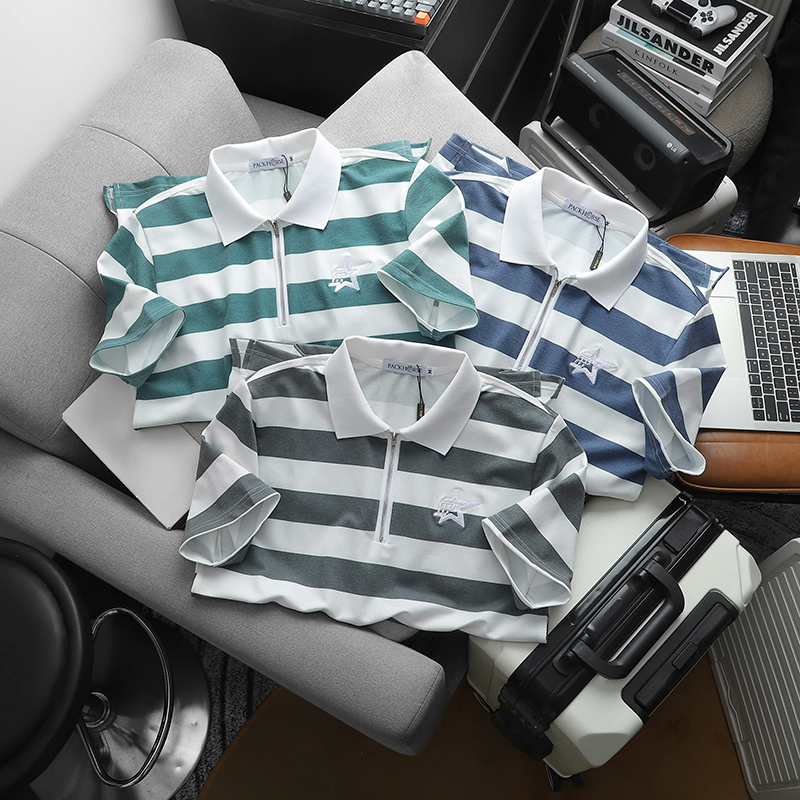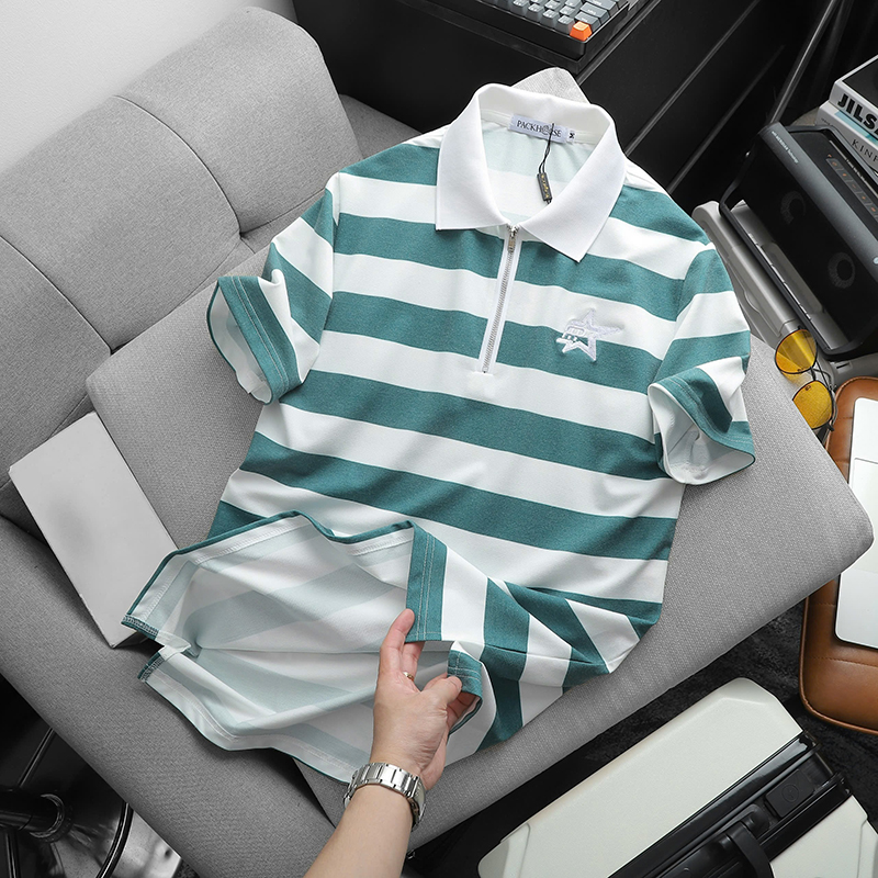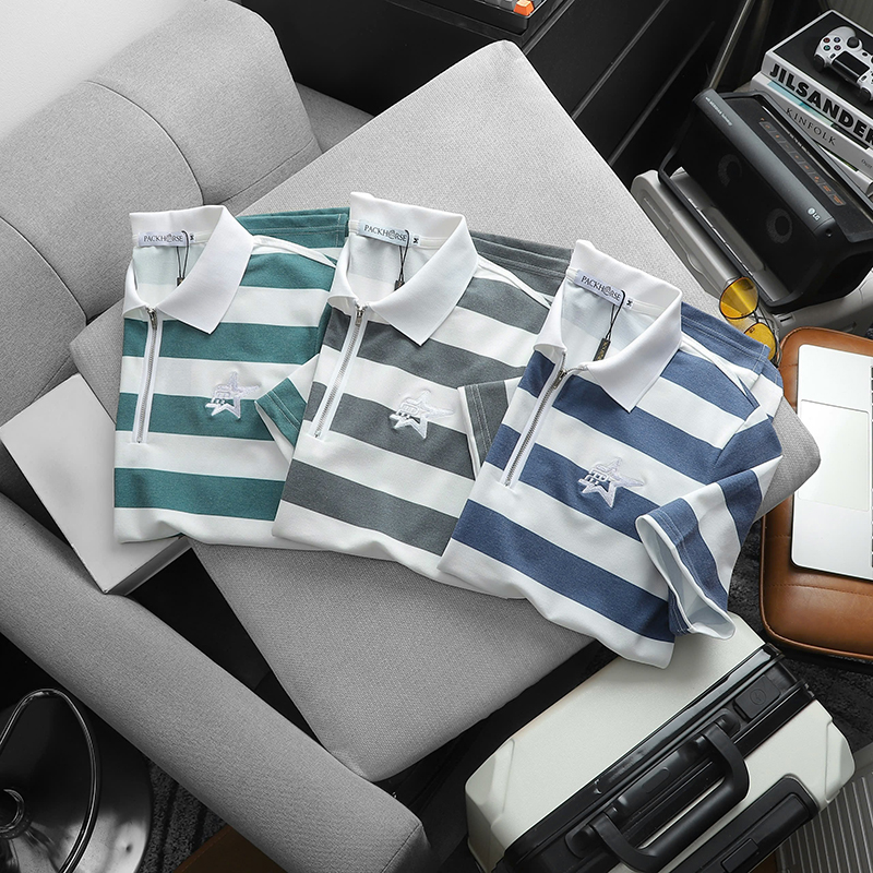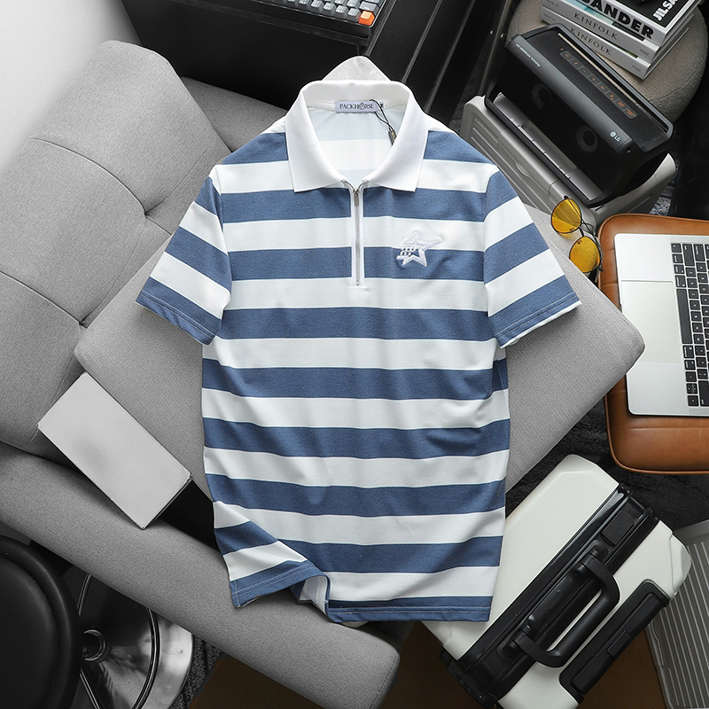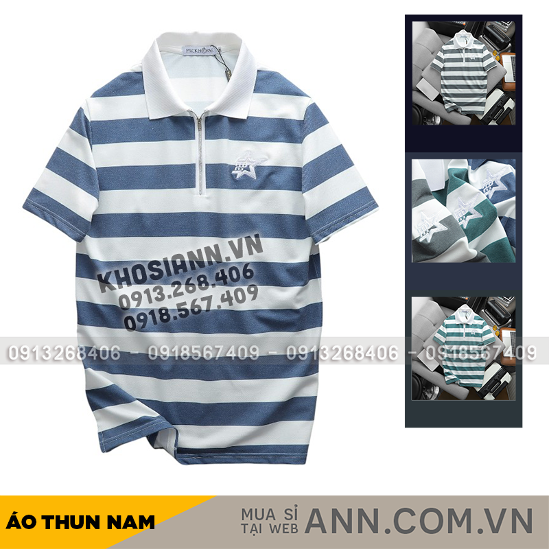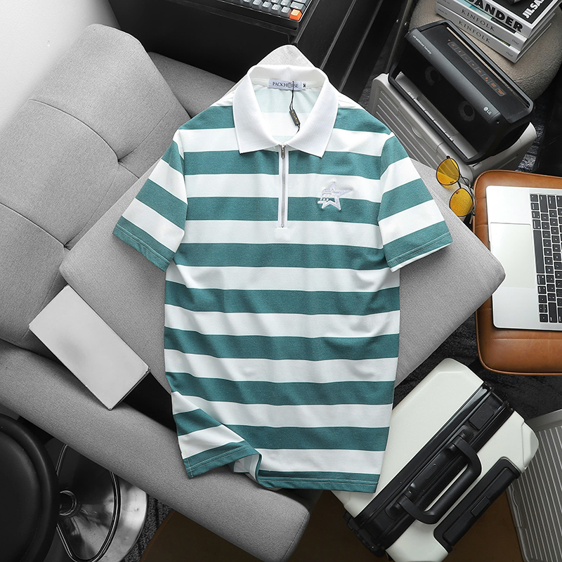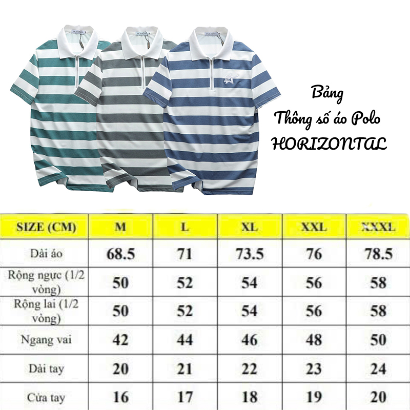 Giá sỉ áo Thun Nam Cổ Bẻ Pack Horse Sọc Ngang Thêu Logo trước Ngực (Có Size 3X)