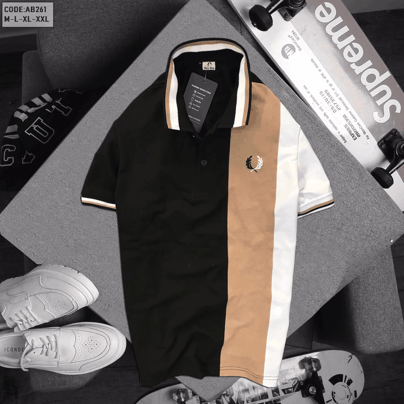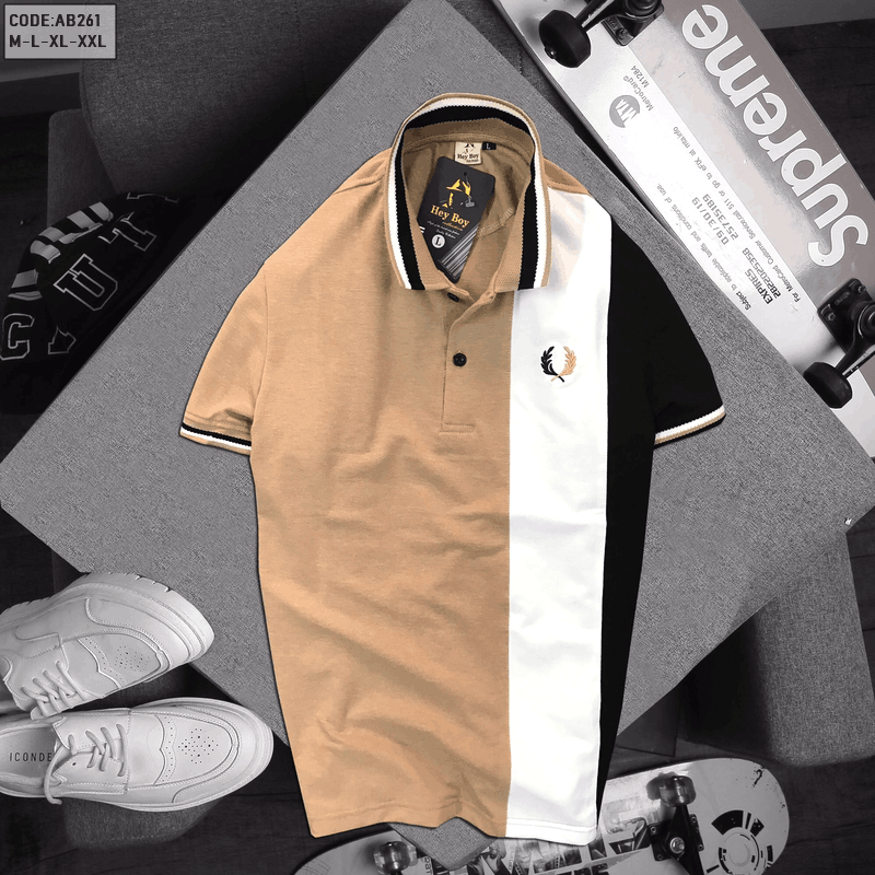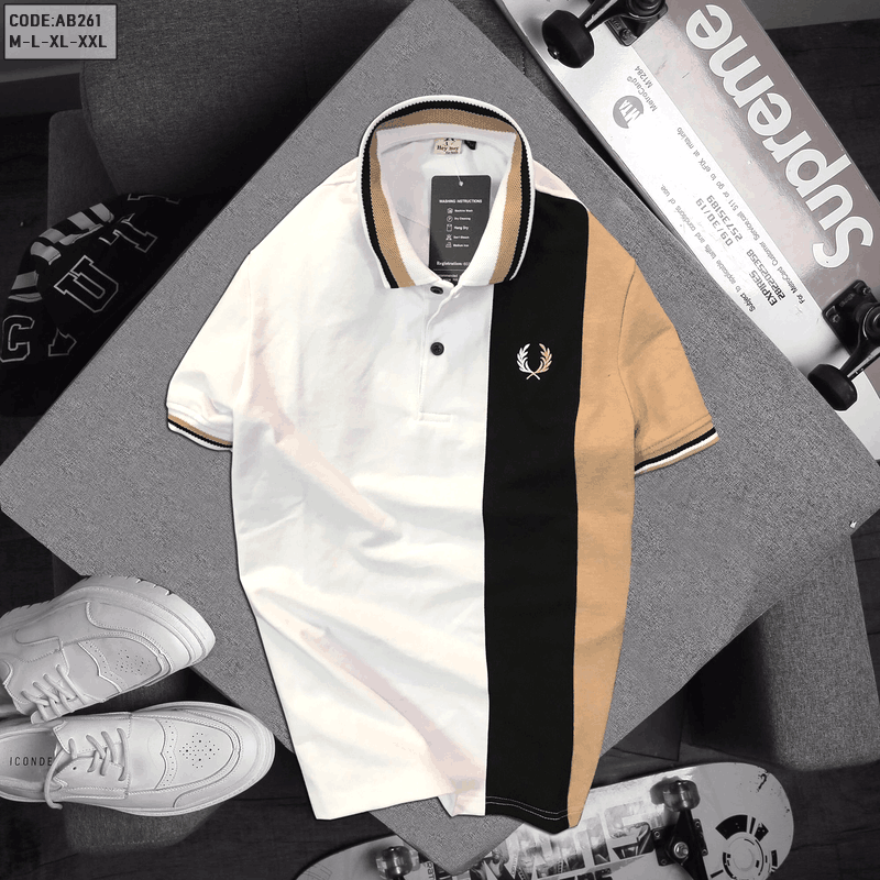 Áo Thun Nam Có Cổ Thêu Hình Bông Lúa