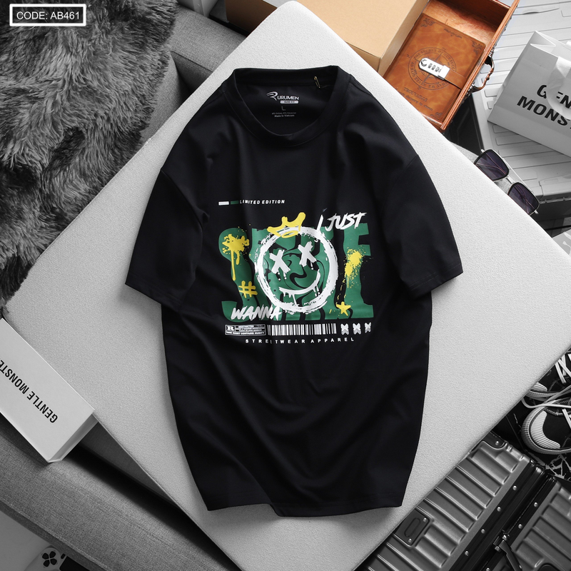 Giá sỉ áo Thun Nam Cổ Tròn Rurumen Màu Đen In Icoin Marshmello Big Size