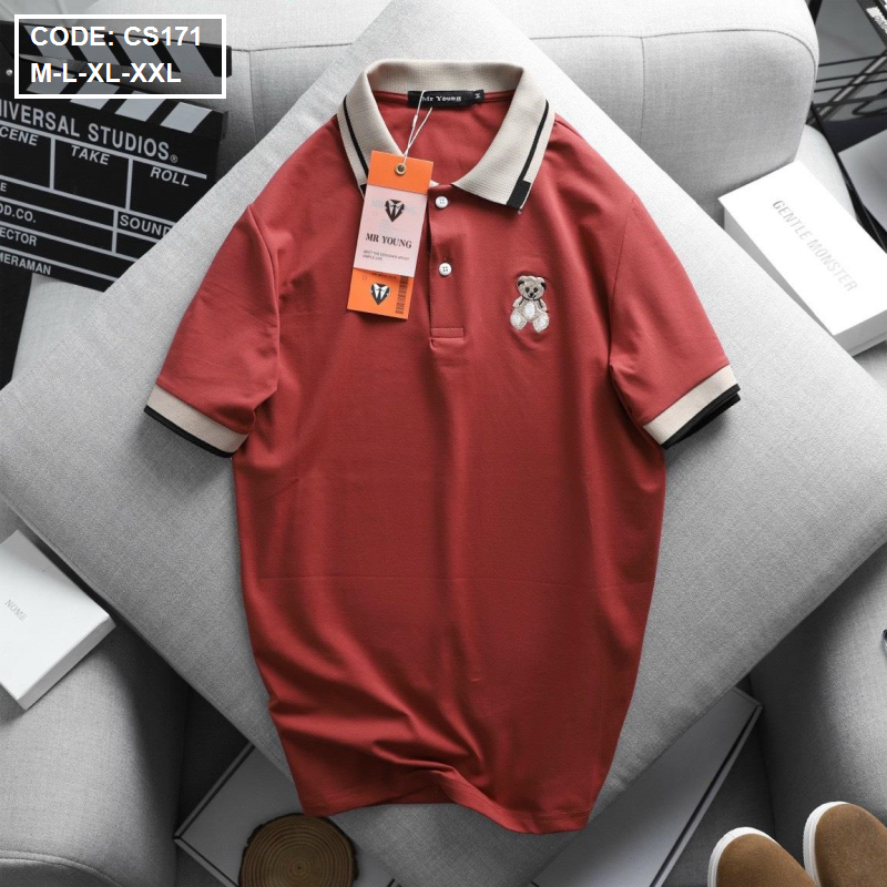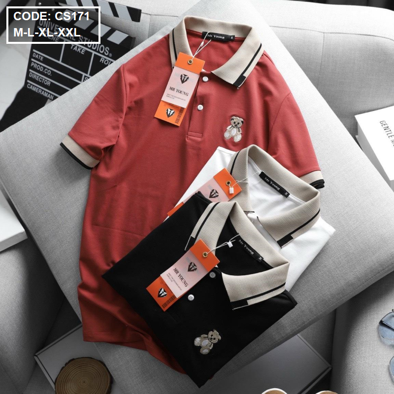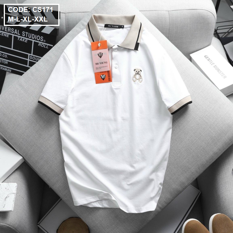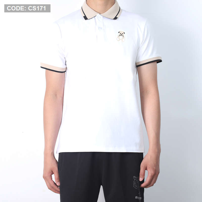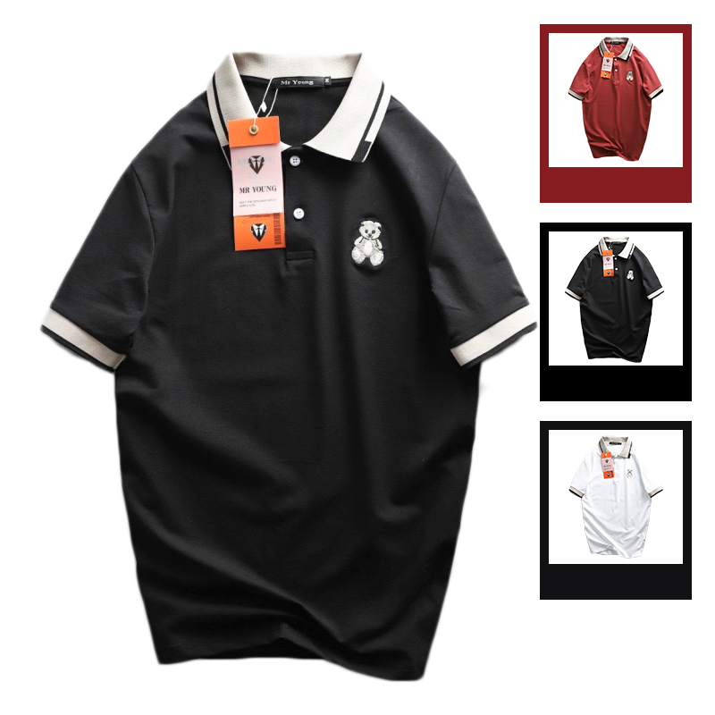Giá sỉ áo Thun Nam Cotton Có Cổ Thêu Gấu Trẻ Trung
