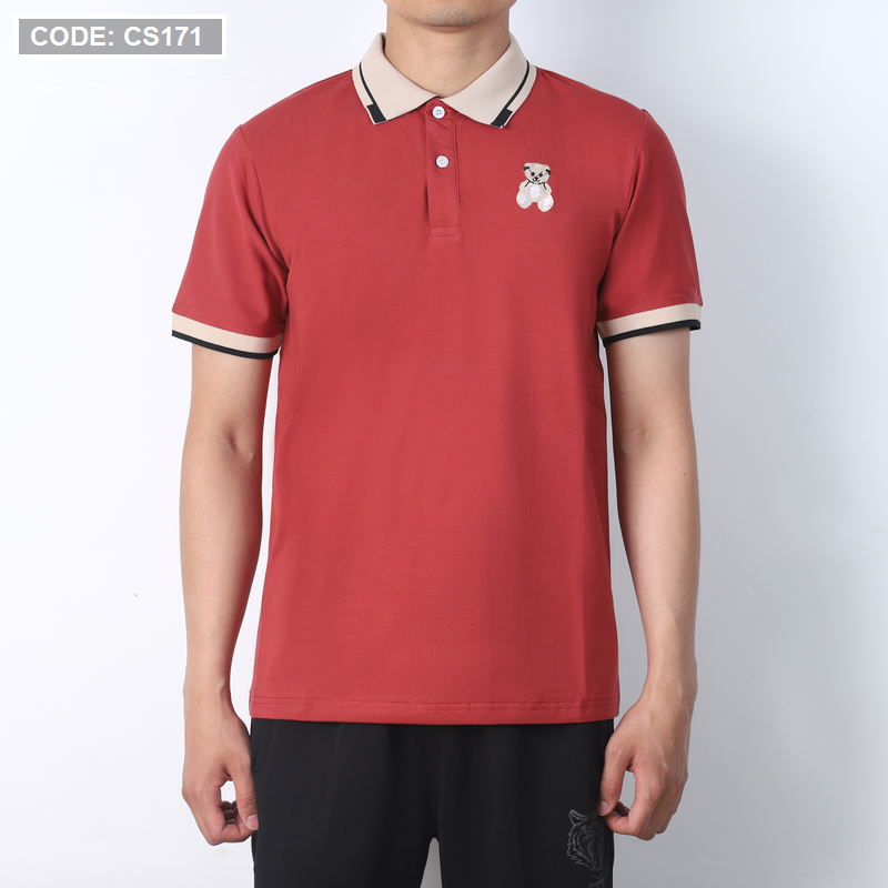Áo Thun Nam Cotton Có Cổ Thêu Gấu Trẻ Trung