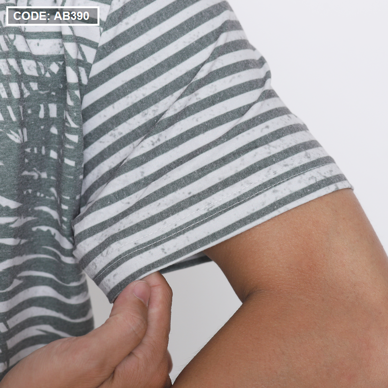 Áo Thun Nam Sọc Cổ Tròn In Họa Tiết Lá Dừa