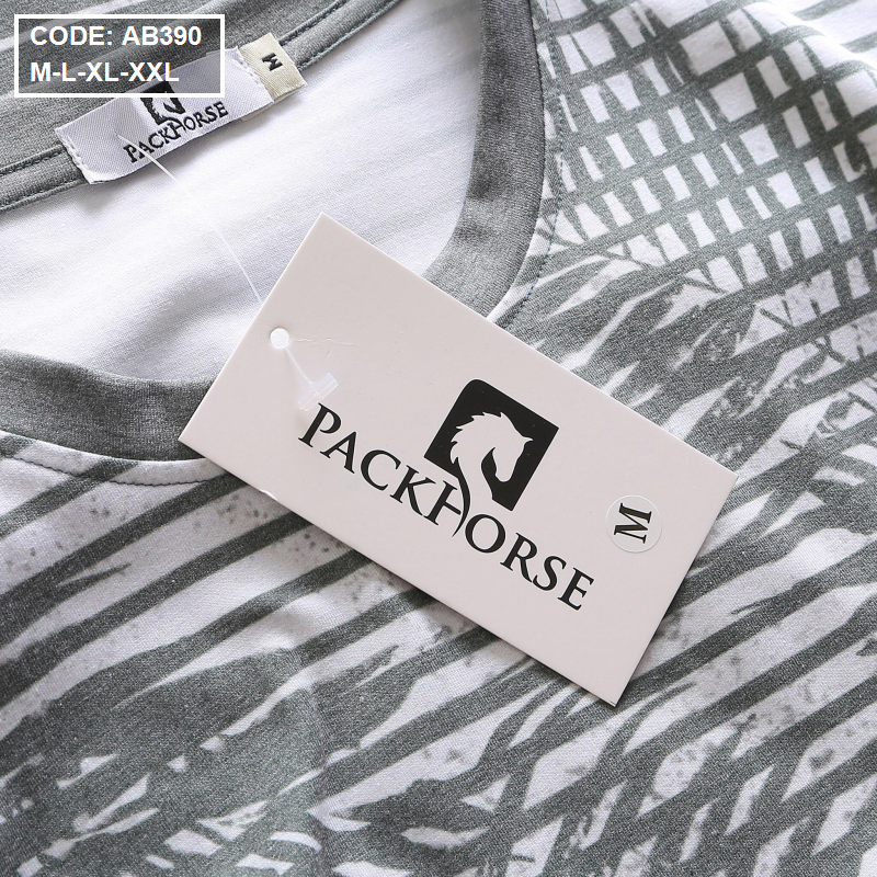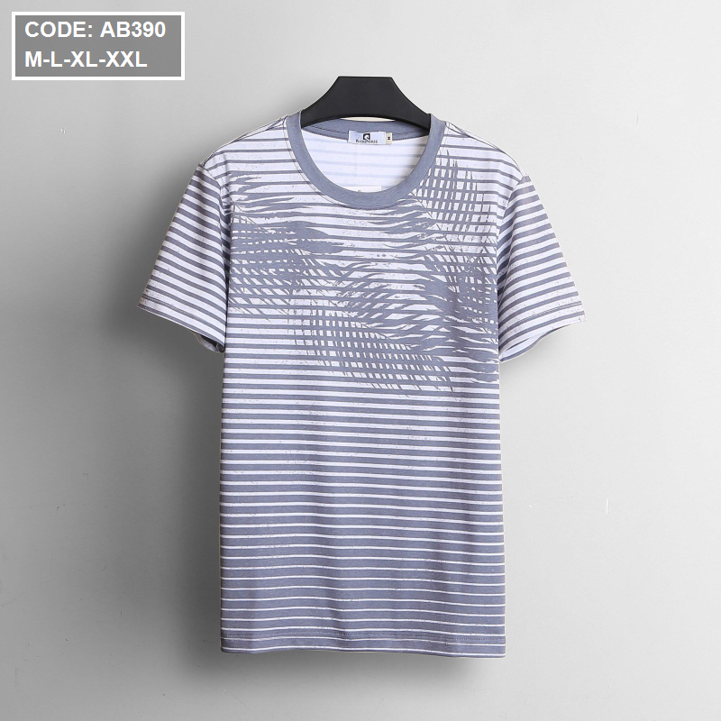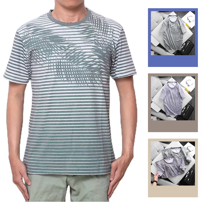 Giá sỉ áo Thun Nam Sọc Cổ Tròn In Họa Tiết Lá Dừa