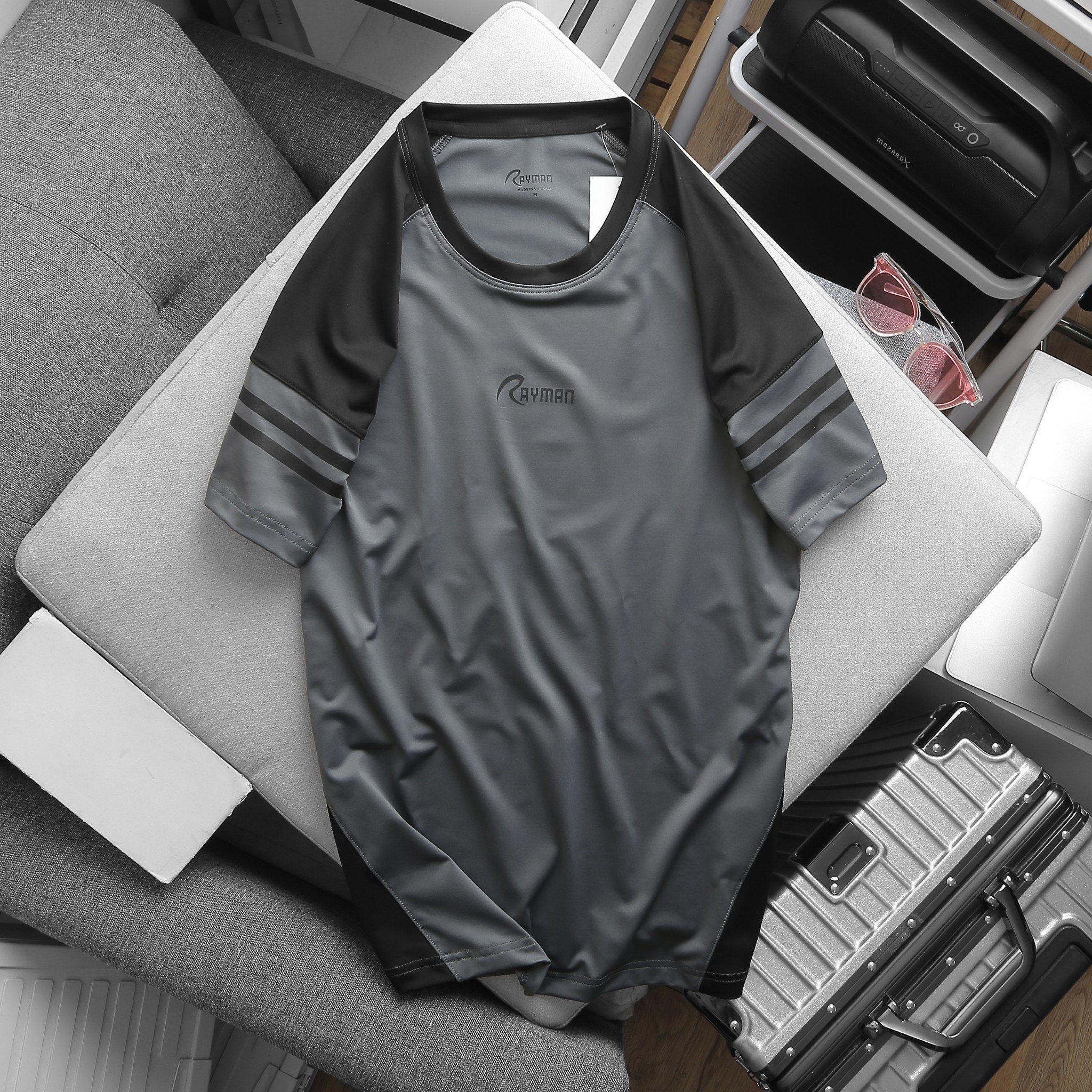 Giá sỉ áo Thun Nam Thể Thao Cổ Tròn Phối Tay Màu In Logo RayMan (Có size 3x)