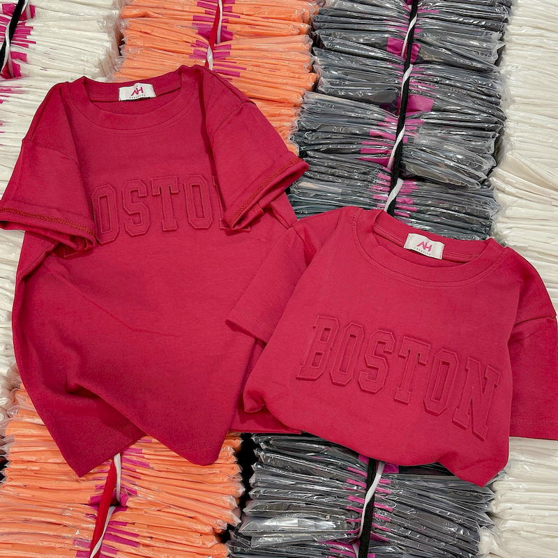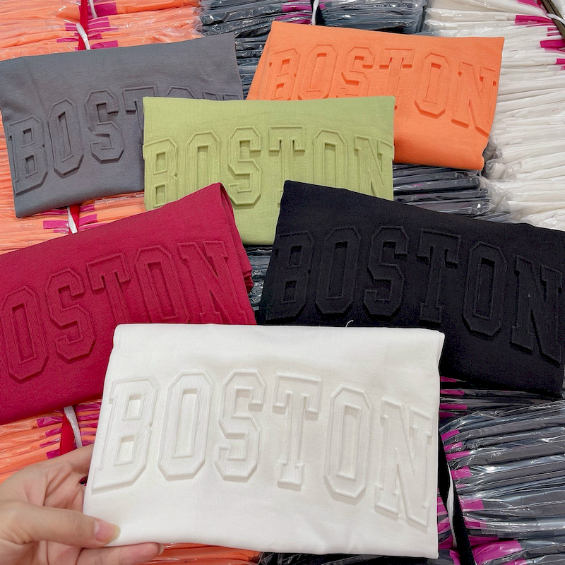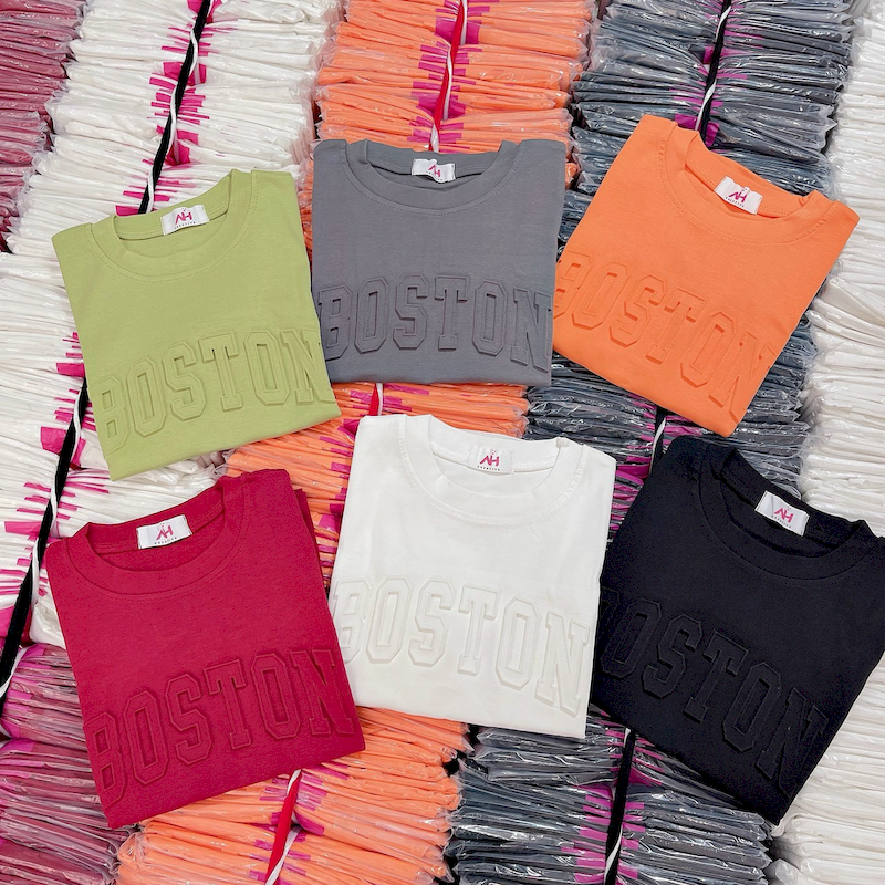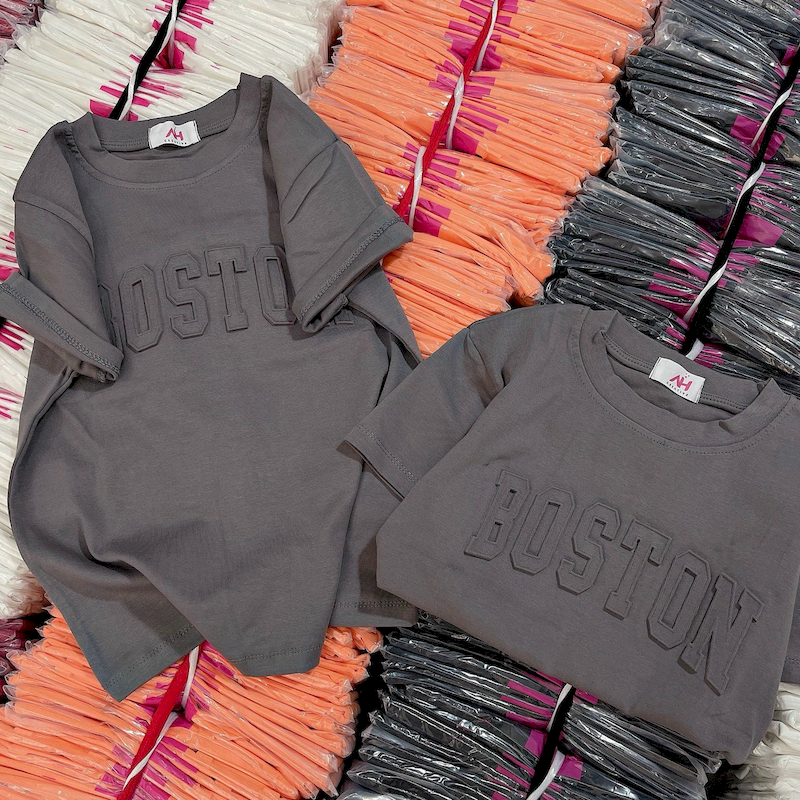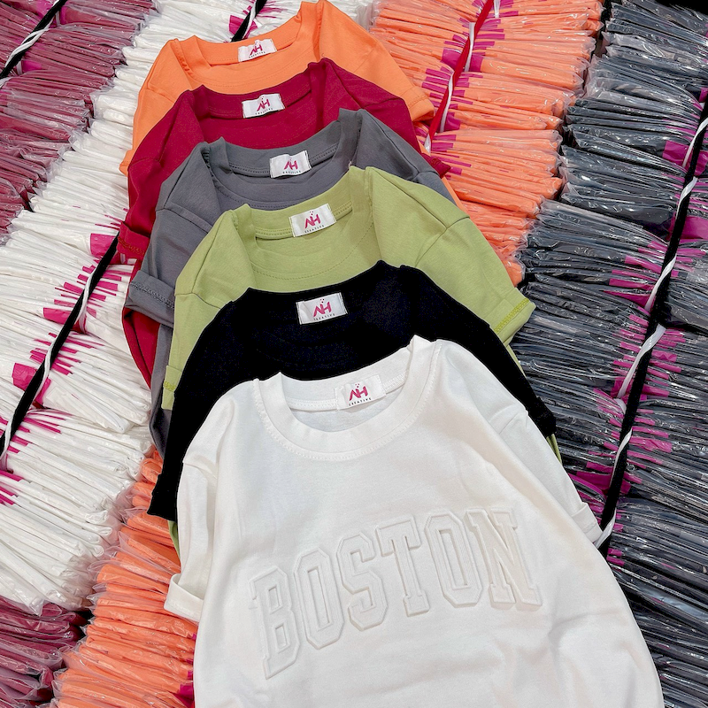 Giá sỉ áo Thun Nữ Cổ Tròn Baby Tee In Dập Nổi Chữ BOSTON Mạc AH787