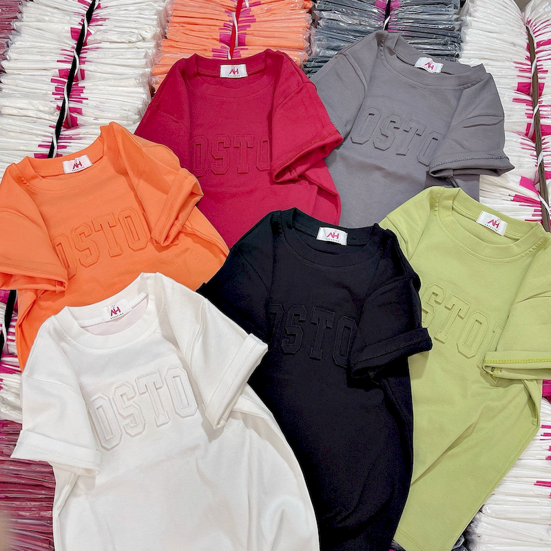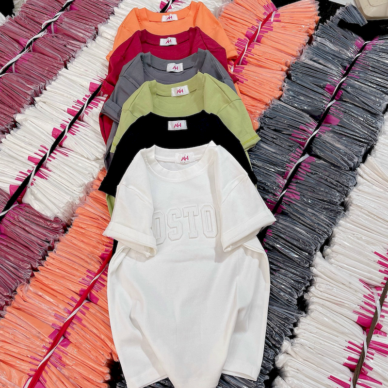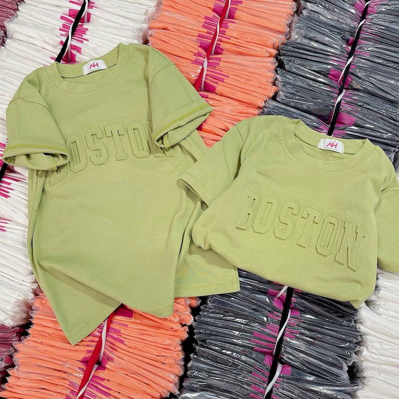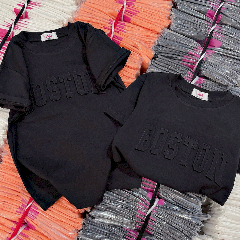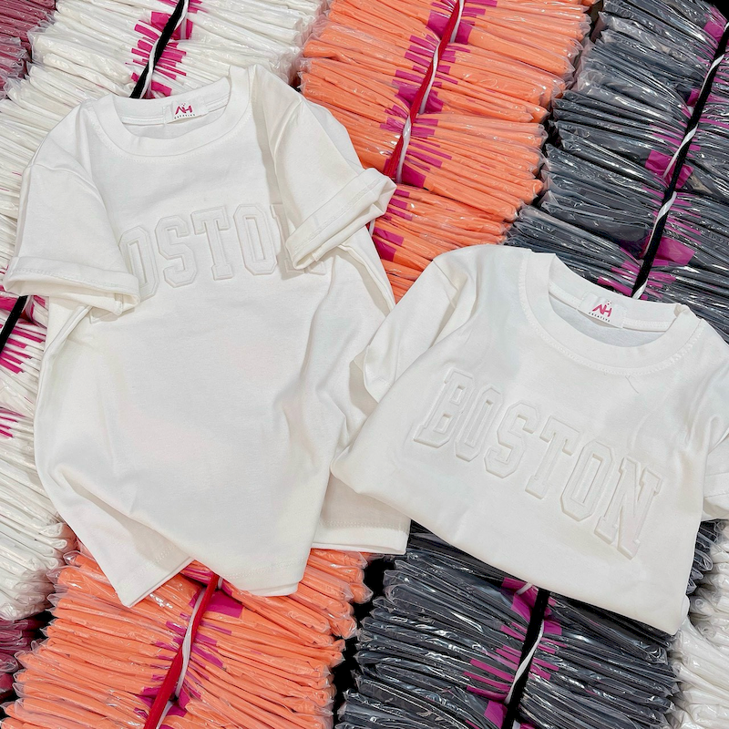 Giá sỉ áo Thun Nữ Cổ Tròn Baby Tee In Dập Nổi Chữ BOSTON Mạc AH787