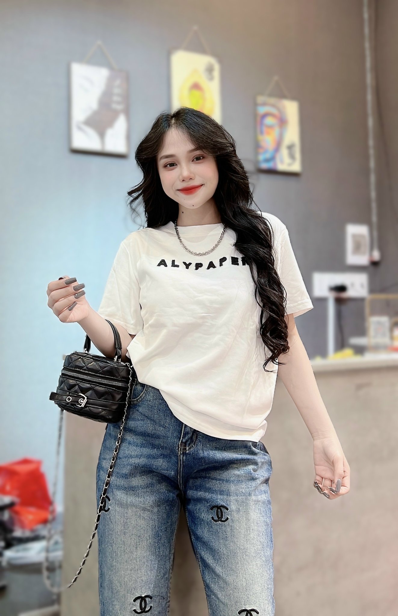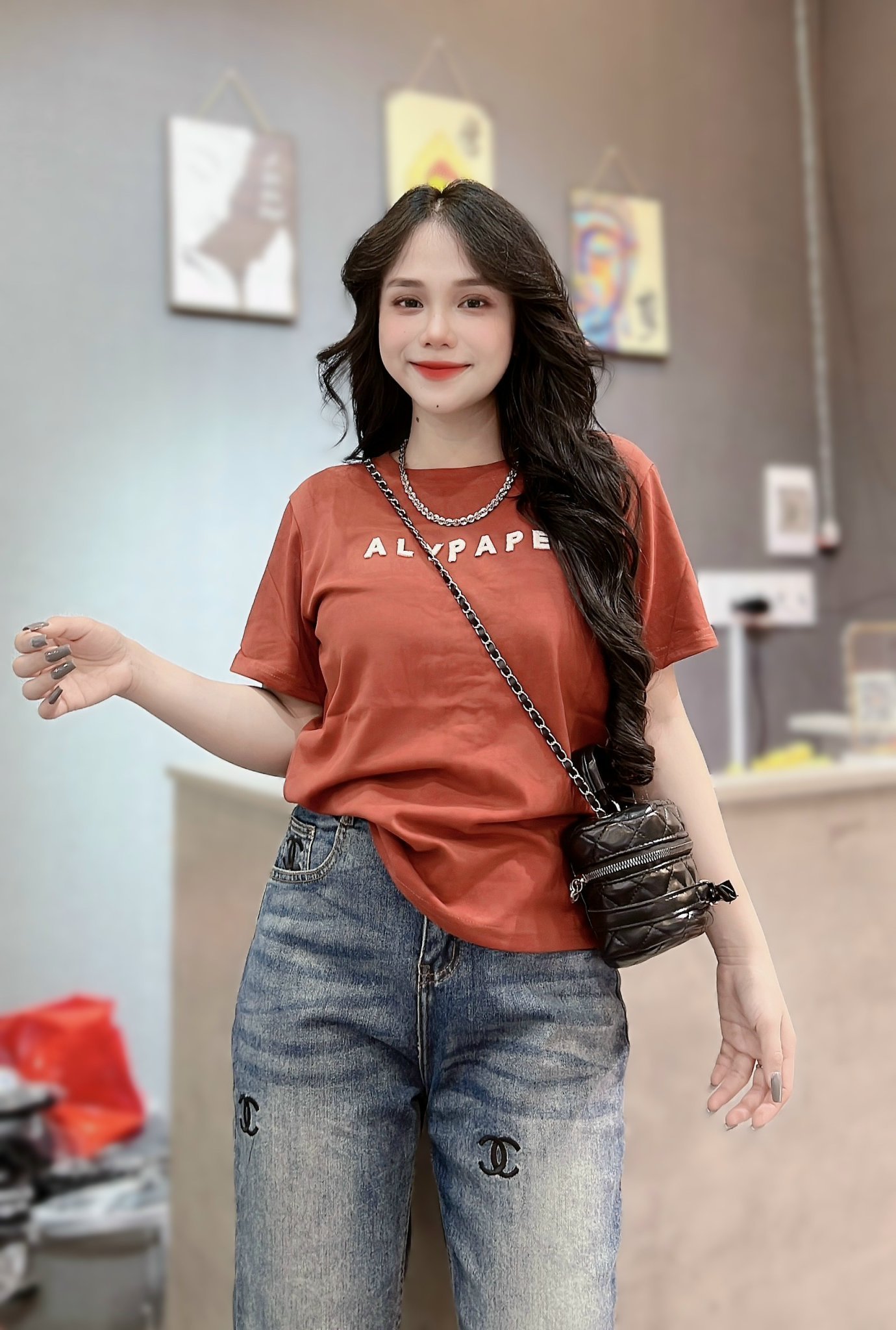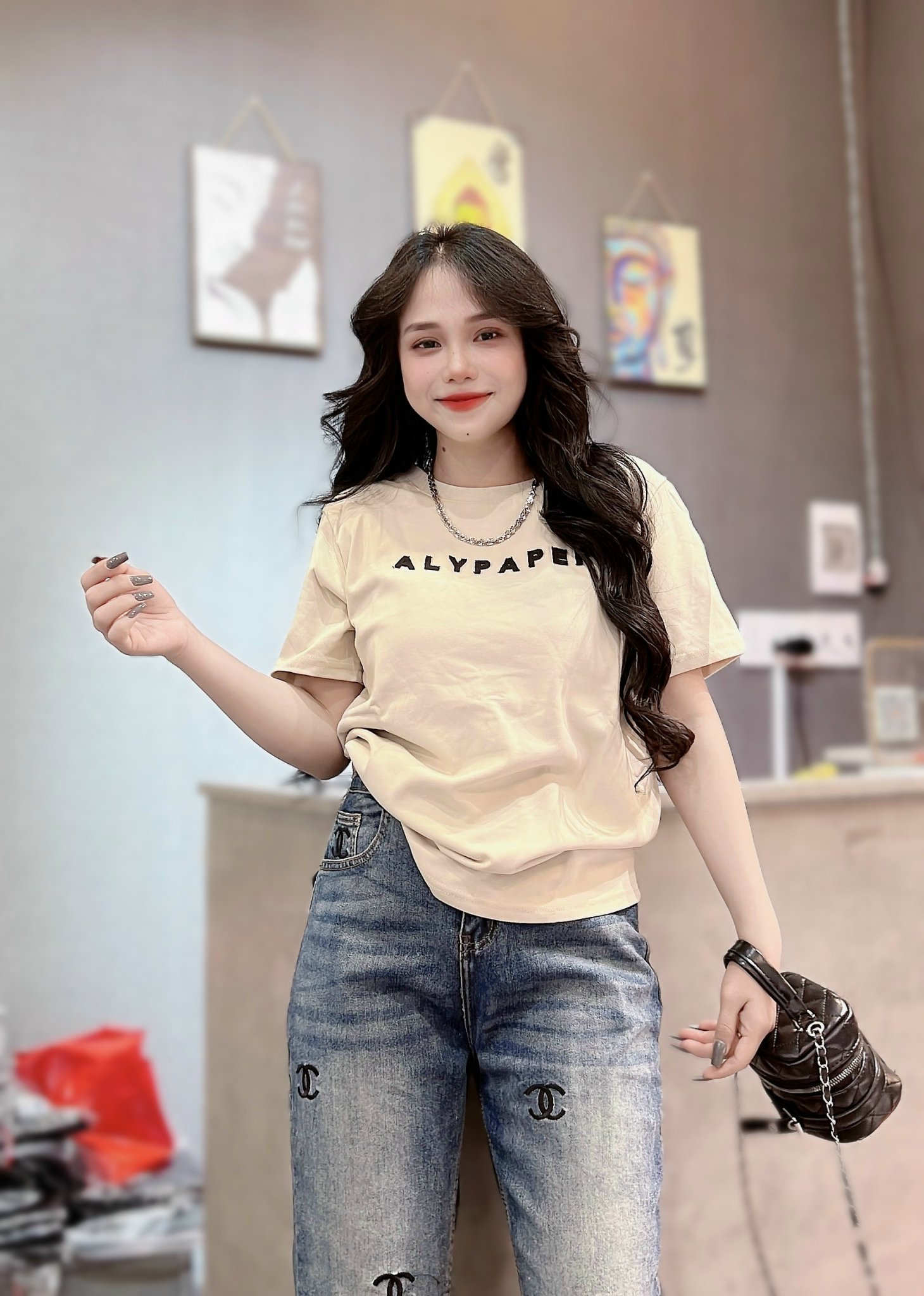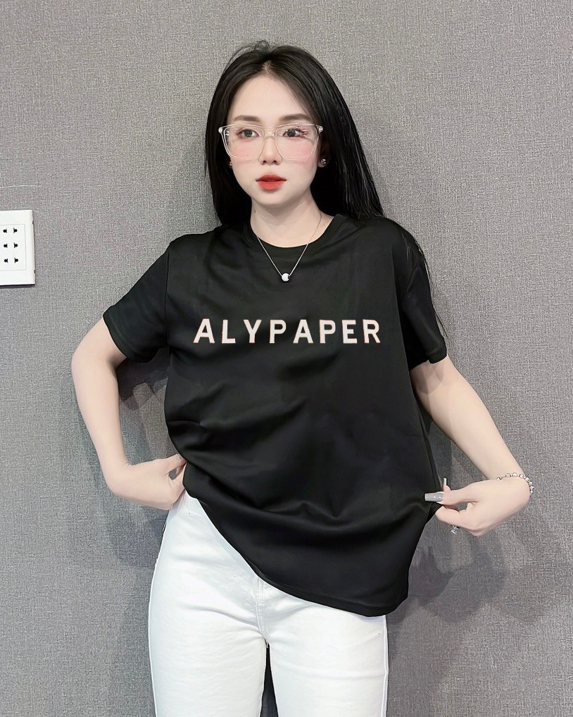 Giá sỉ áo Thun Nữ Cổ Tròn Thuê Chữ ALYPAPER form vừa size M(40-60kg)