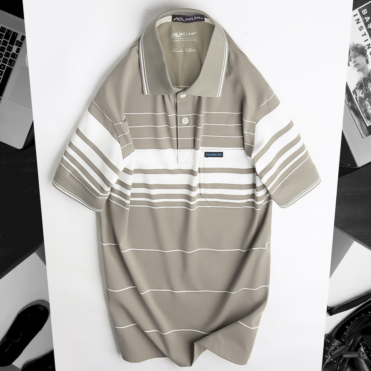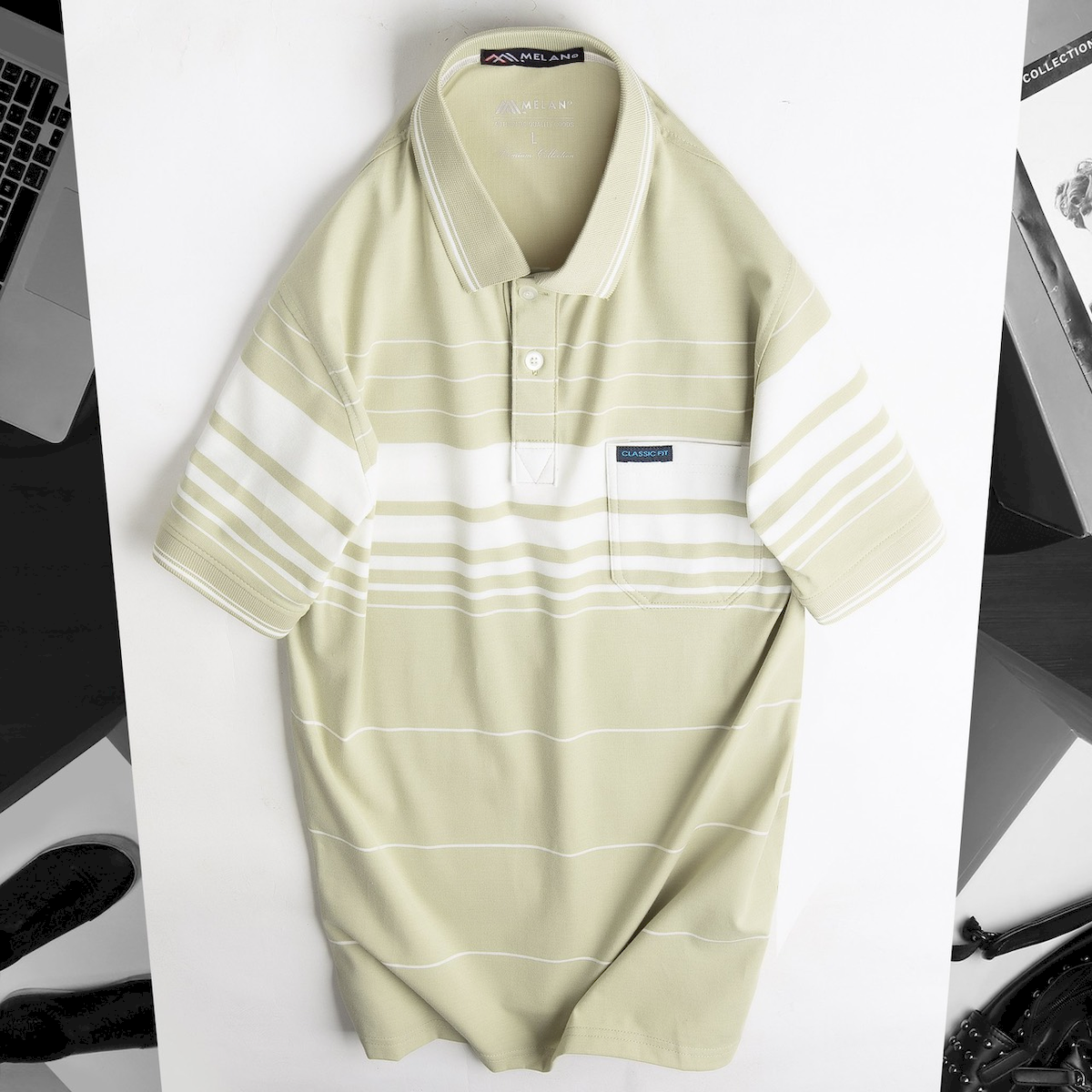 Áo Thun Sọc Nam Trung Niên Phối Sọc Nhuyễn Có Túi Thun Cotton là một sự lựa chọn hoàn hảo cho các quý ông trung niên. Áo được thiết kế với phong cách sọc đơn giản và tinh tế, phối với họa tiết sọc nhuyễn độc đáo, mang lại cho bạn một phong cách trẻ trung và lịch lãm.