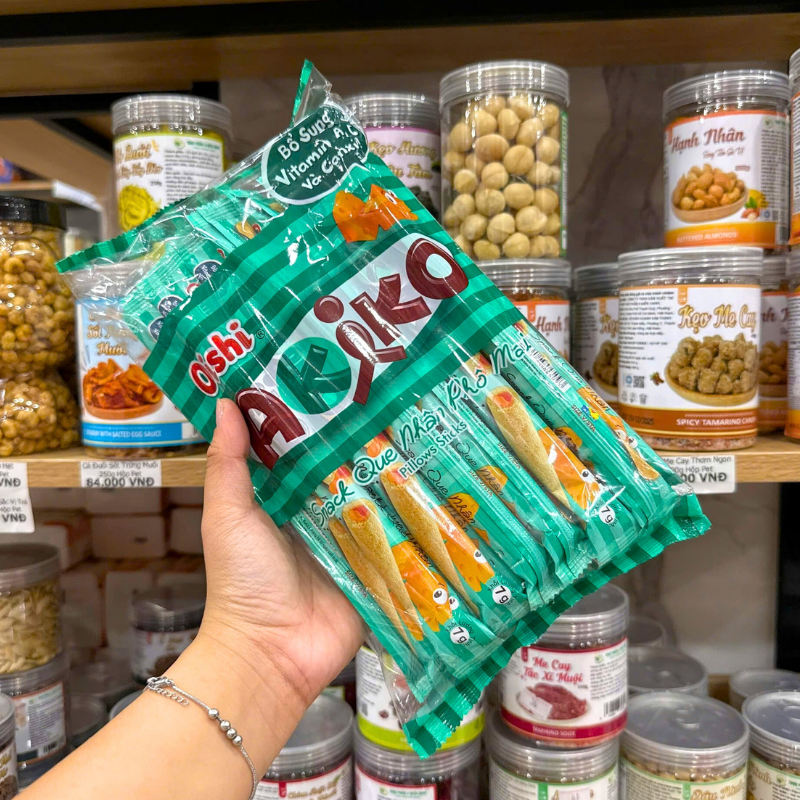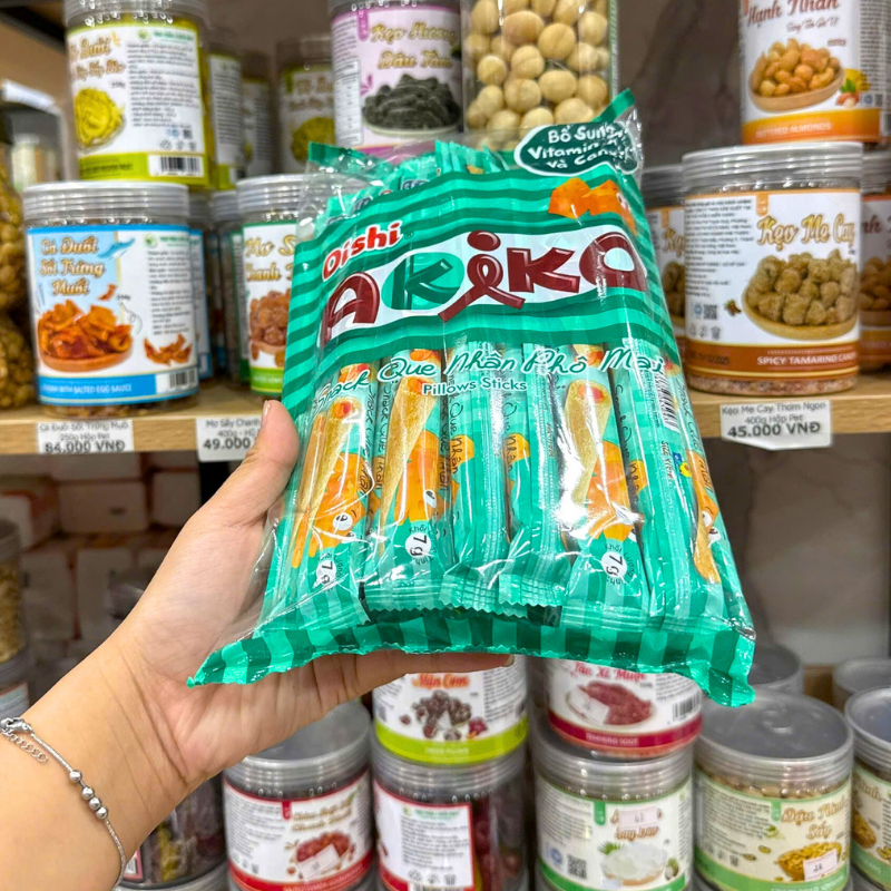 Giá sỉ bánh Que Kem OISHI AKIKO Nhân Phô Mai 140g – Màu Xanh Rêu