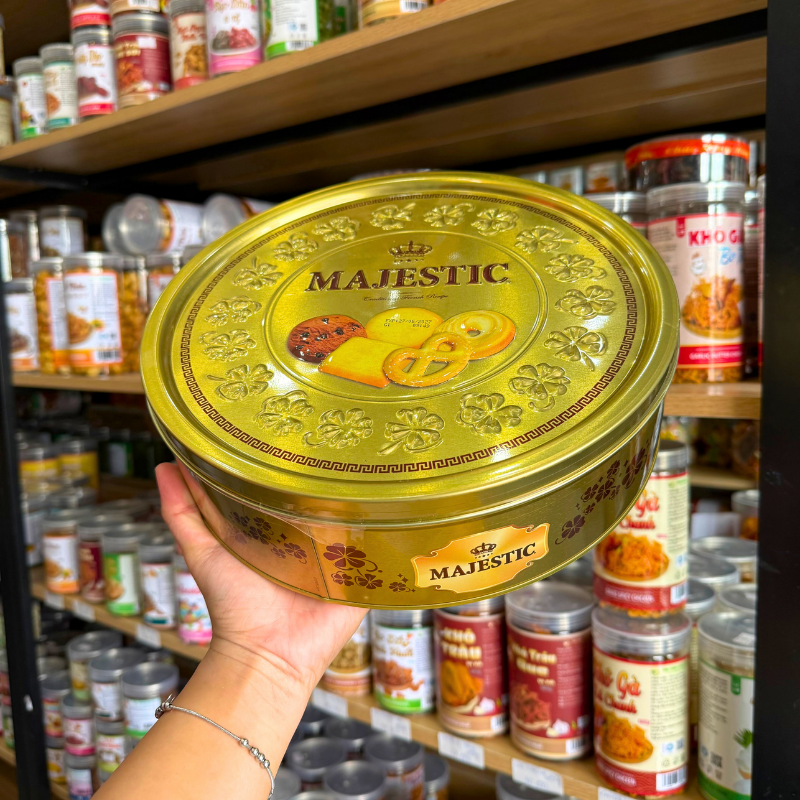 Giá sỉ bánh Quy Hộp Thiếc MAJESTIC Hộp Tròn Đồng Tiền Vàng 382g