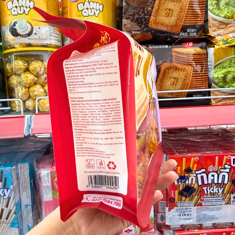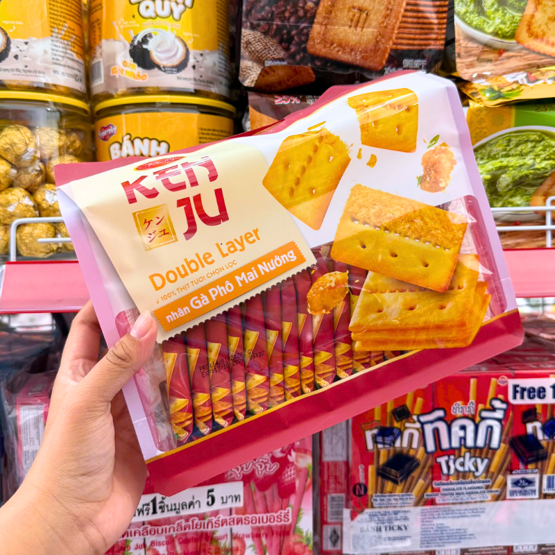 Giá sỉ bánh Quy Kenju 2 Lớp Nhân Gà Nướng Phô Mai 216g – Túi 16 Gói