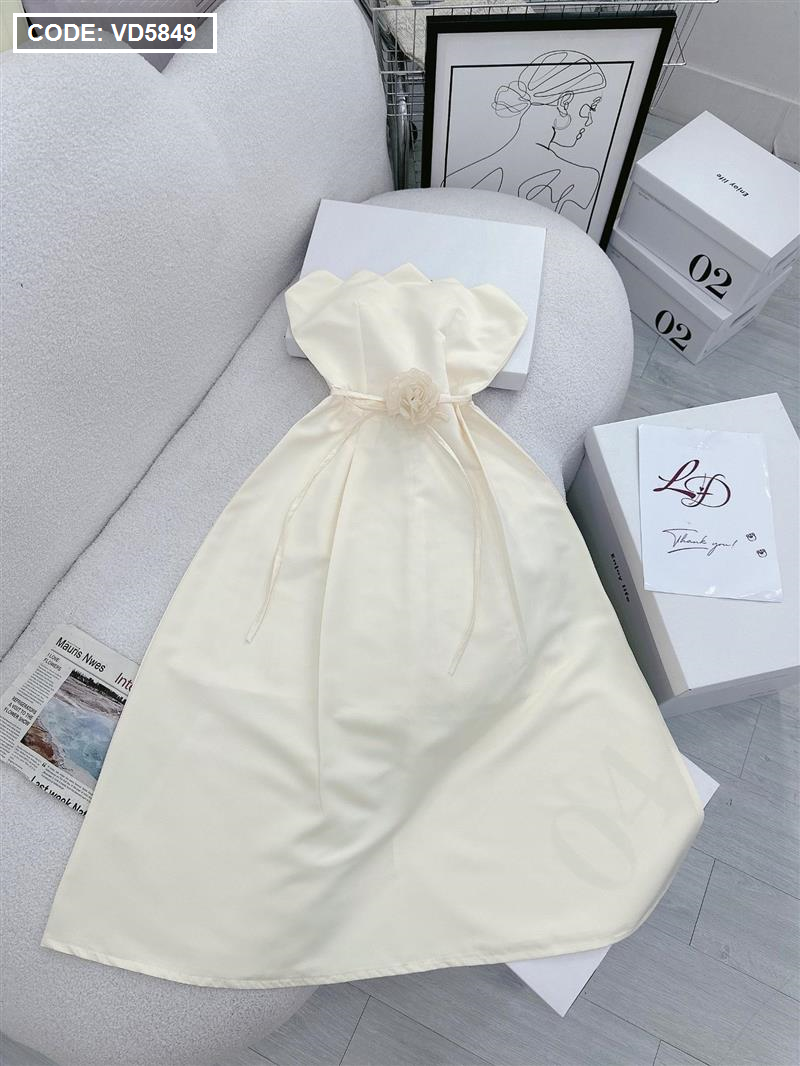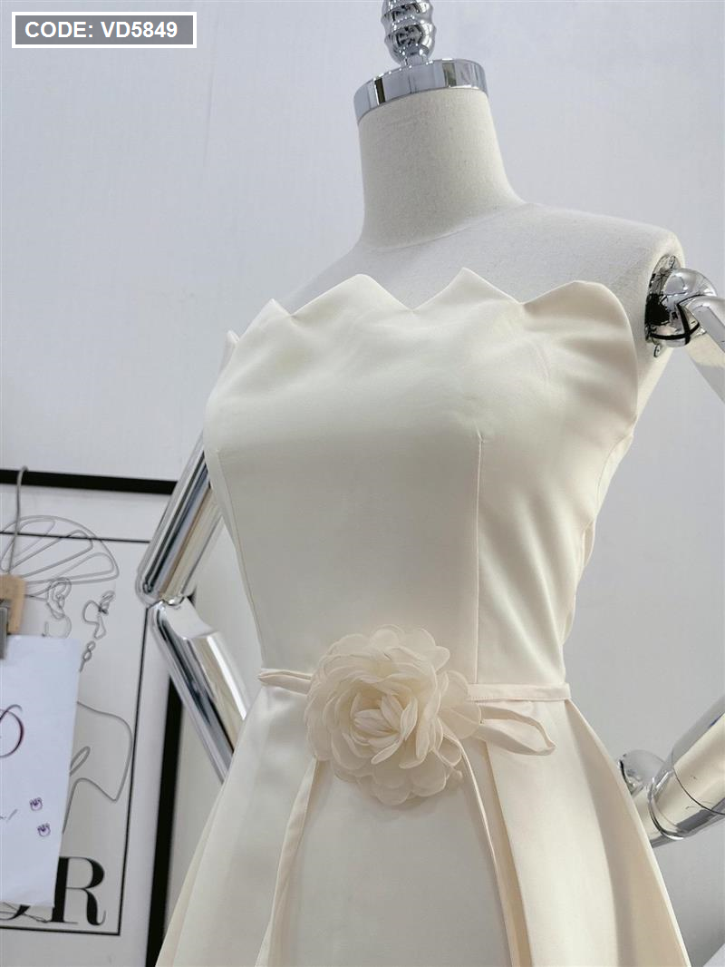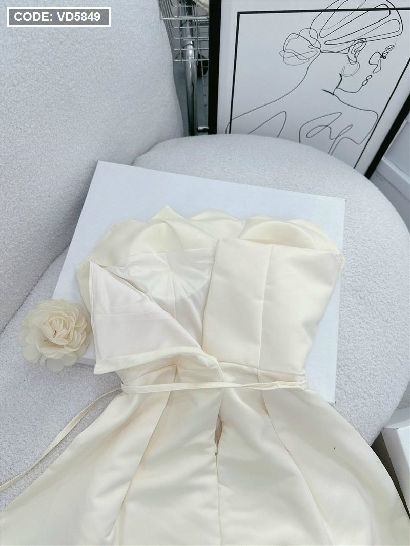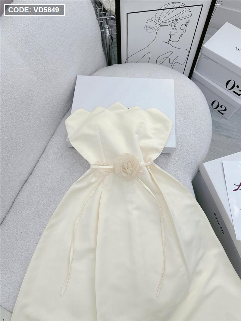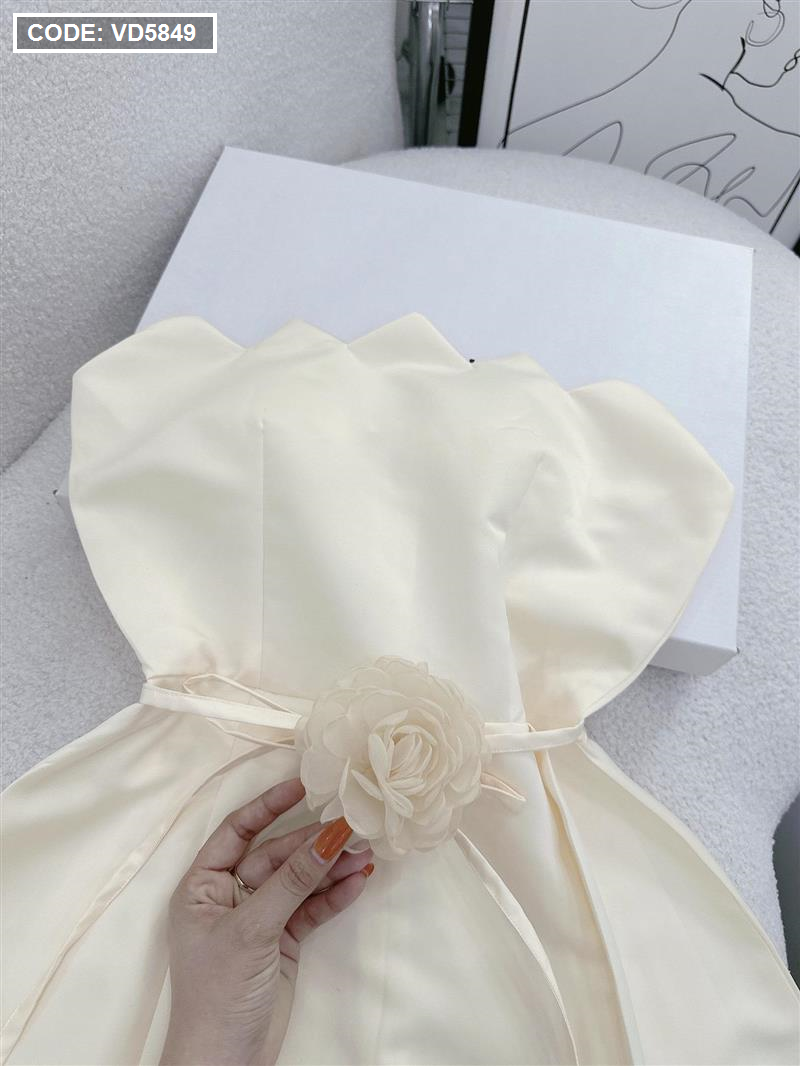 Giá sỉ đầm phi kèm cúp ngực gợn sóng xoè kèm dây hoa