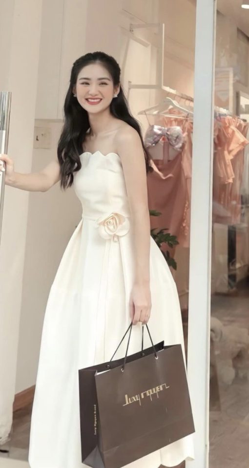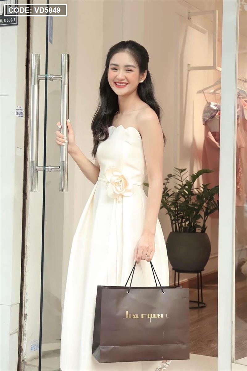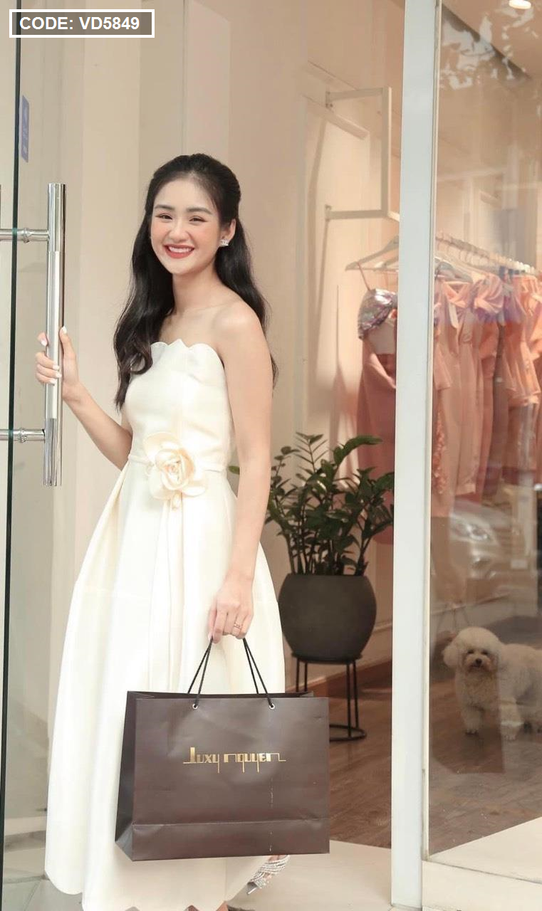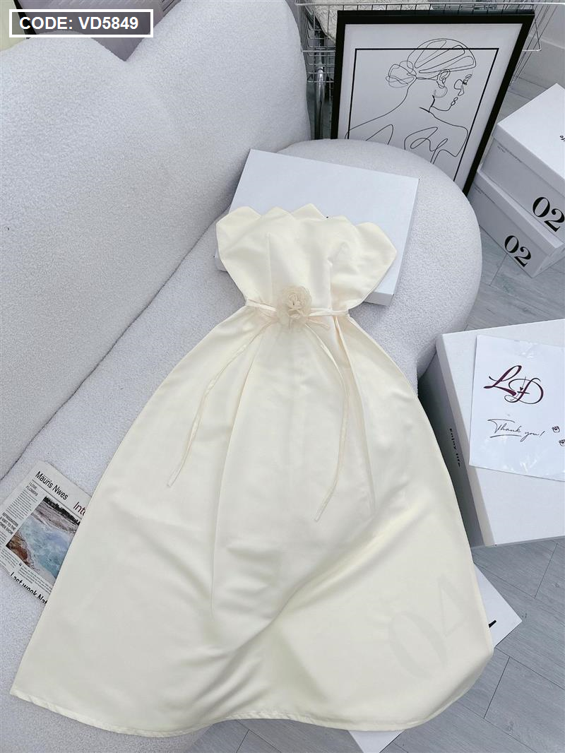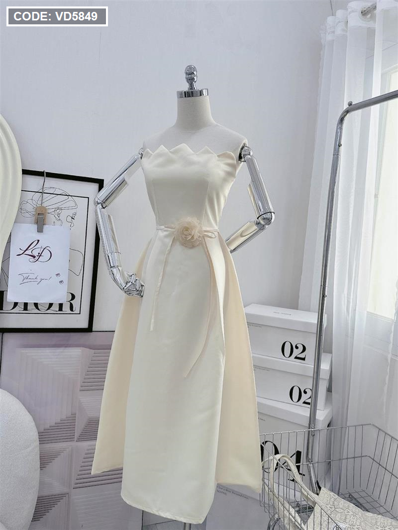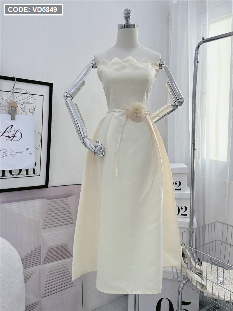 Giá sỉ đầm phi kèm cúp ngực gợn sóng xoè kèm dây hoa