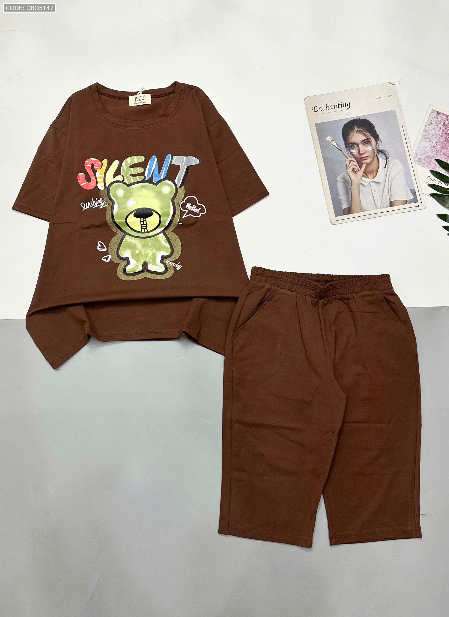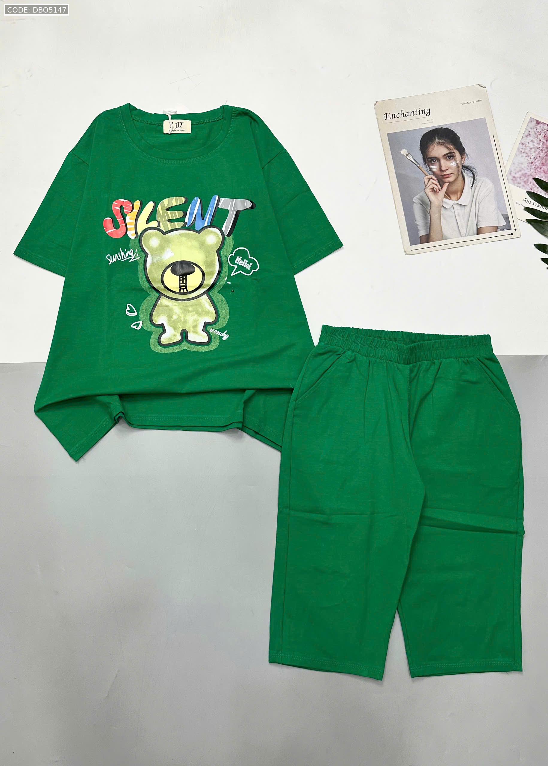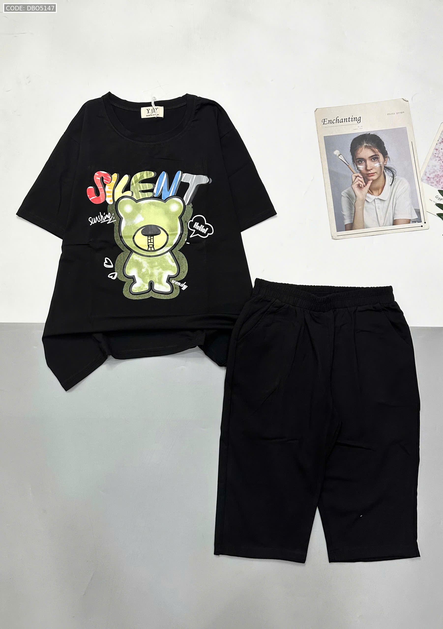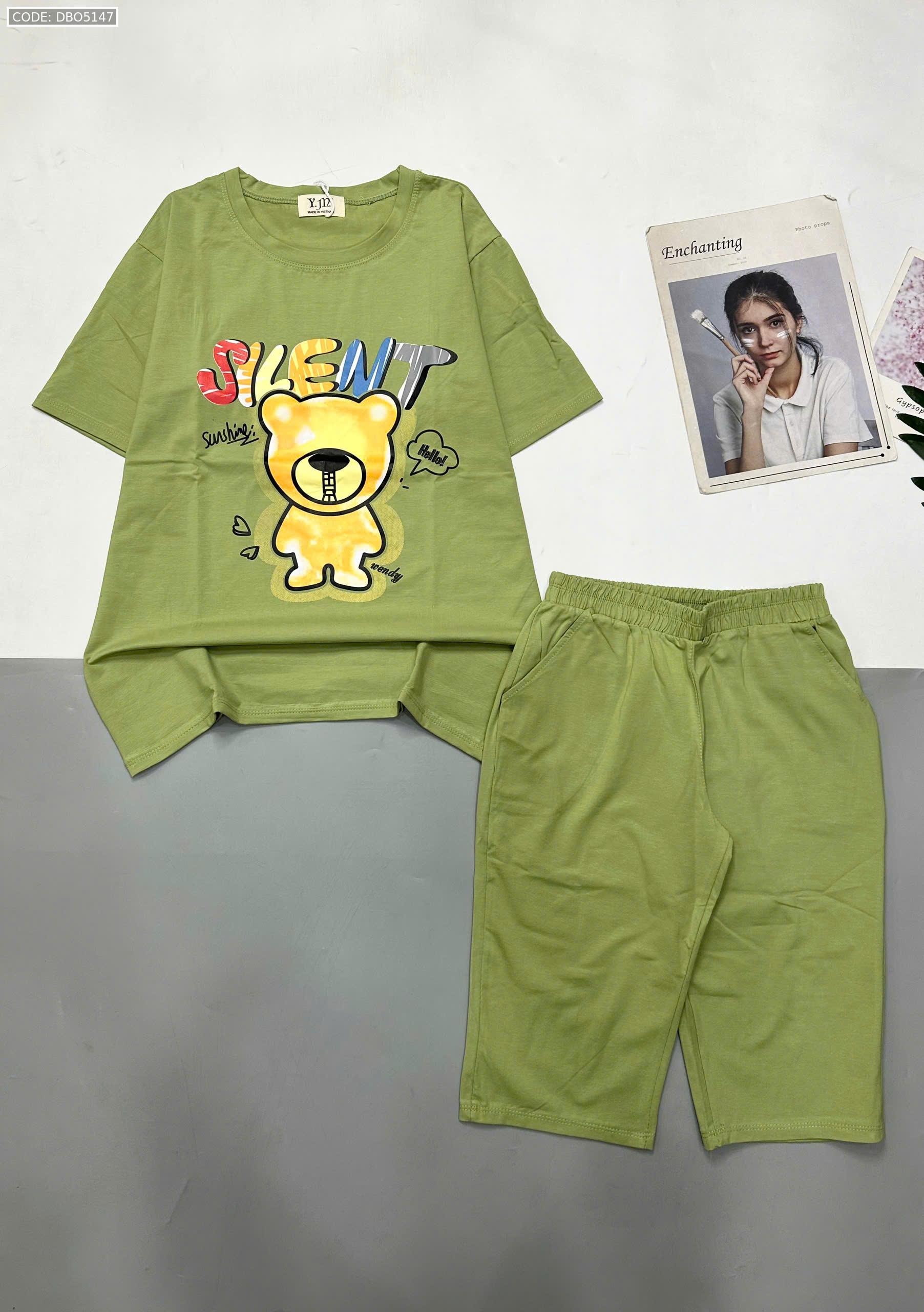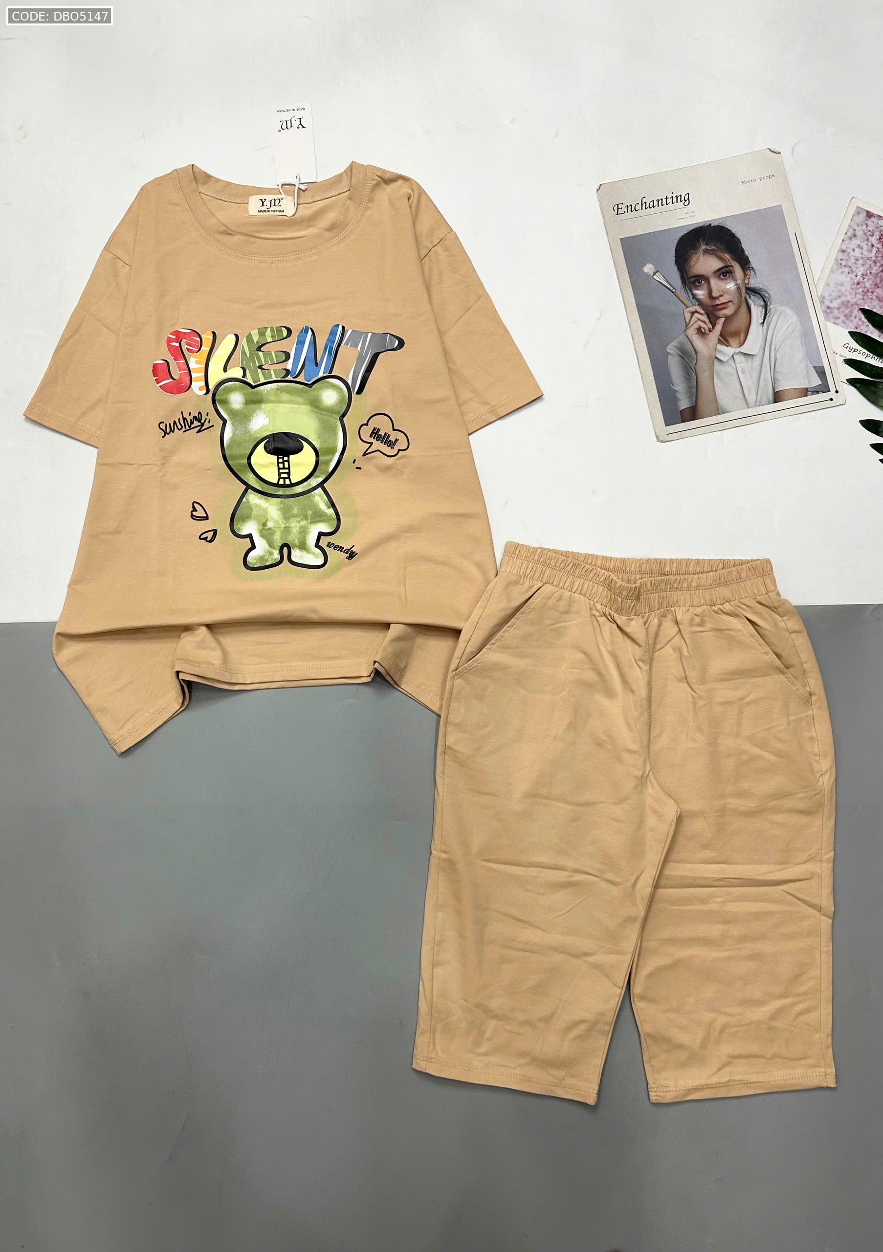 Giá sỉ đồ bộ áo thun quần lửng in hình gấu chữ