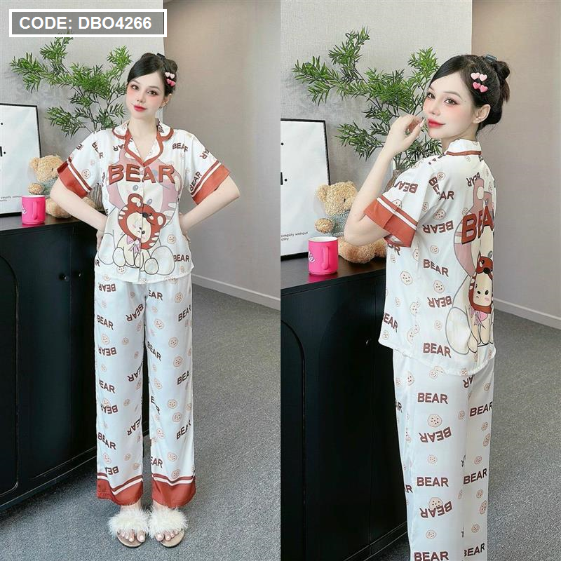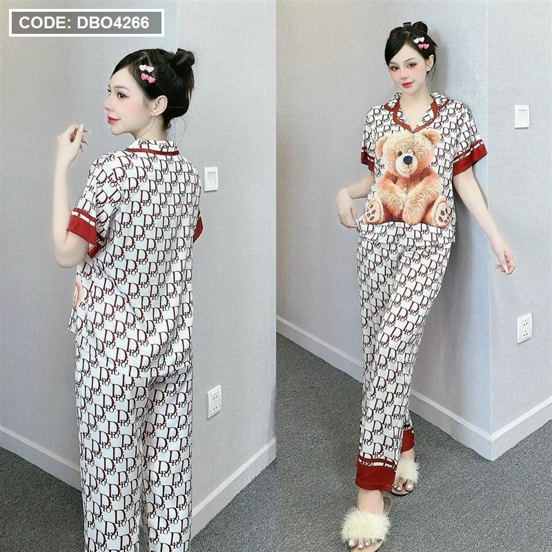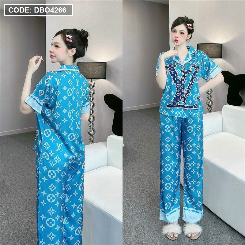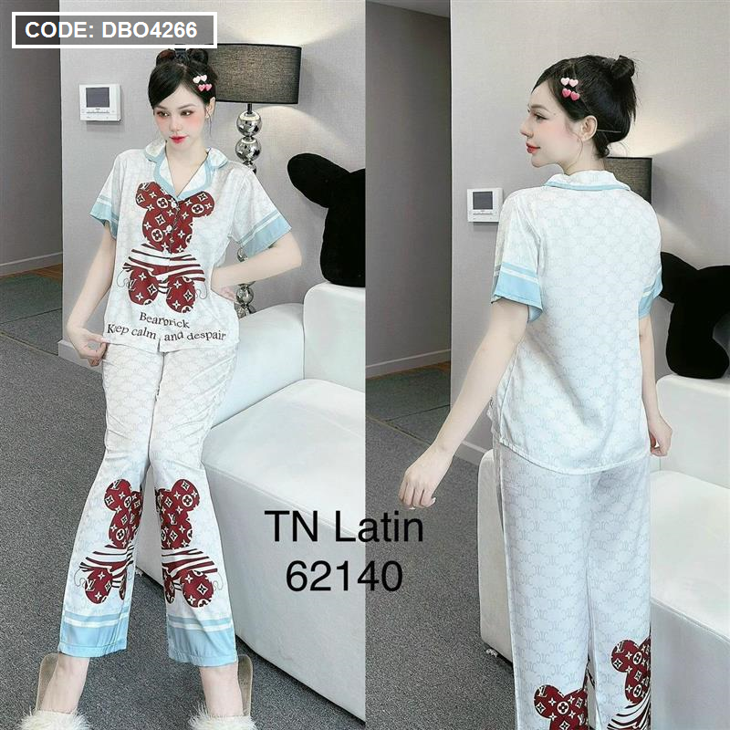 Đồ bộ latin mềm mịn quần dài tay ngắn cổ bẻ in hình
