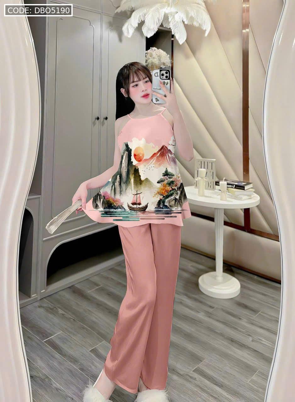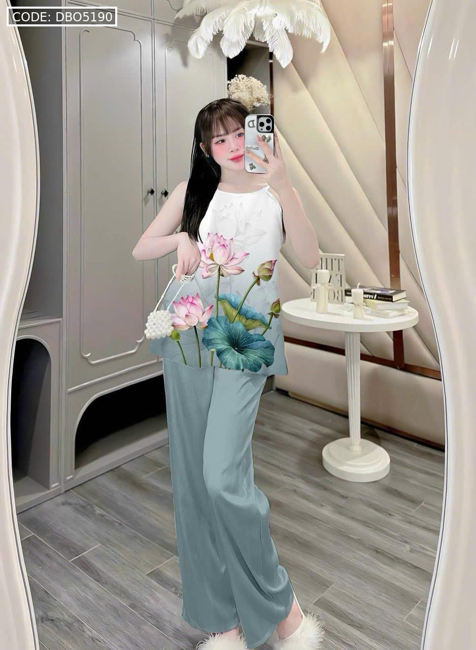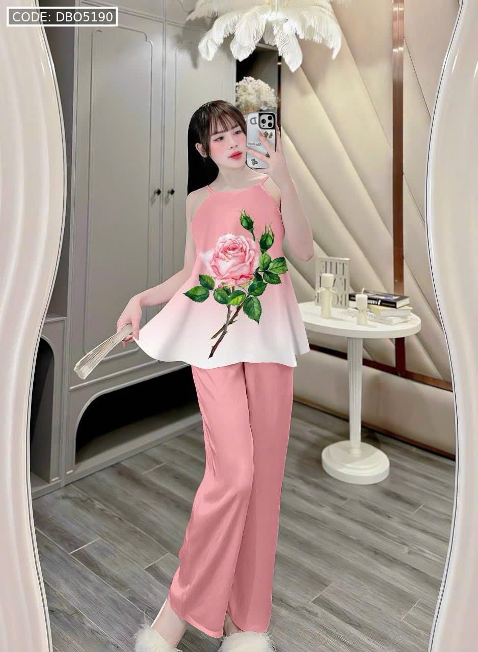 Giá sỉ đồ bộ mặc nhà siêu mát quần dài áo yếm dây nhiều bông lớn