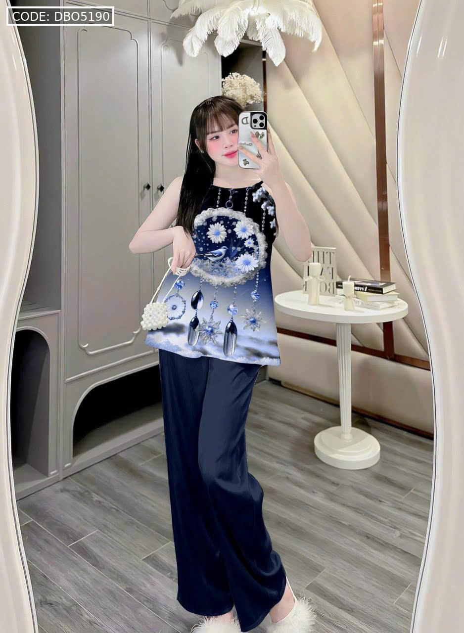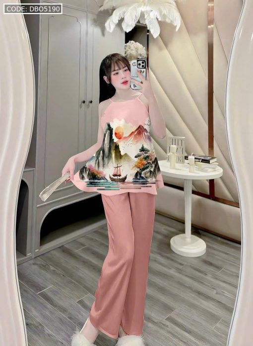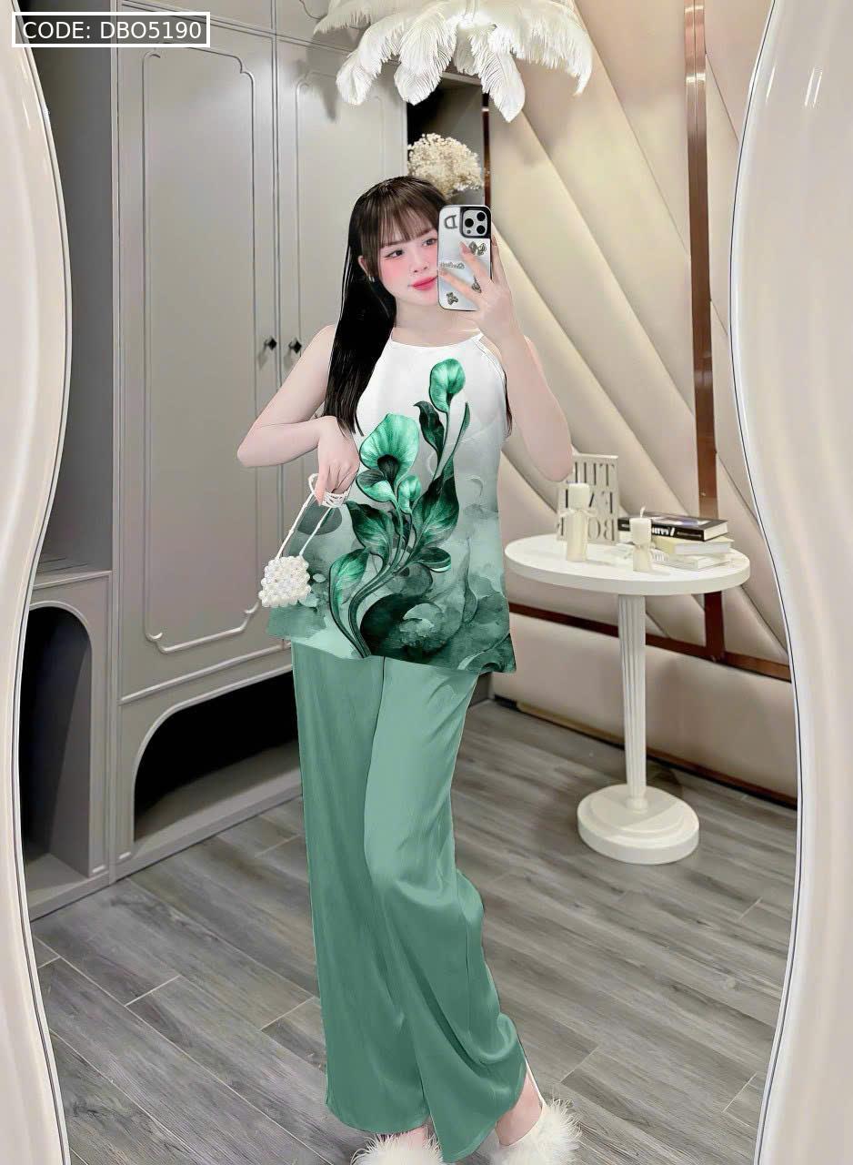 Giá sỉ đồ bộ mặc nhà siêu mát quần dài áo yếm dây nhiều bông lớn