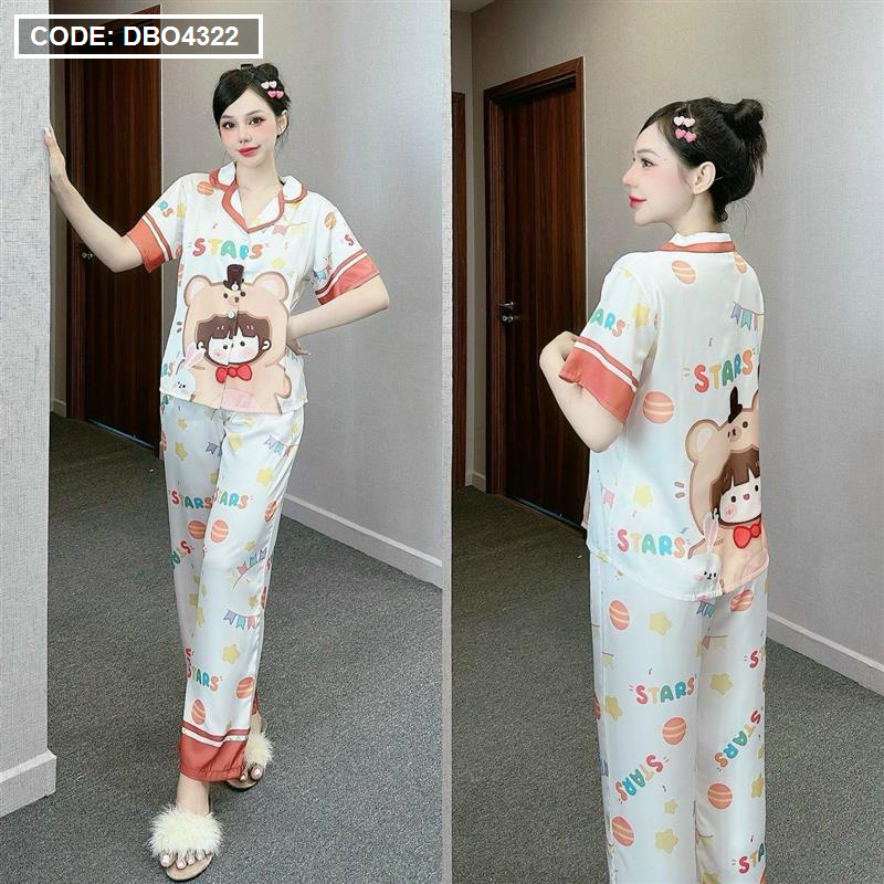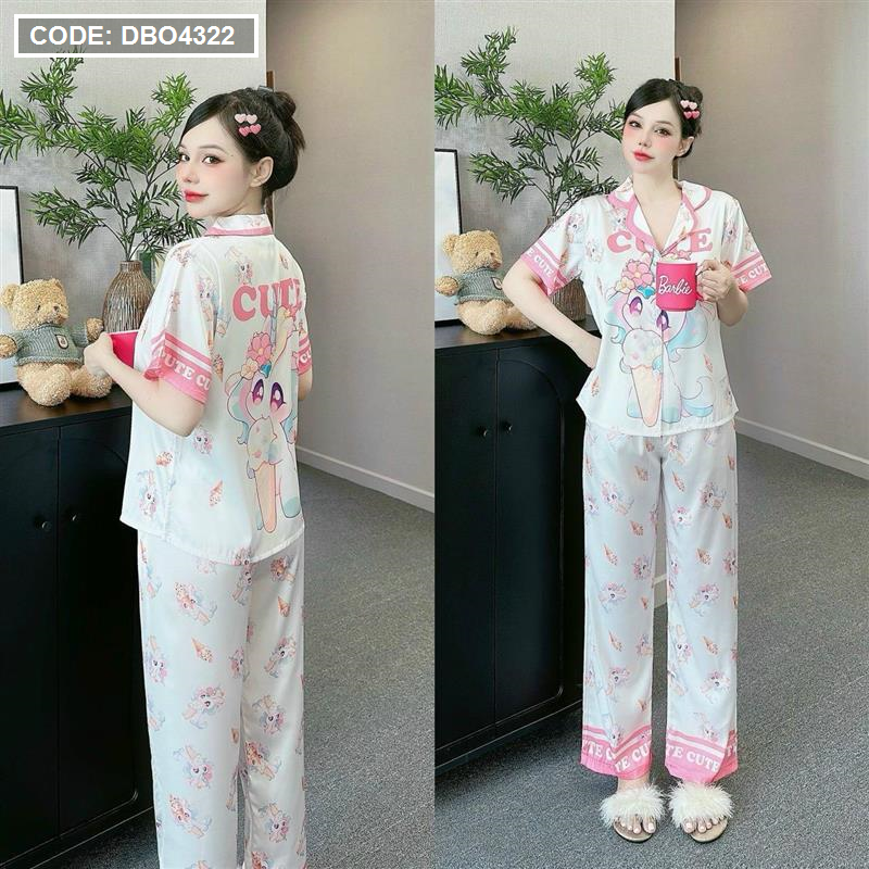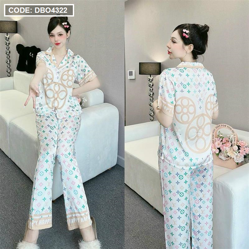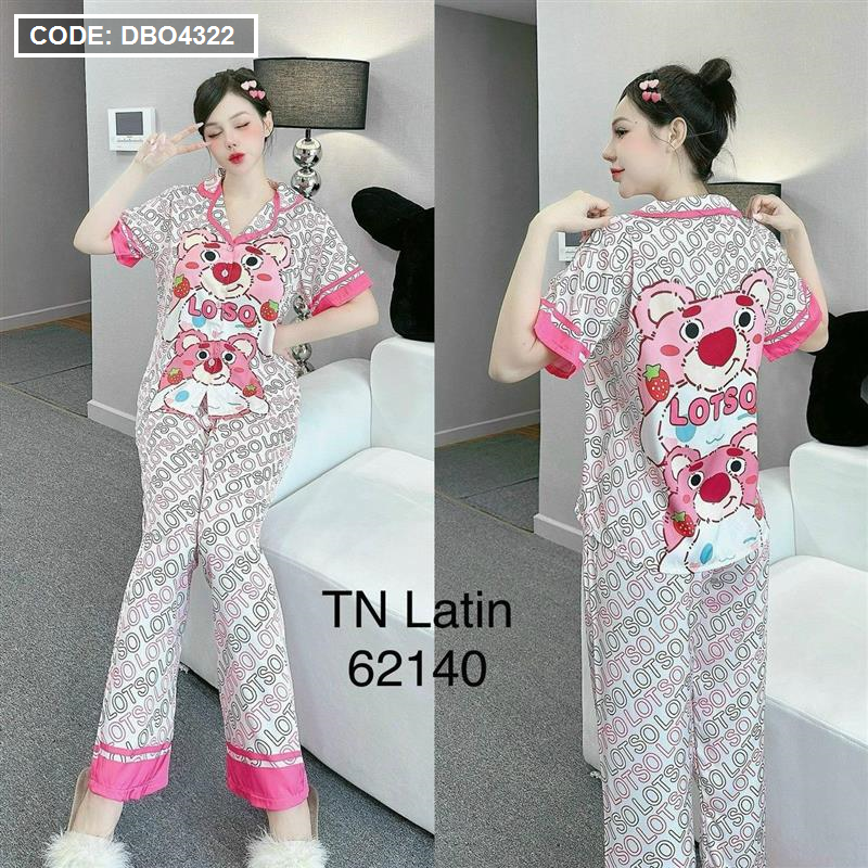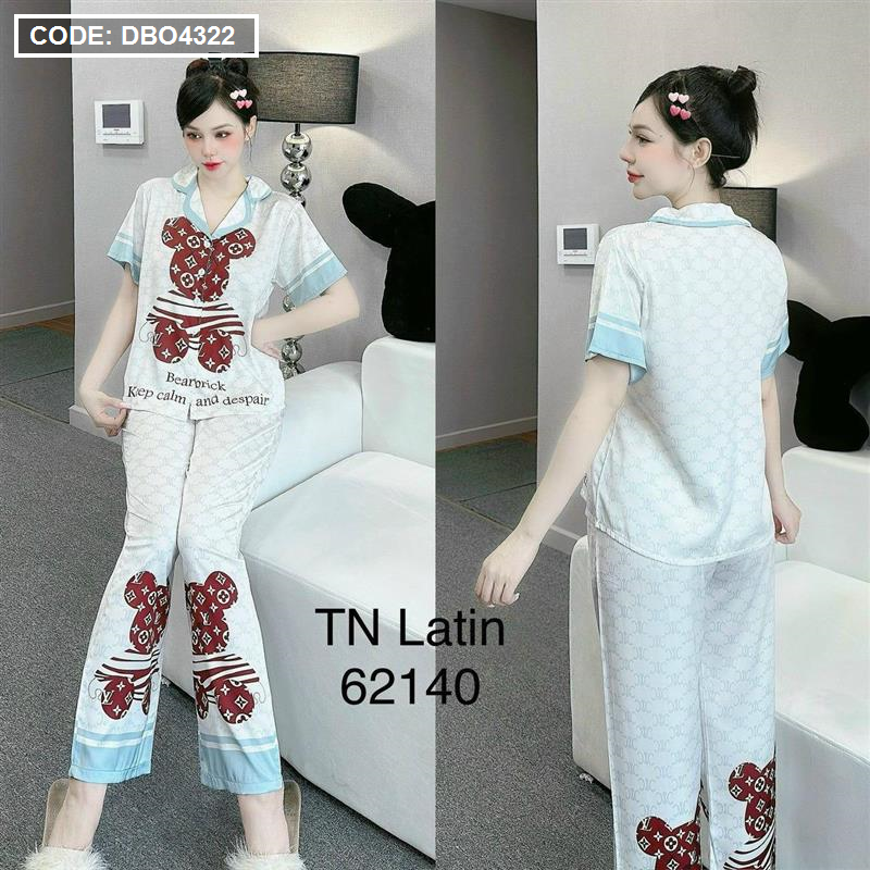 Đồ bộ pijama latin quần dài áo tay ngắn cổ bẻ in hoa tiết