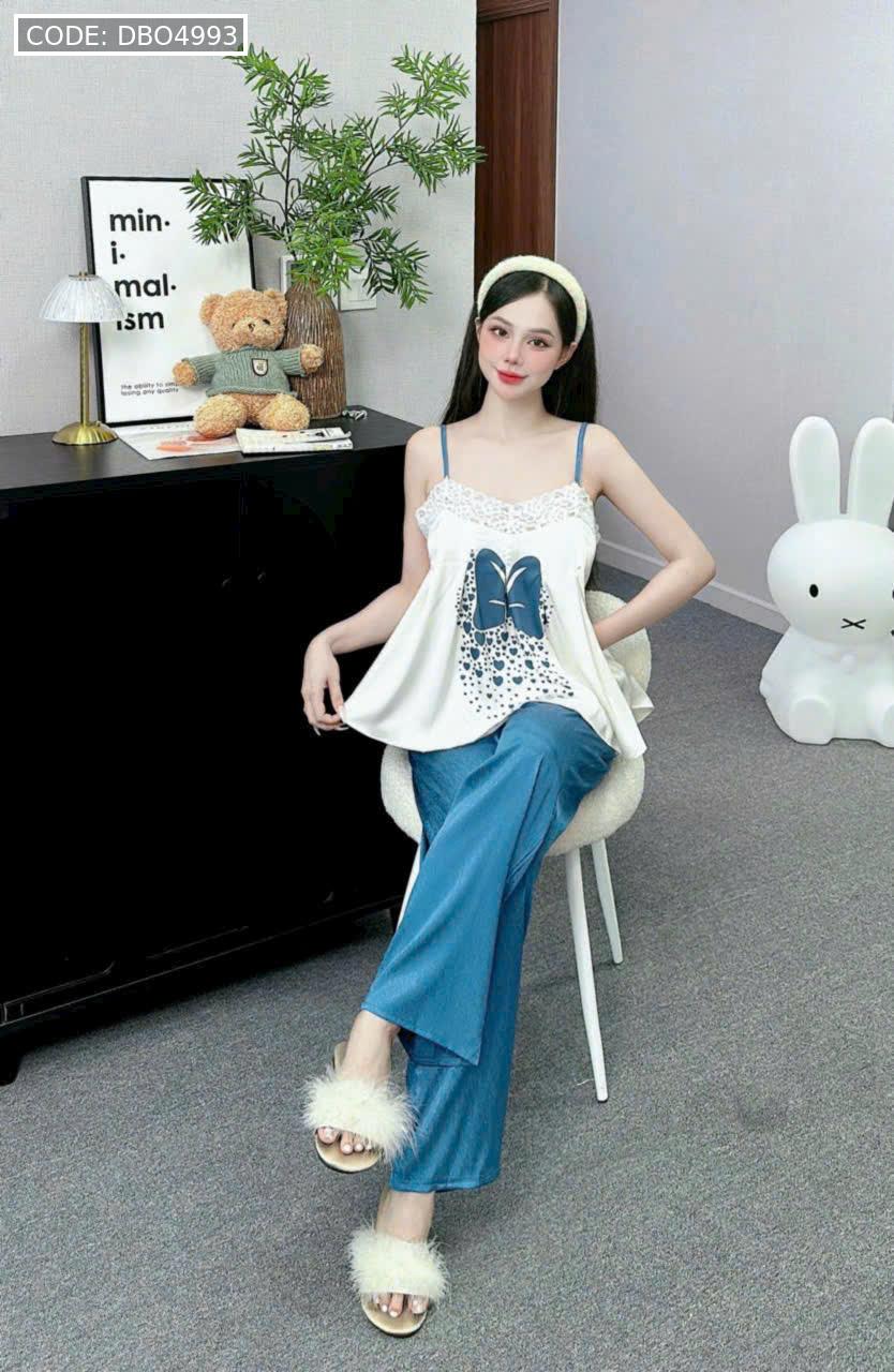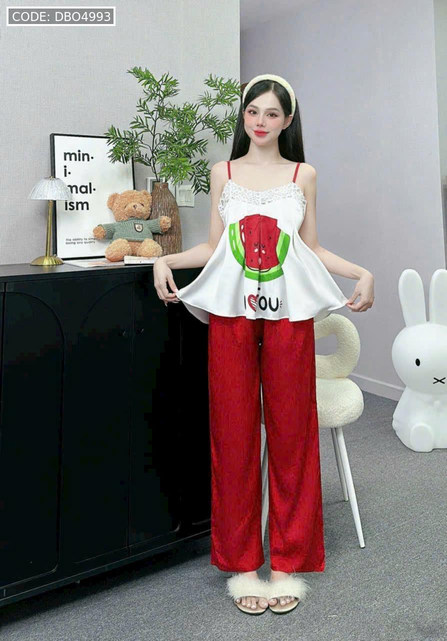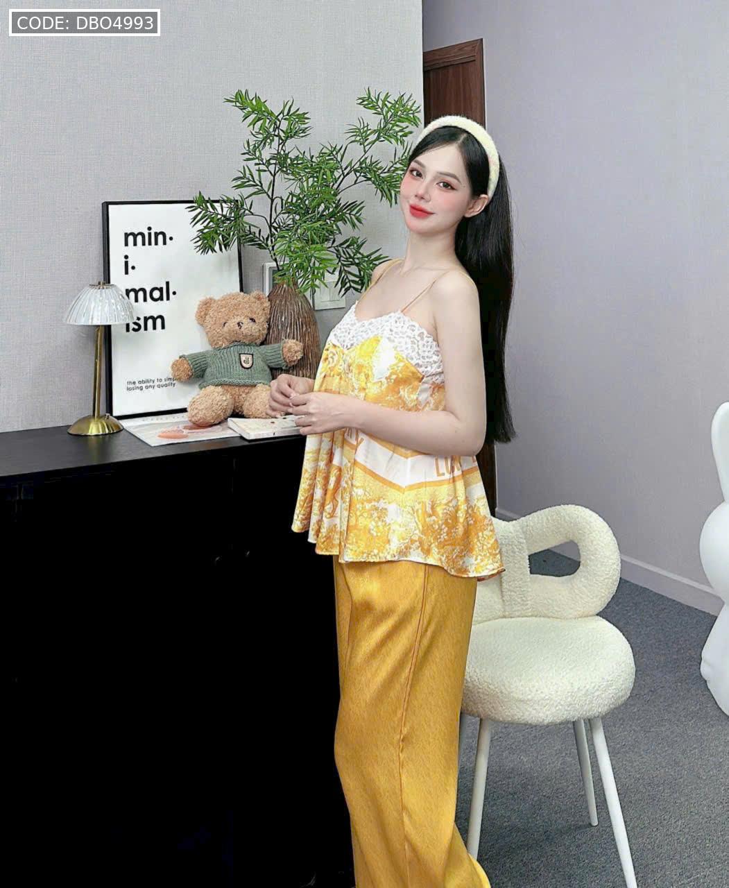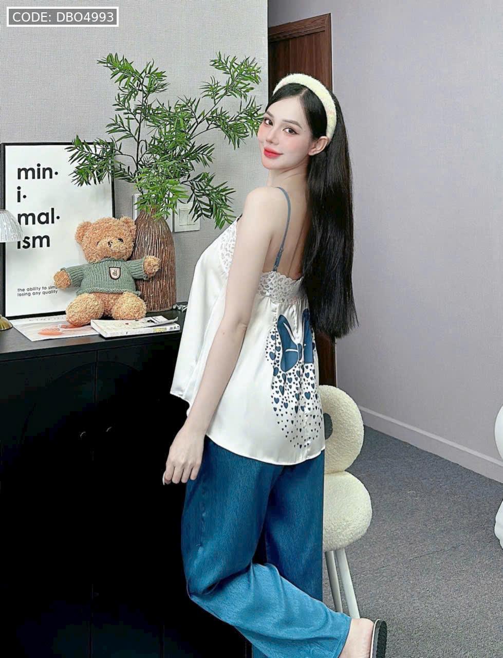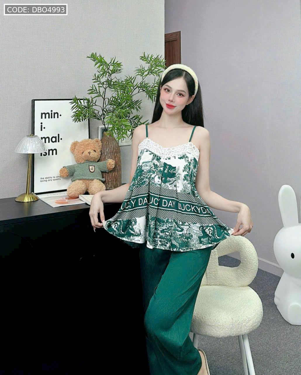 Giá sỉ đồ bộ quần dài latin áo hai dây ren in nhiều hình