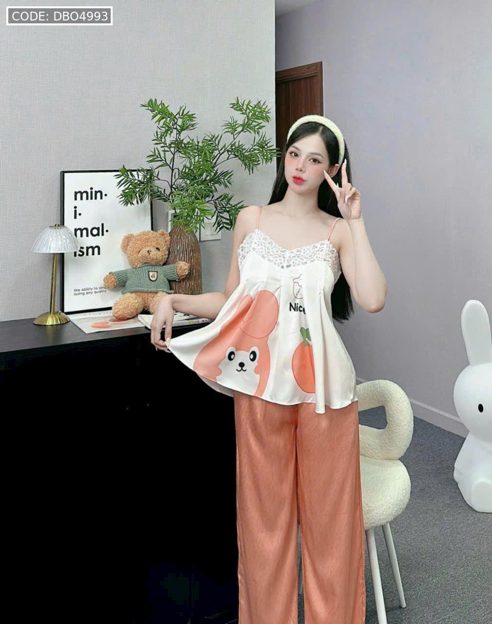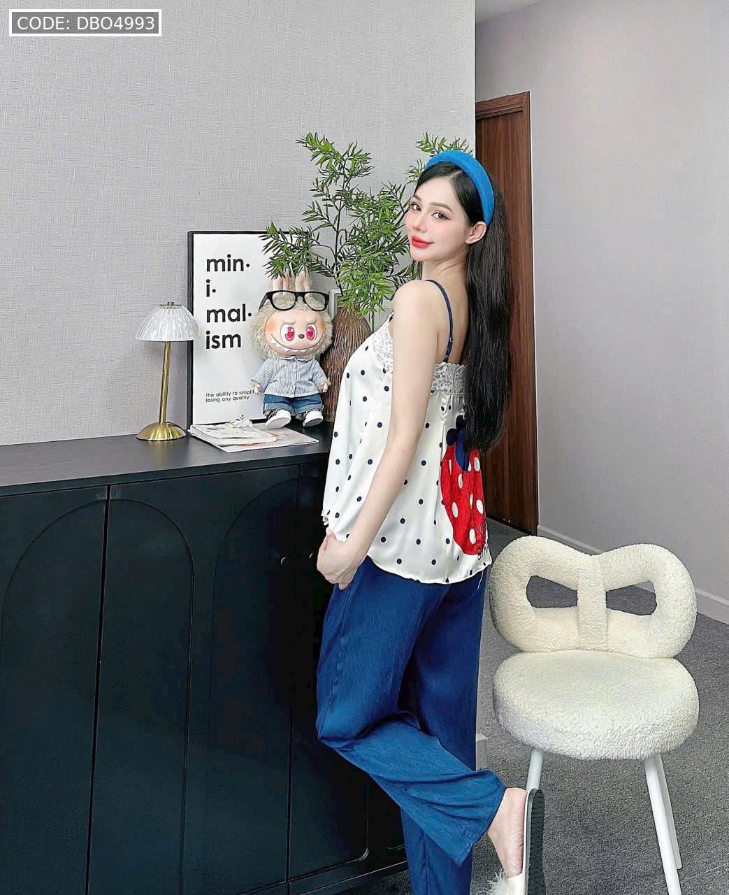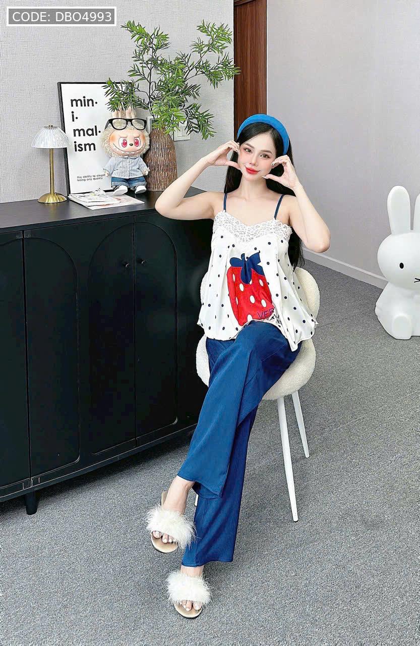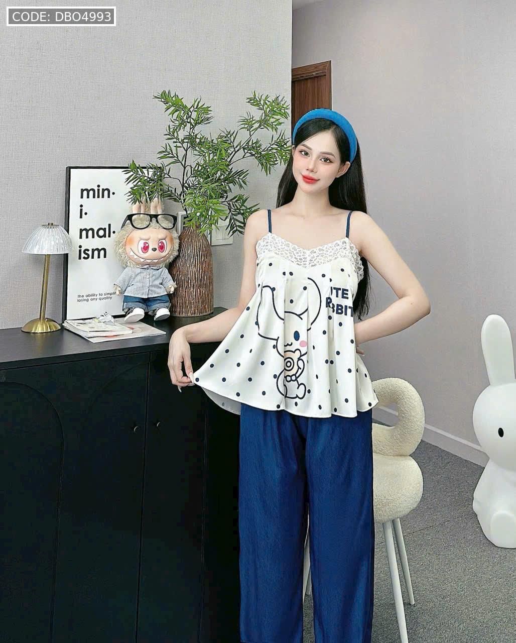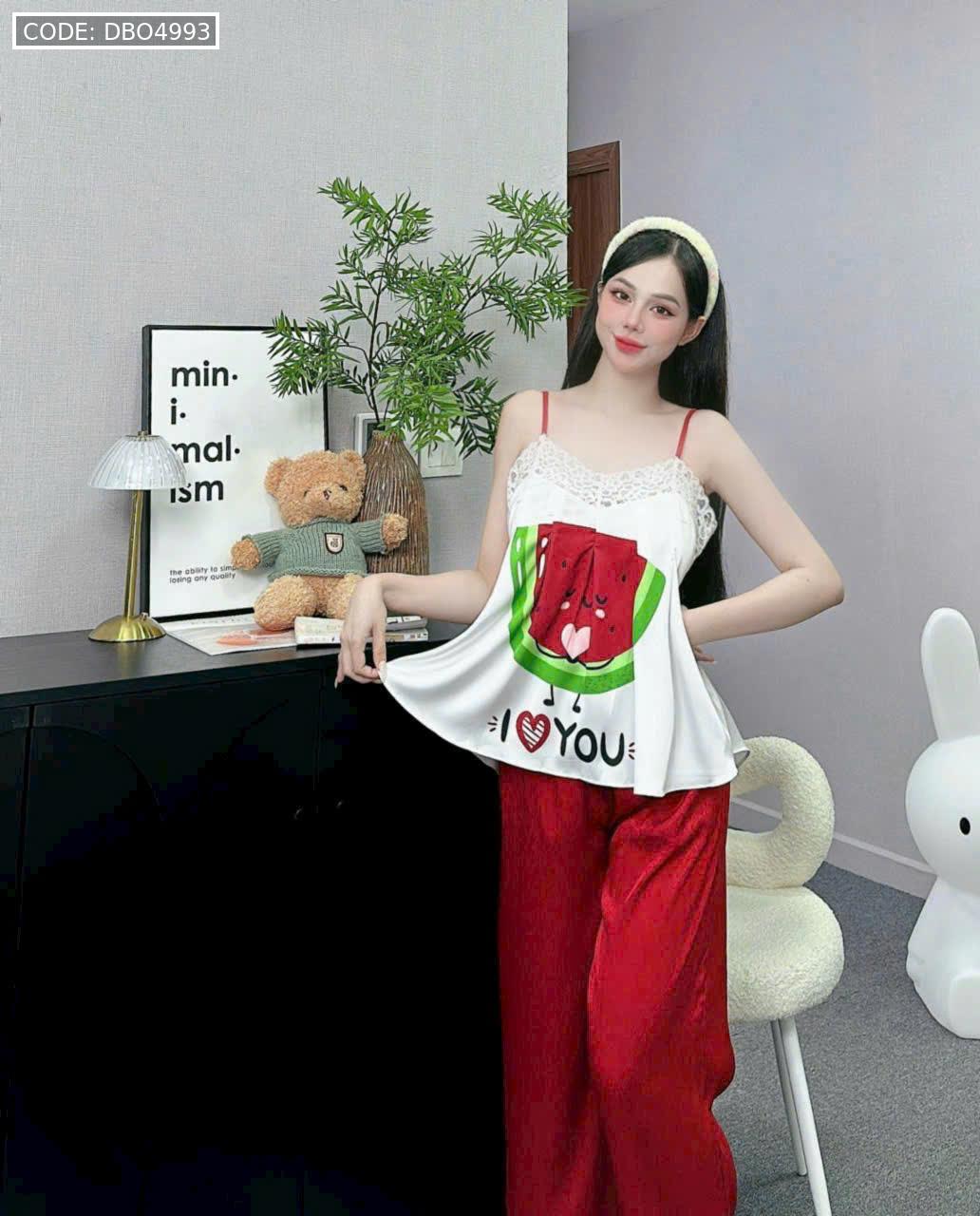 Giá sỉ đồ bộ quần dài latin áo hai dây ren in nhiều hình
