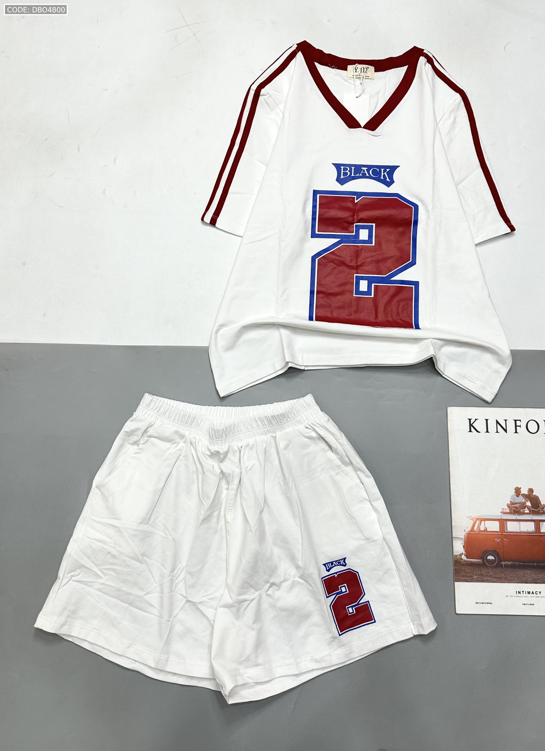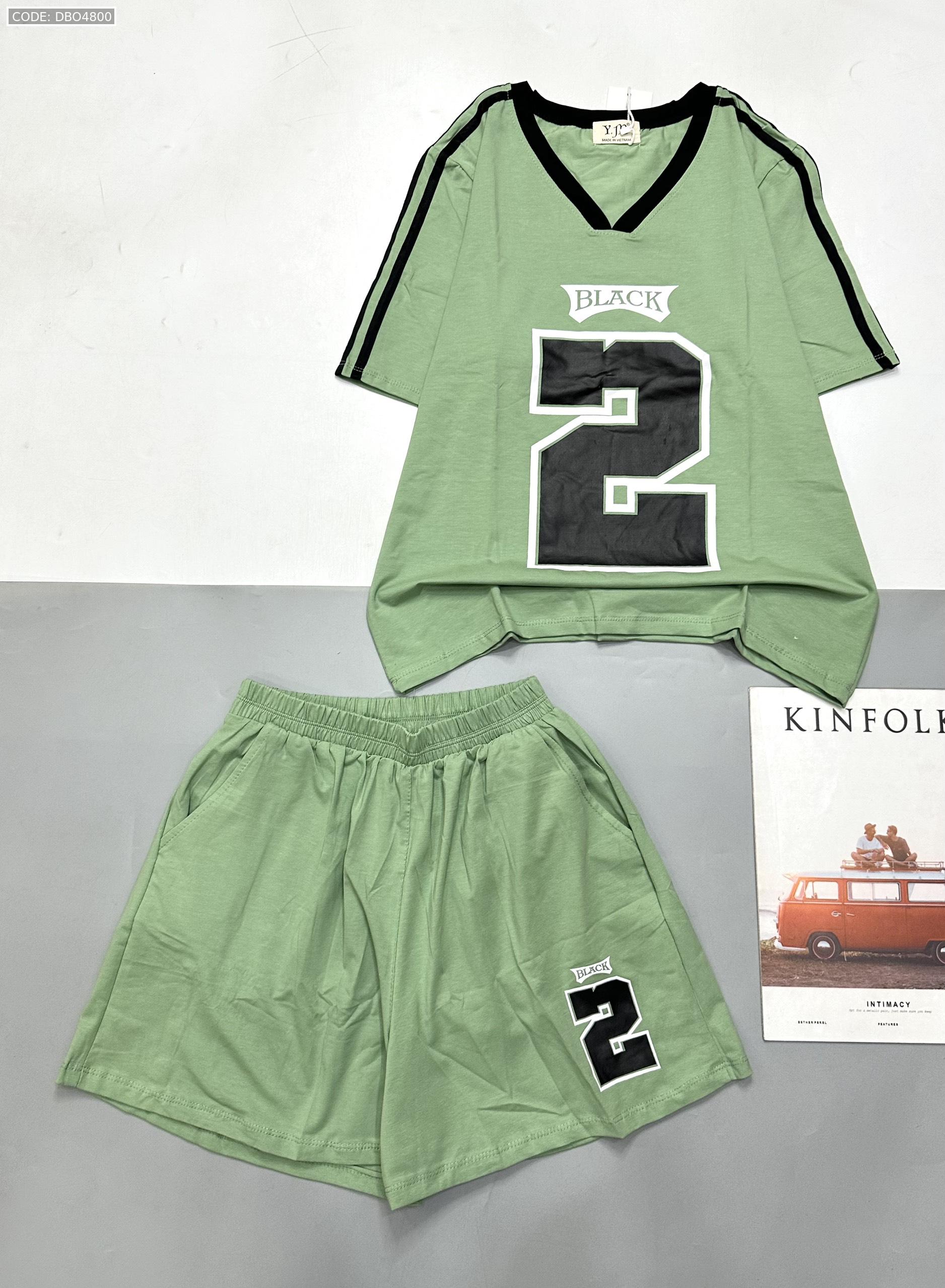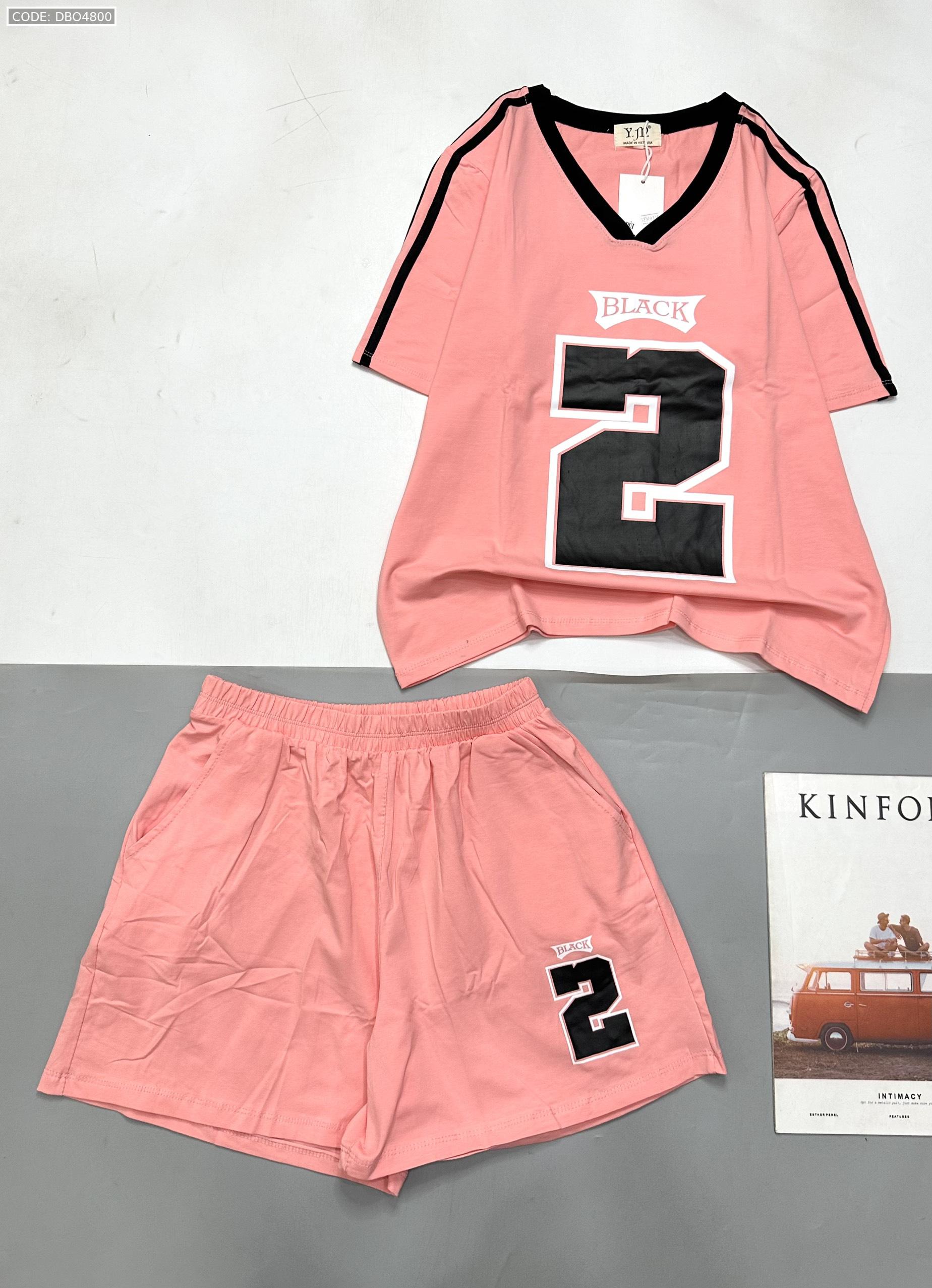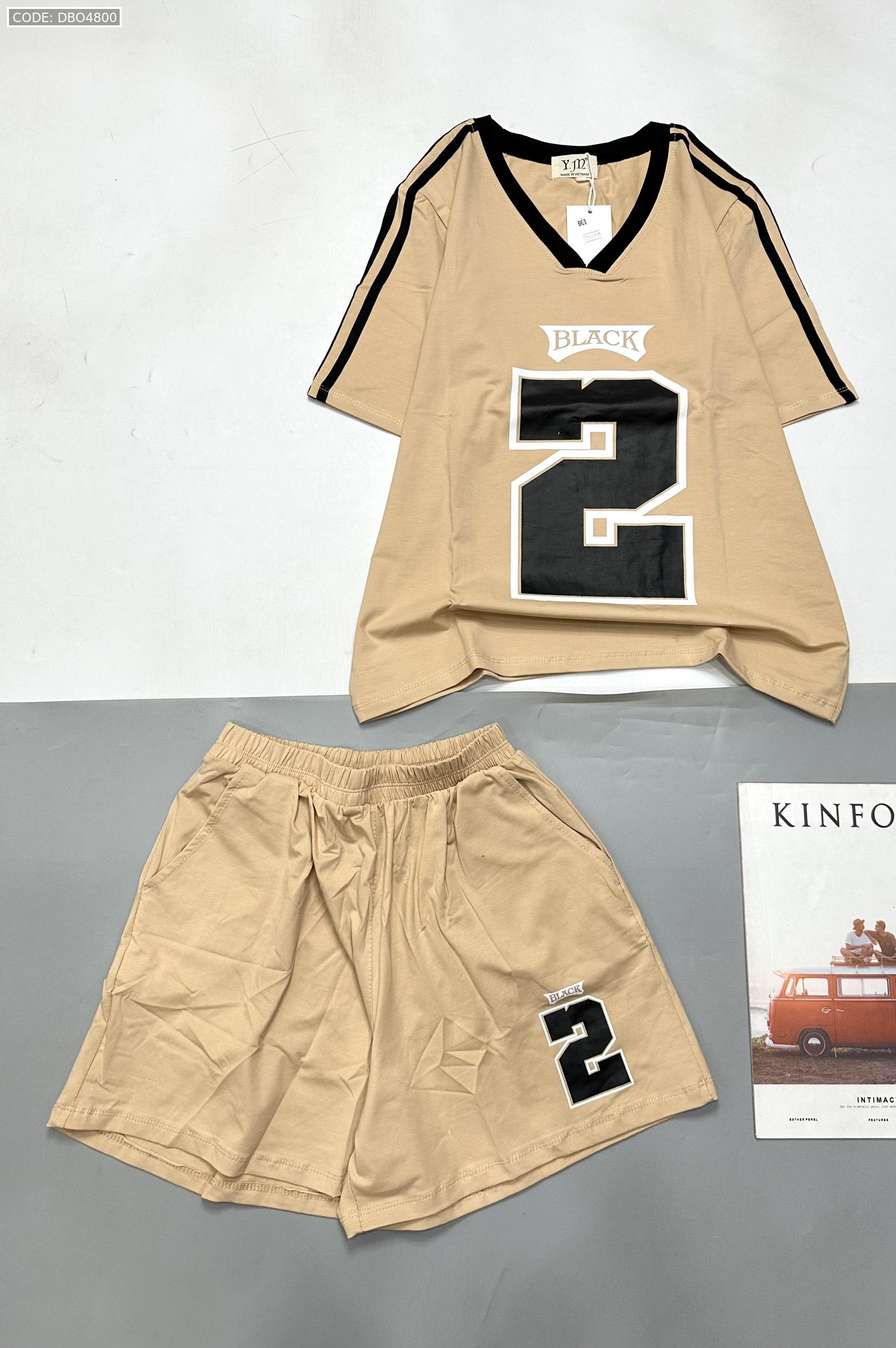 Giá sỉ đồ bộ quần đùi áo tay ngắn cổ V in số 2 black
