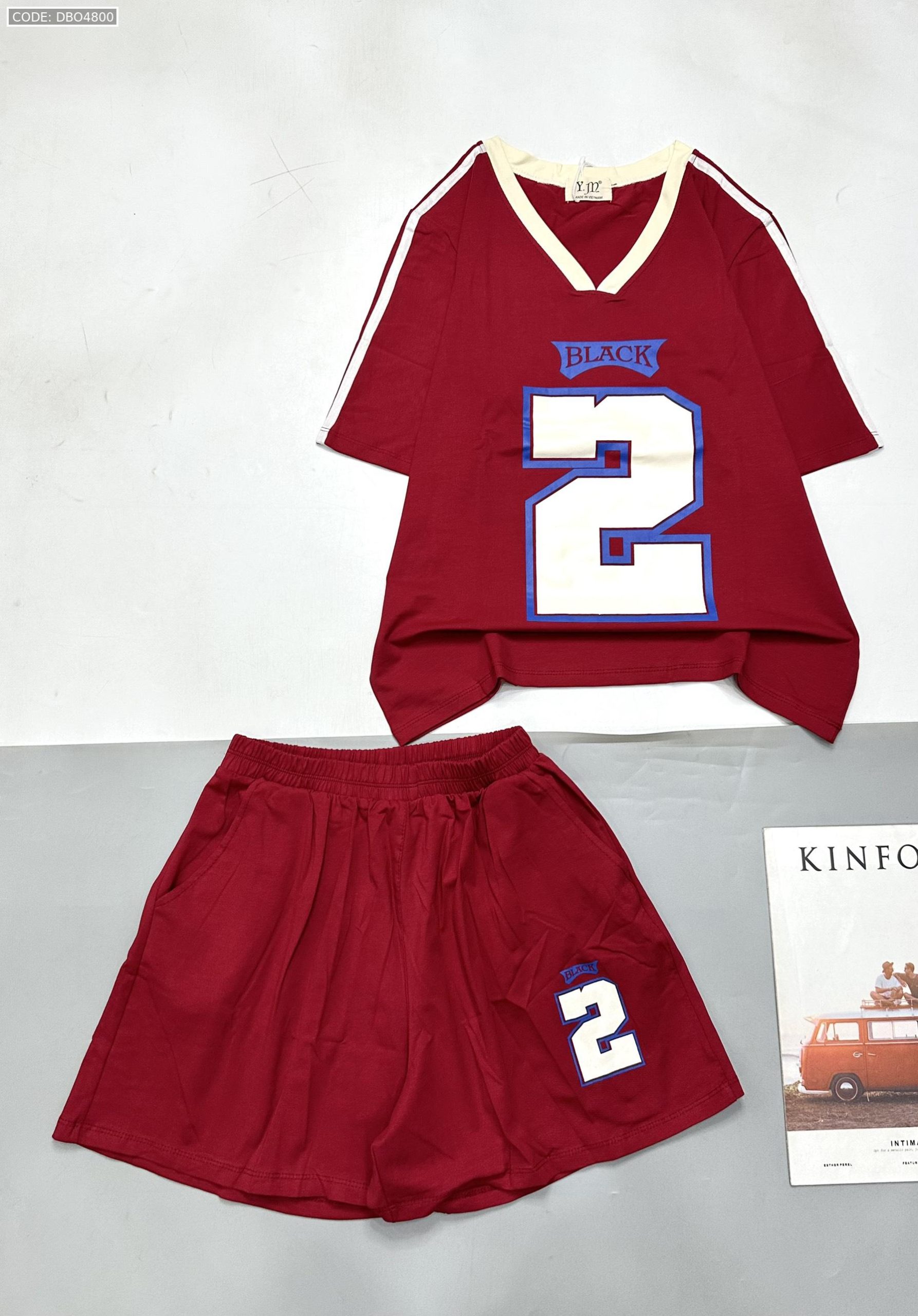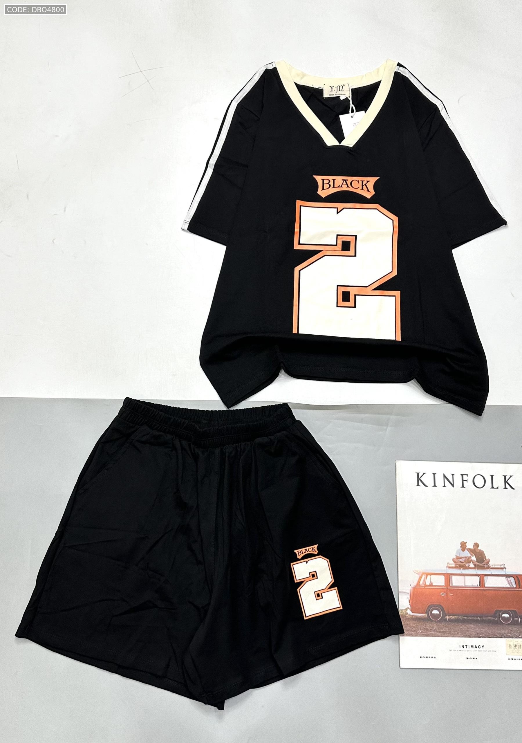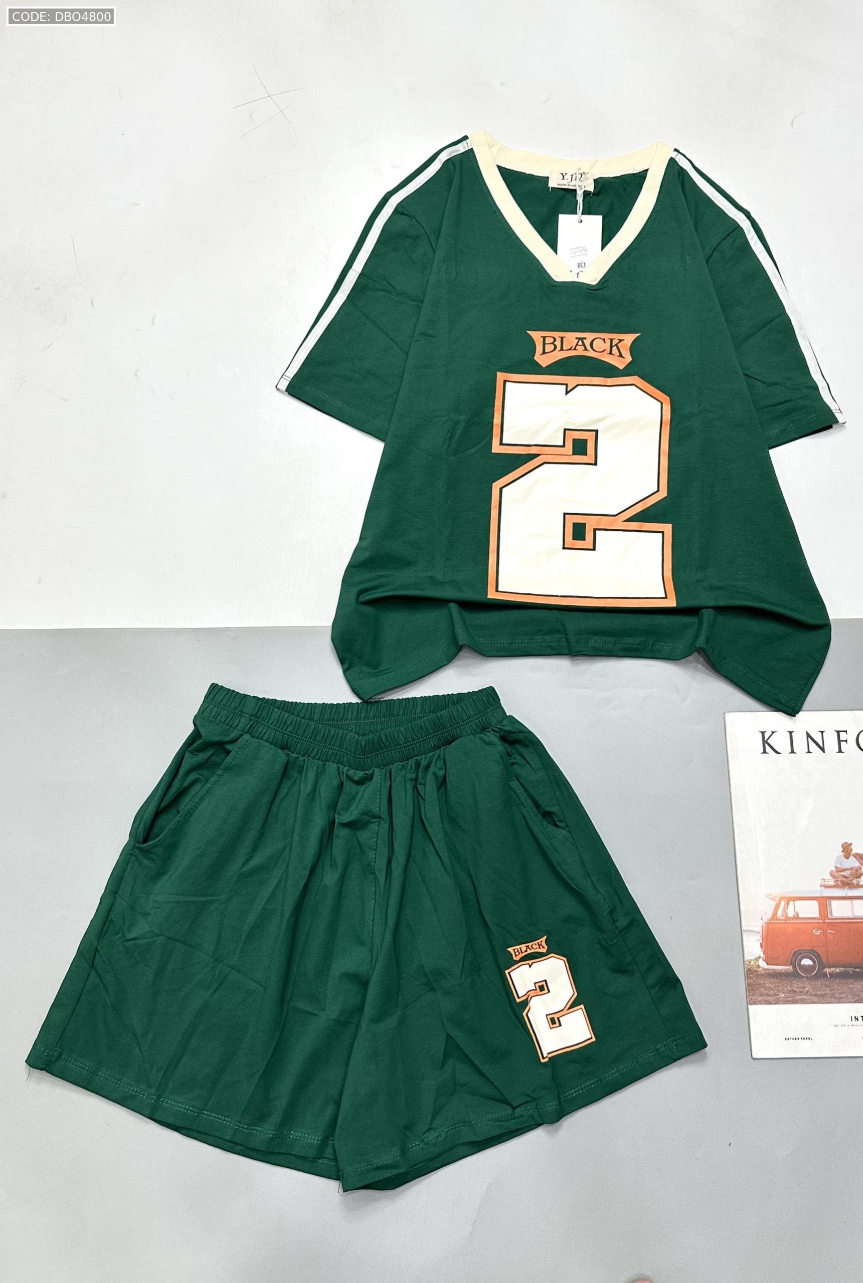 Giá sỉ đồ bộ quần đùi áo tay ngắn cổ V in số 2 black