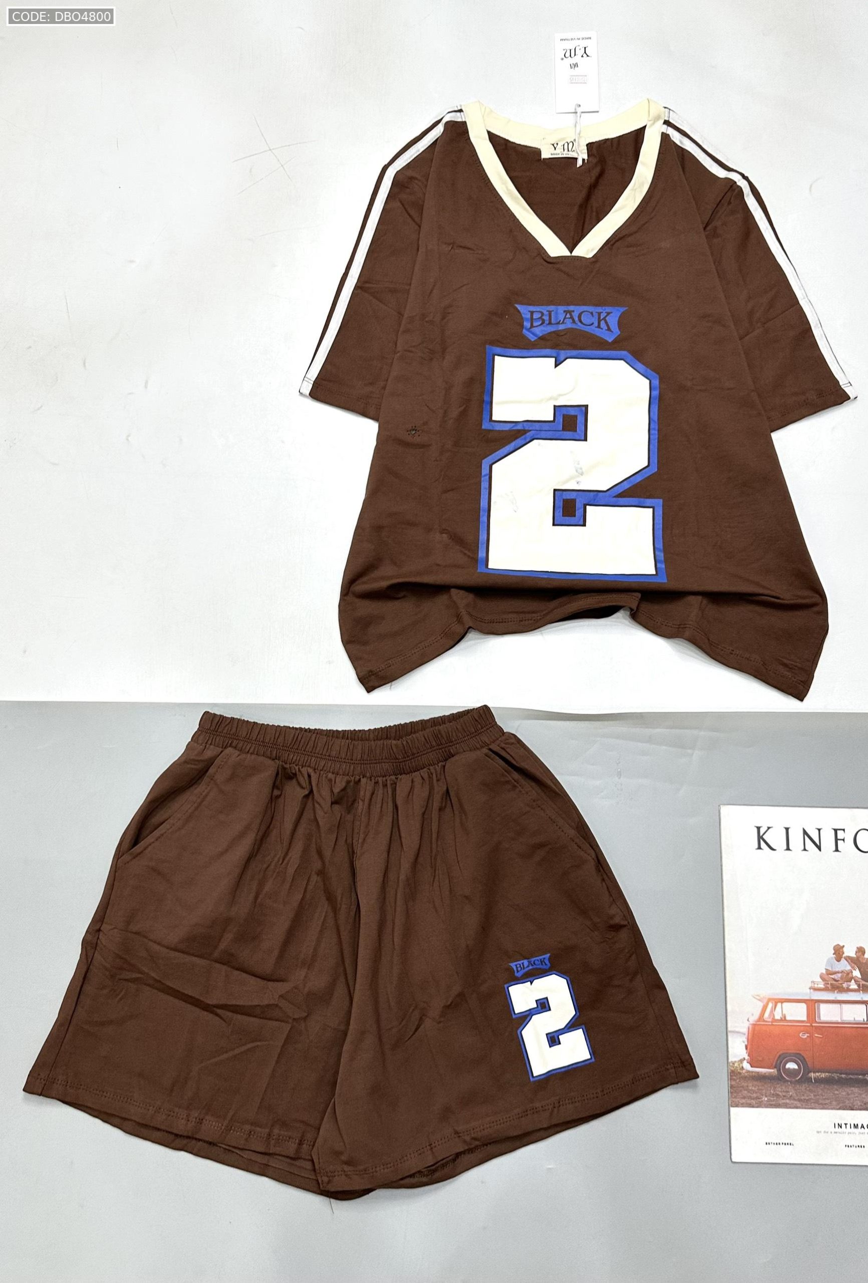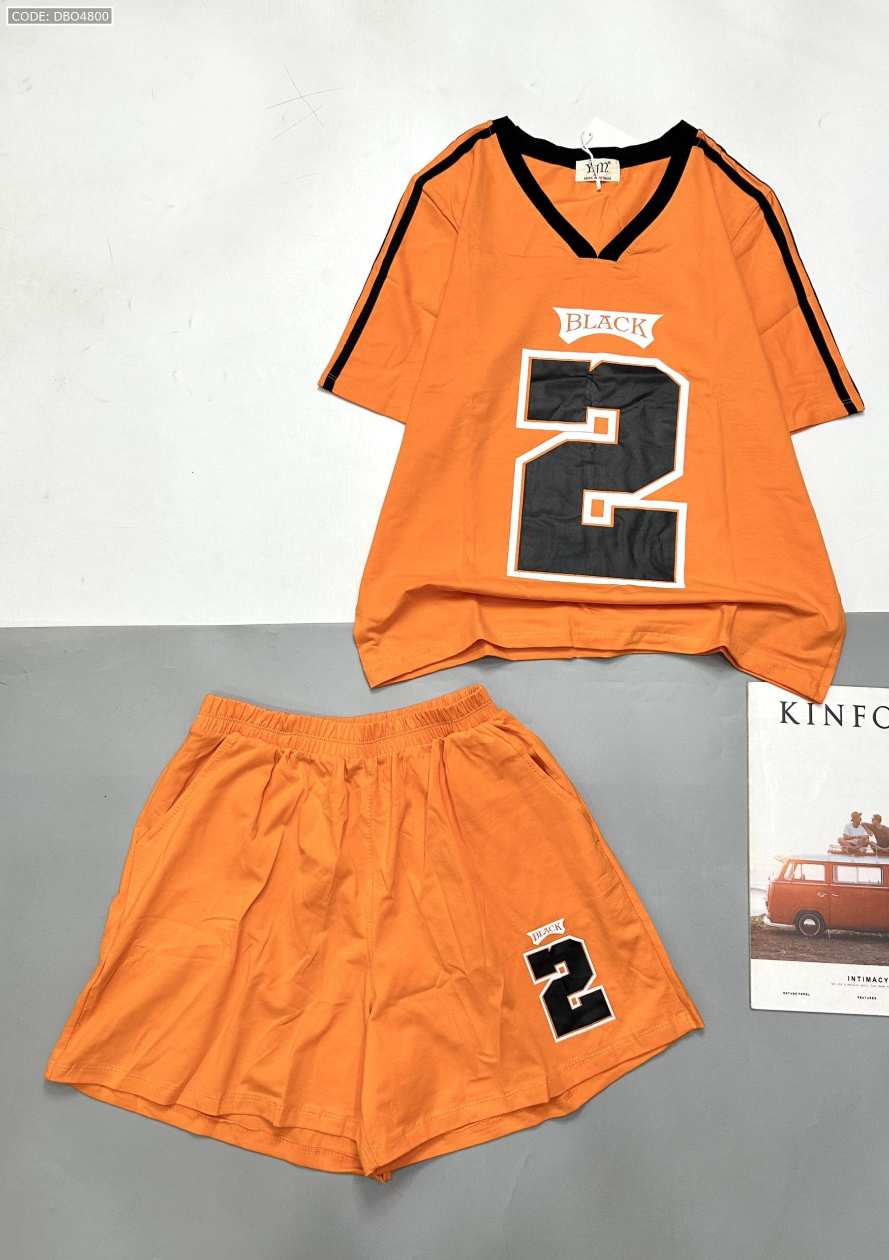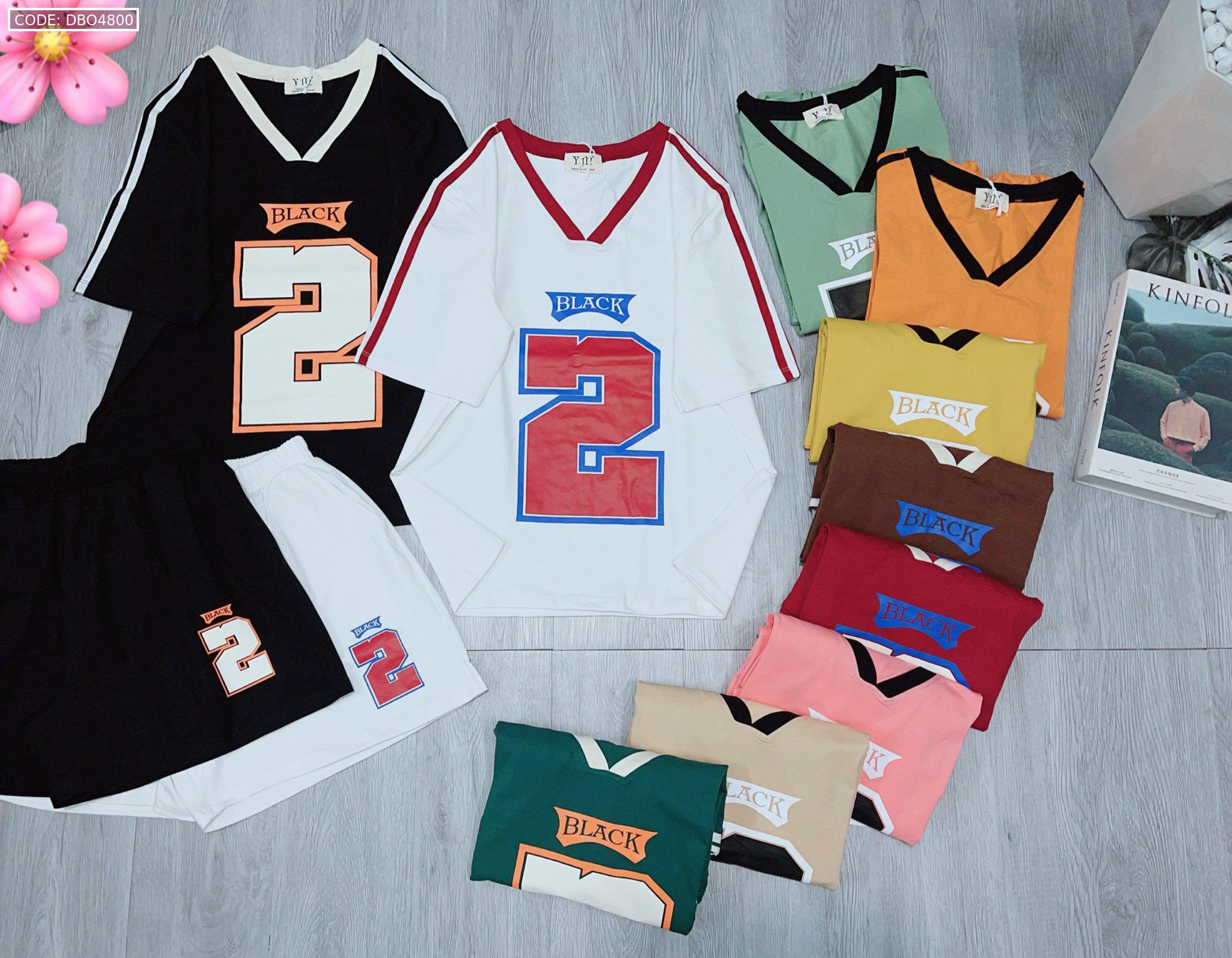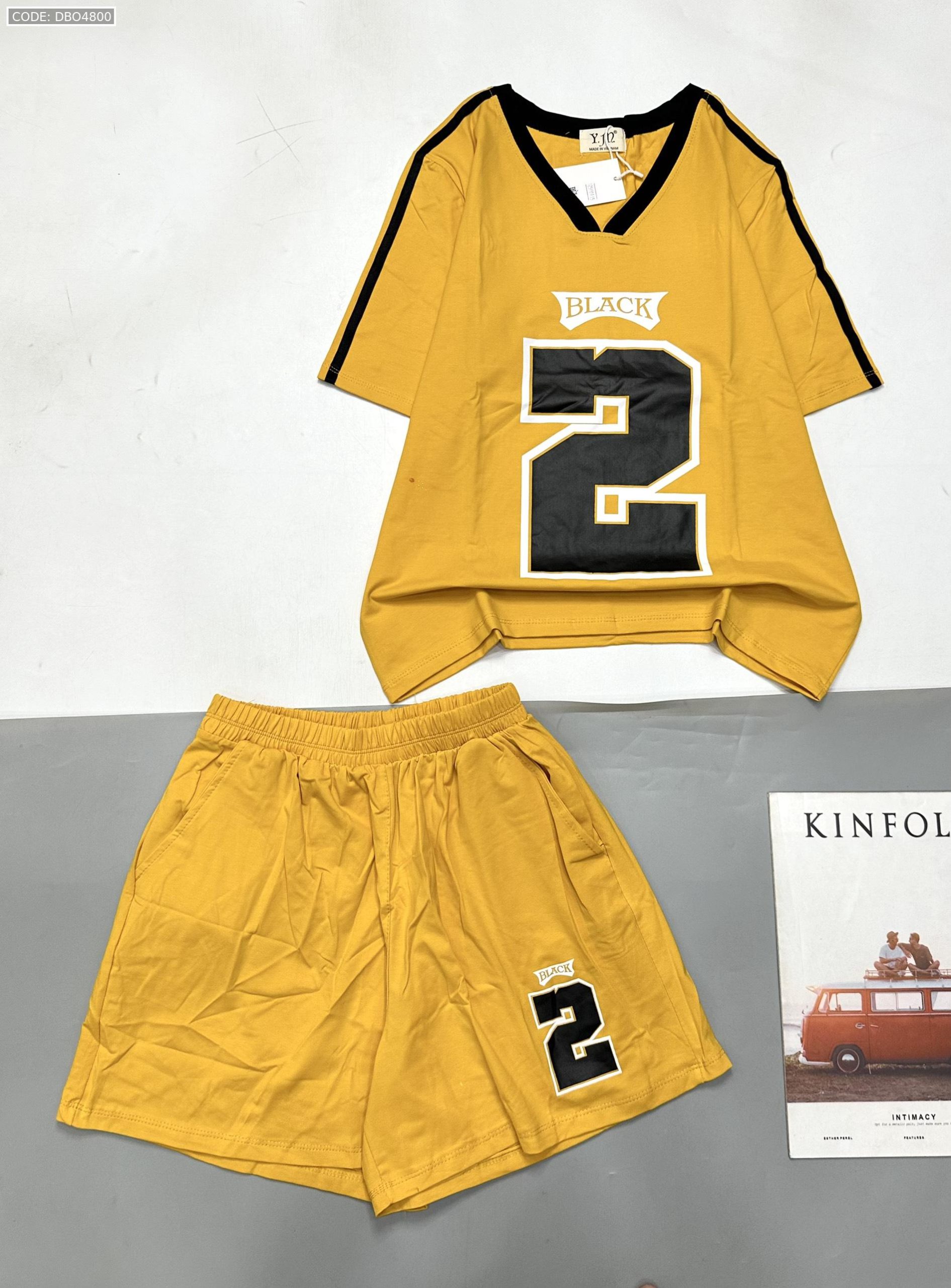 Giá sỉ đồ bộ quần đùi áo tay ngắn cổ V in số 2 black