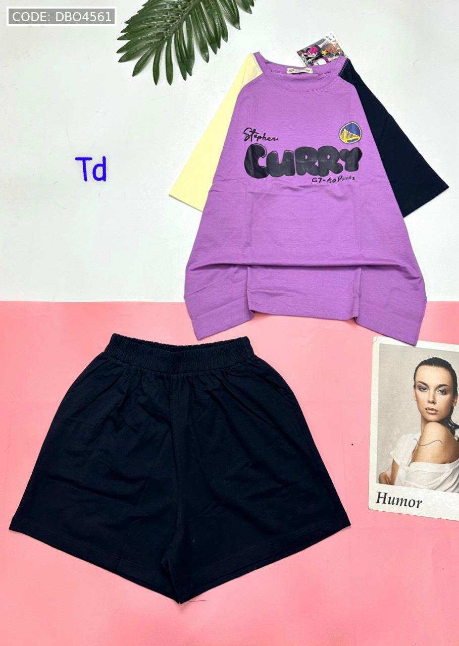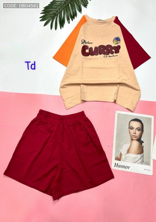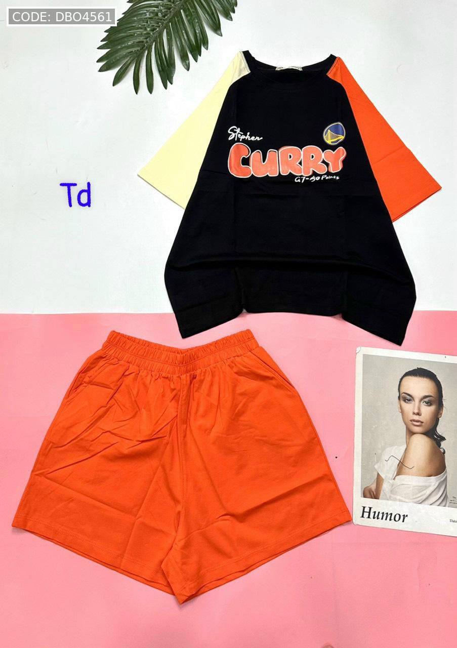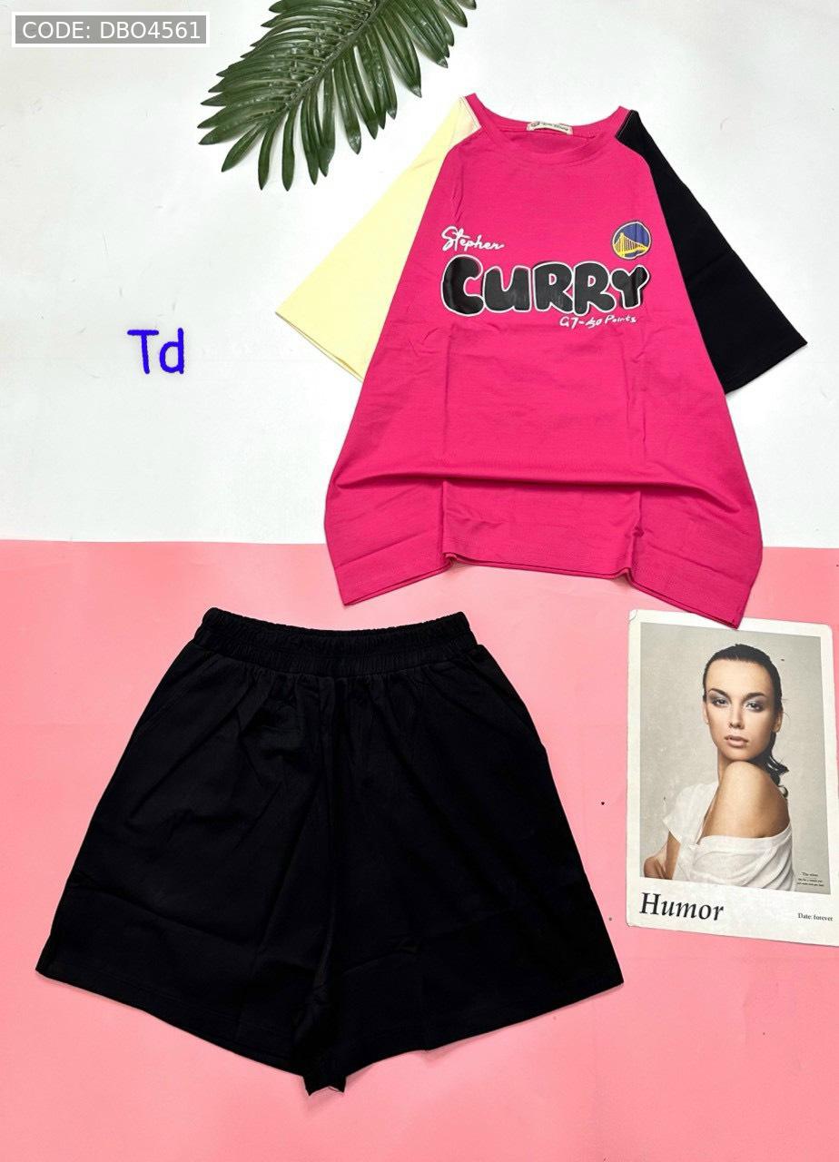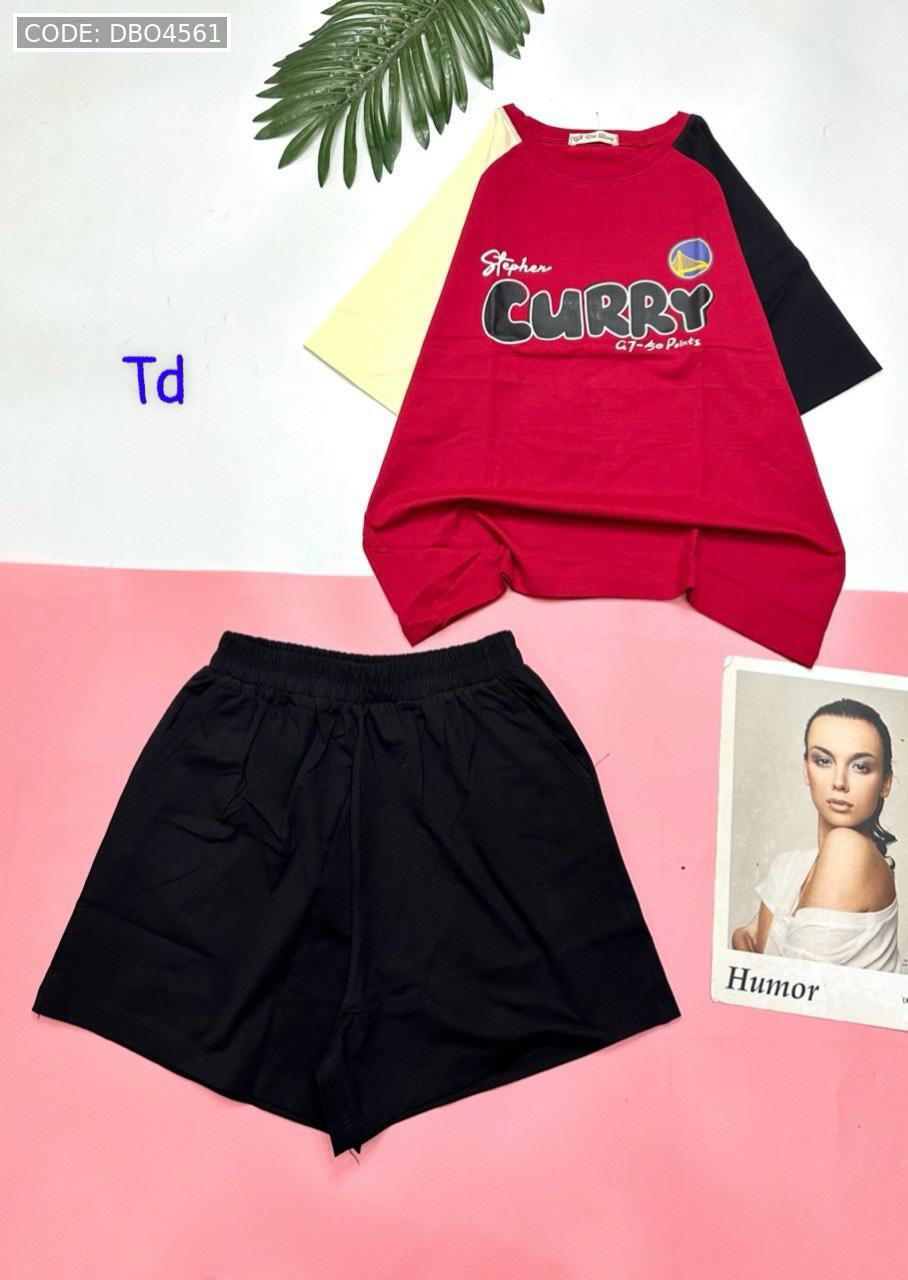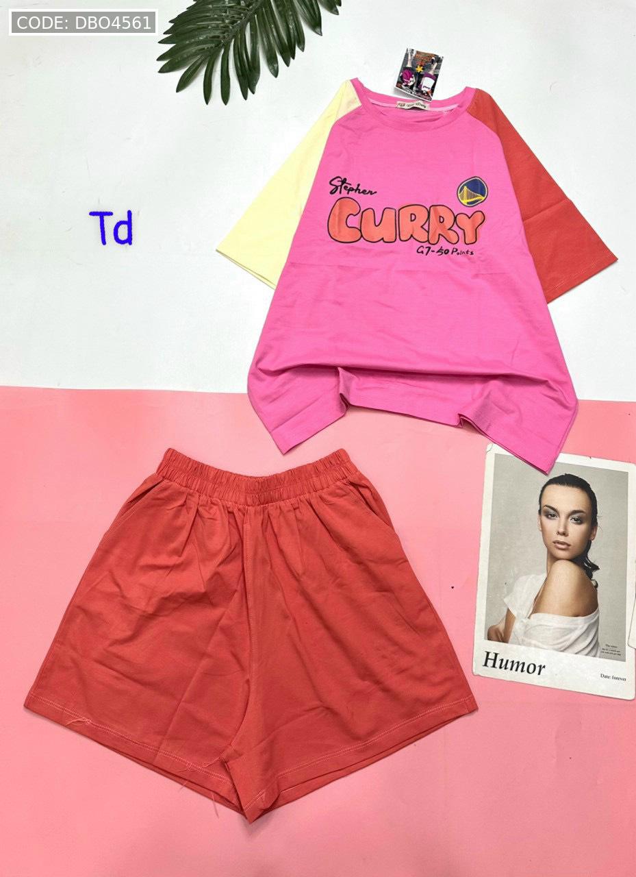 Giá sỉ đồ bộ quần đùi áo tay ngắn in chữ CURRY quần cùng màu tay áo phải