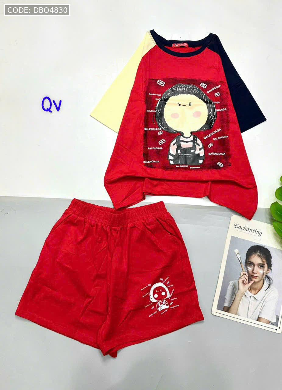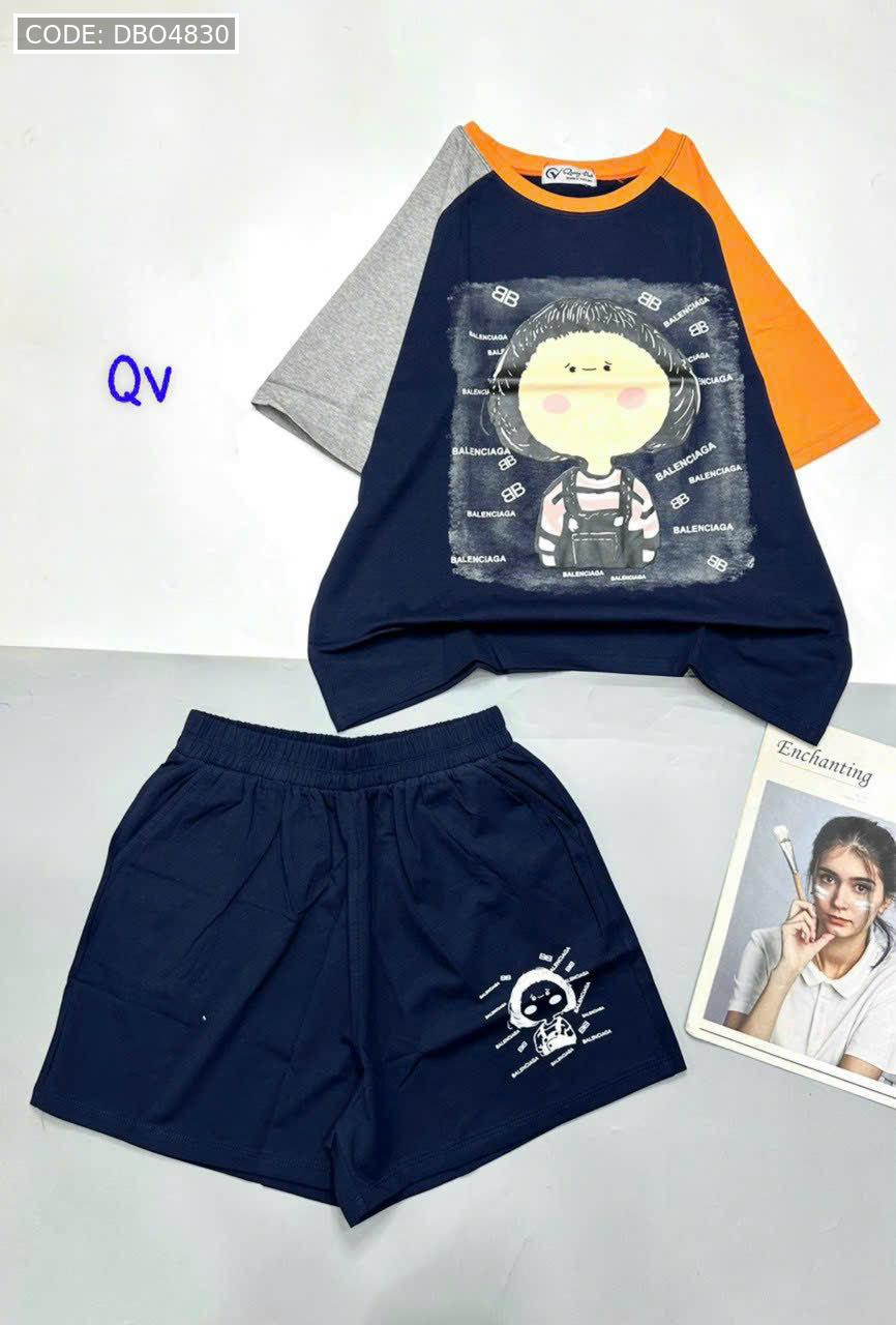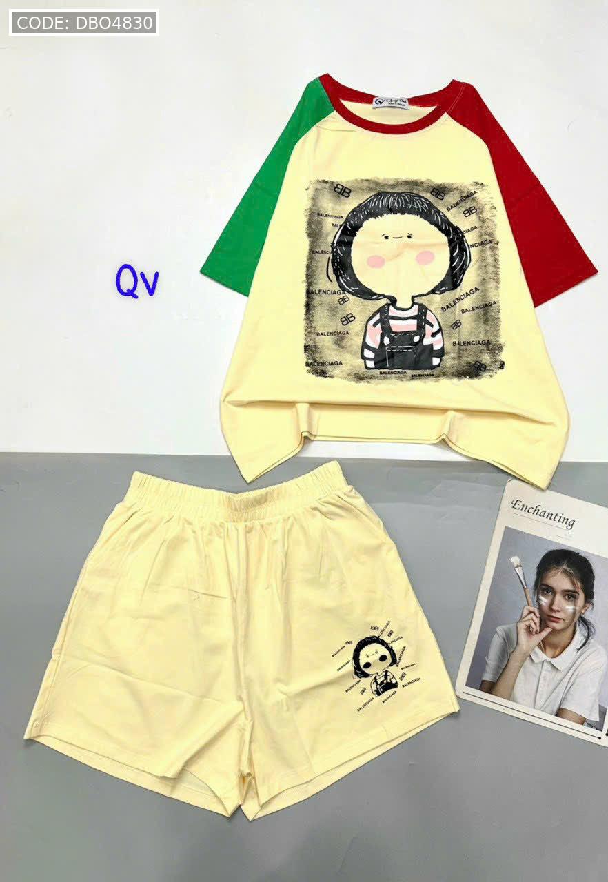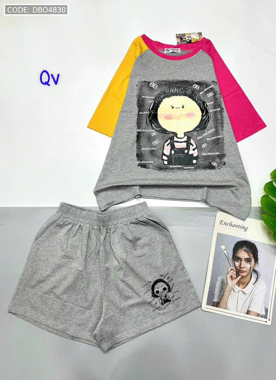 Giá sỉ đồ bộ quần đùi áo tay ngắn in hình bé tóc ngang